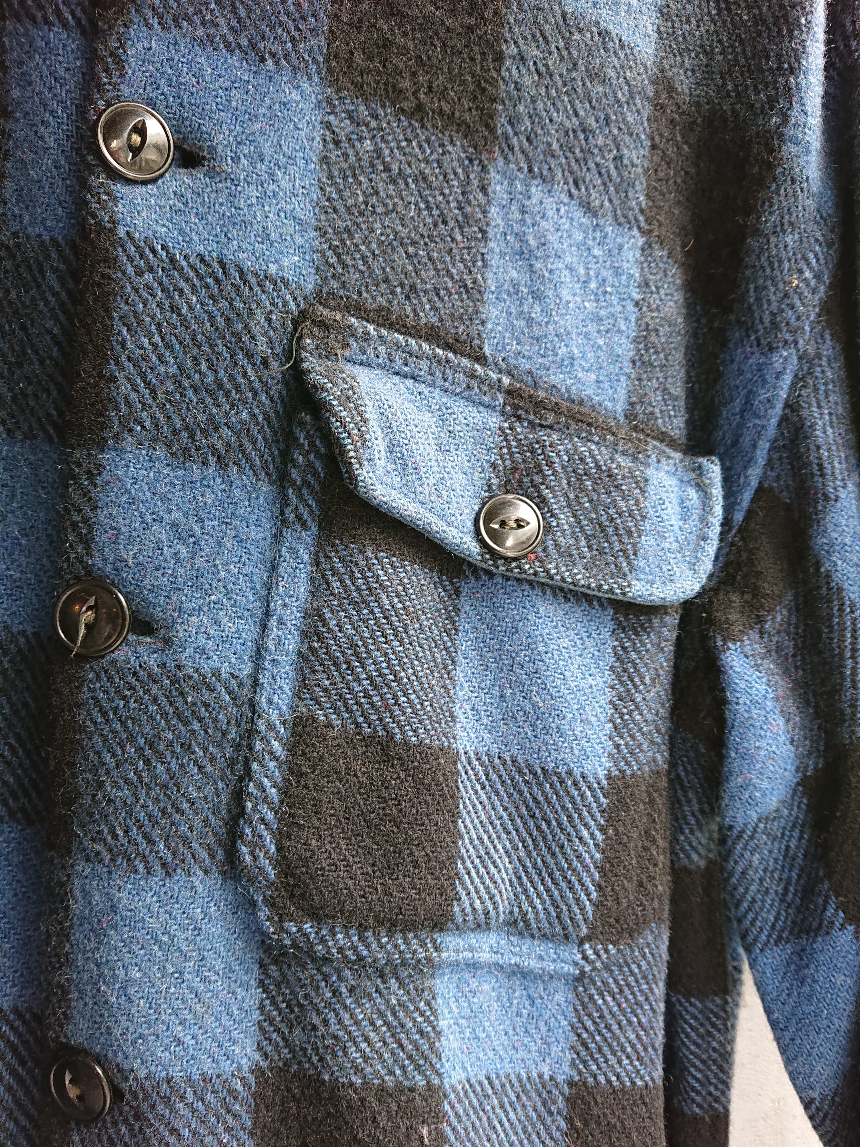 50~60年代 ウール バッファローチェックシャツになります。ブラック×ブルーのチェック。全体的に色褪せした雰囲気が男前。ボックスシルエッ
