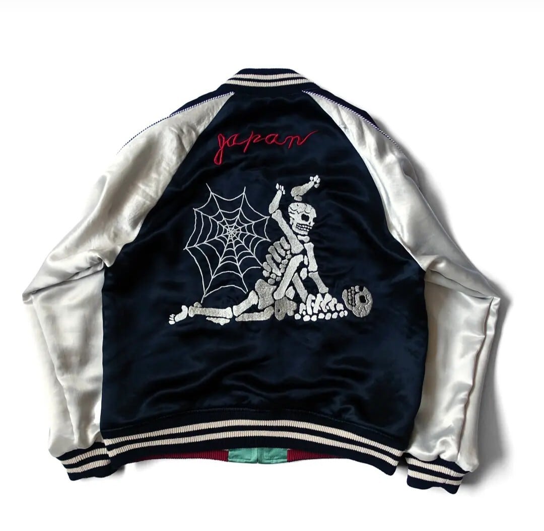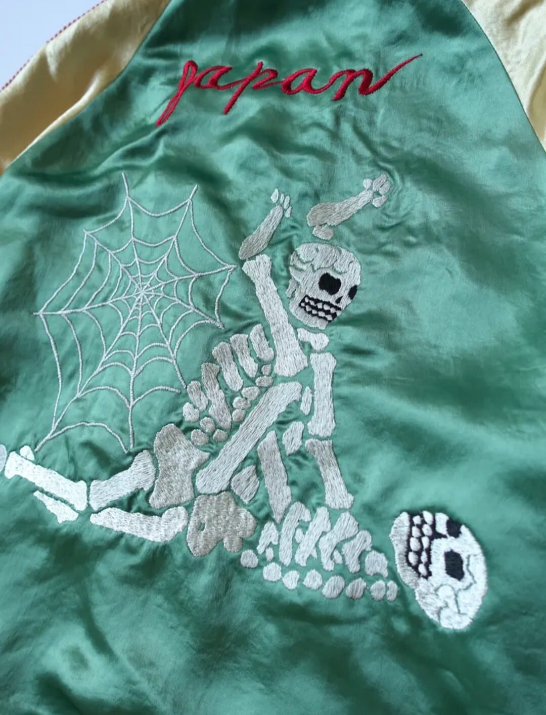 刺繍デザインは90年代の四十八手スカル柄プリントTシャツからサンプリングし、vintageのスカジャンの様にスパイダーウェブと組み合わせました。