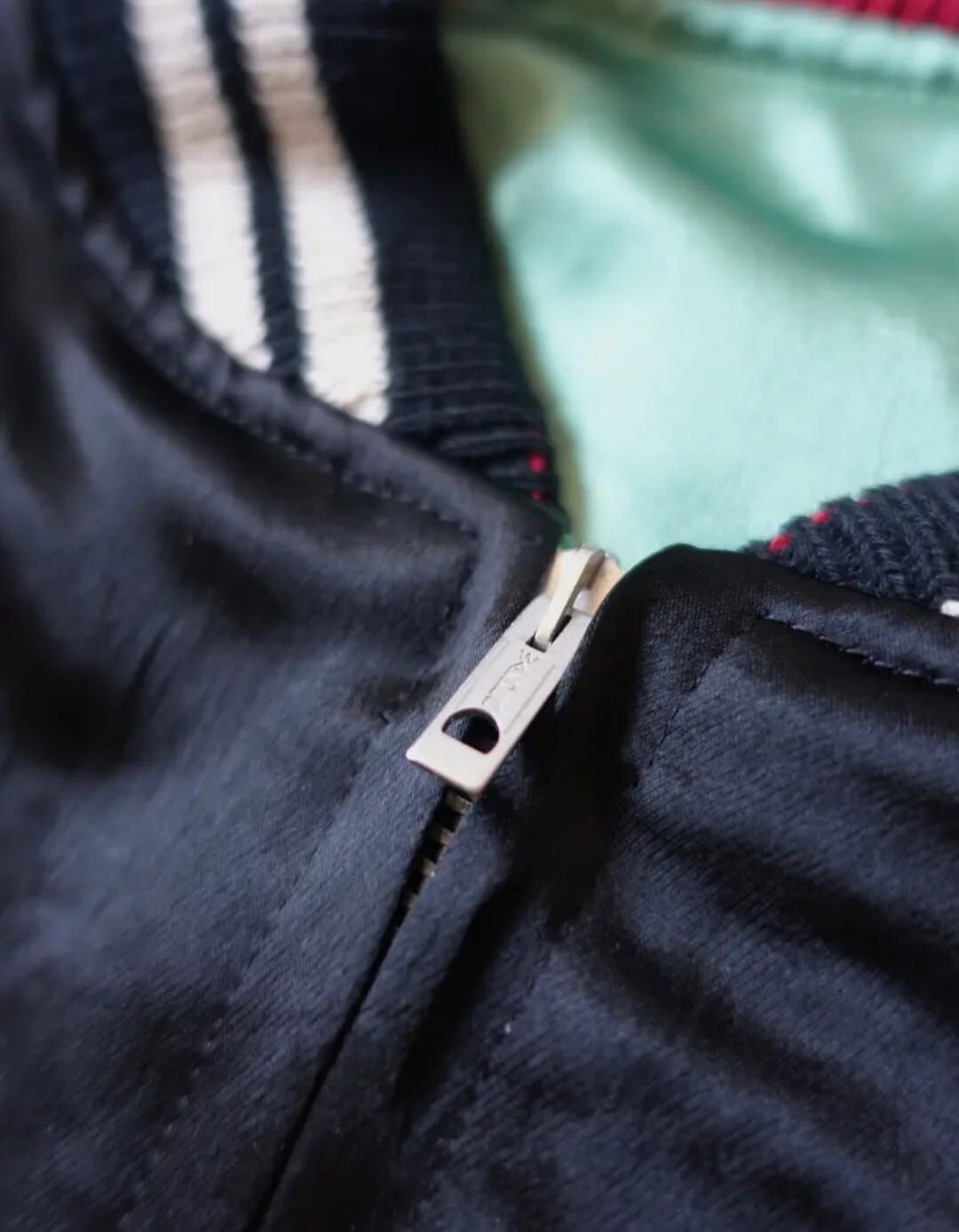 また、vintageのスカジャンは片面にしか袖のラインにパイピングが付かないことが多いですが両面パイピングを付けています。