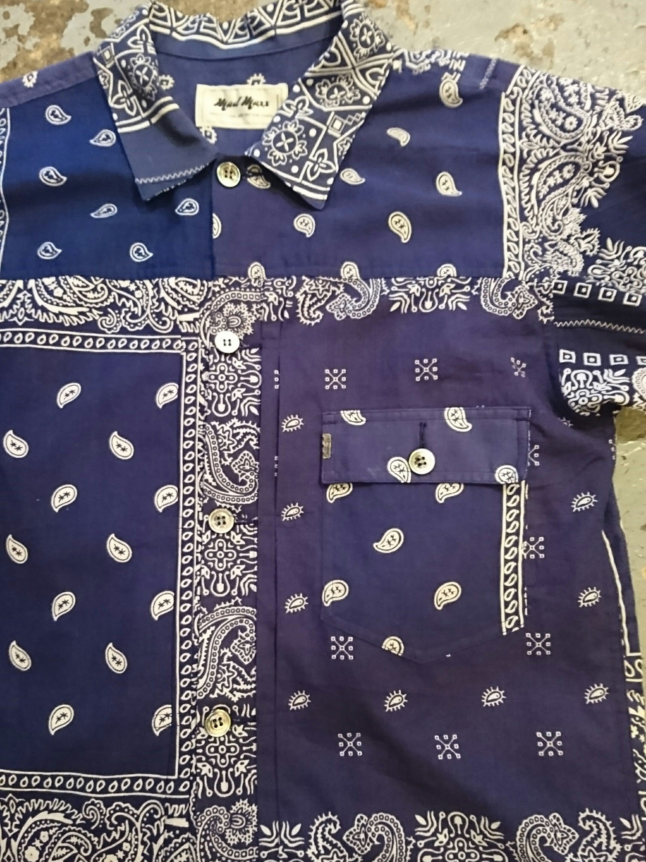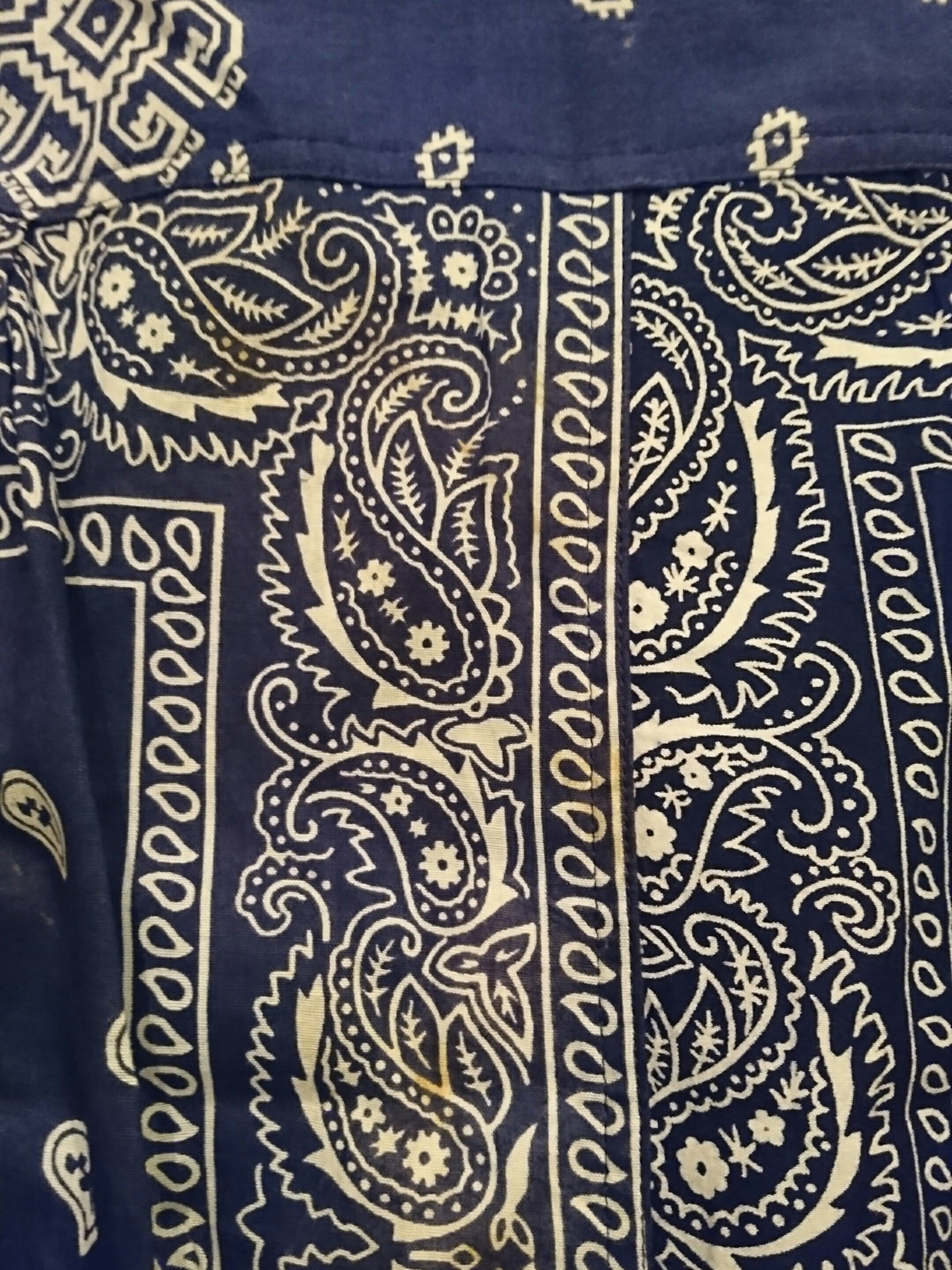 ヴィンテージのバンダナを使用してる為、柄が一点一点違うのと色褪せ、バンダナ自体に付いてる汚れまで最大限に活かし雰囲気抜群に仕上げた