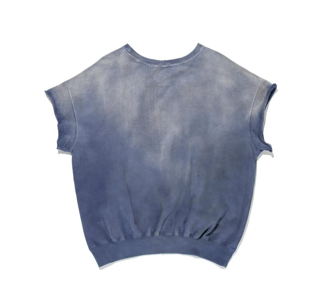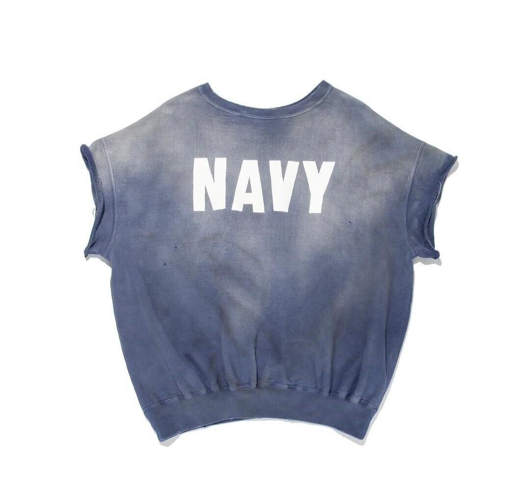 米海軍に着用された海軍を象徴する色のスウェットをイメージし、兵士がカットオフして着用し続けた様子を表現。甲板で過ごす日々の中で、日に焼け退色し、汚れた雰囲気をリアルに再現しています。