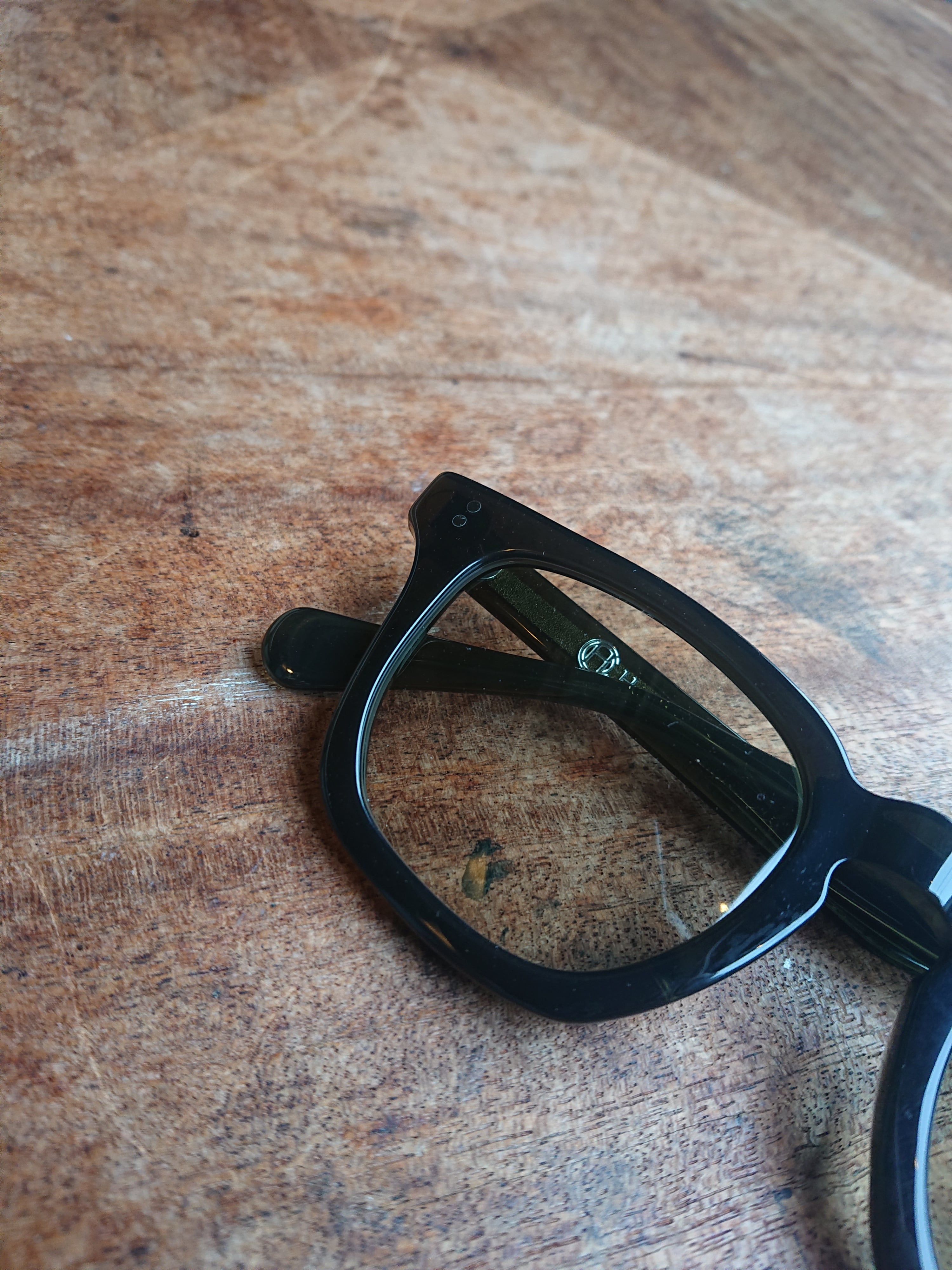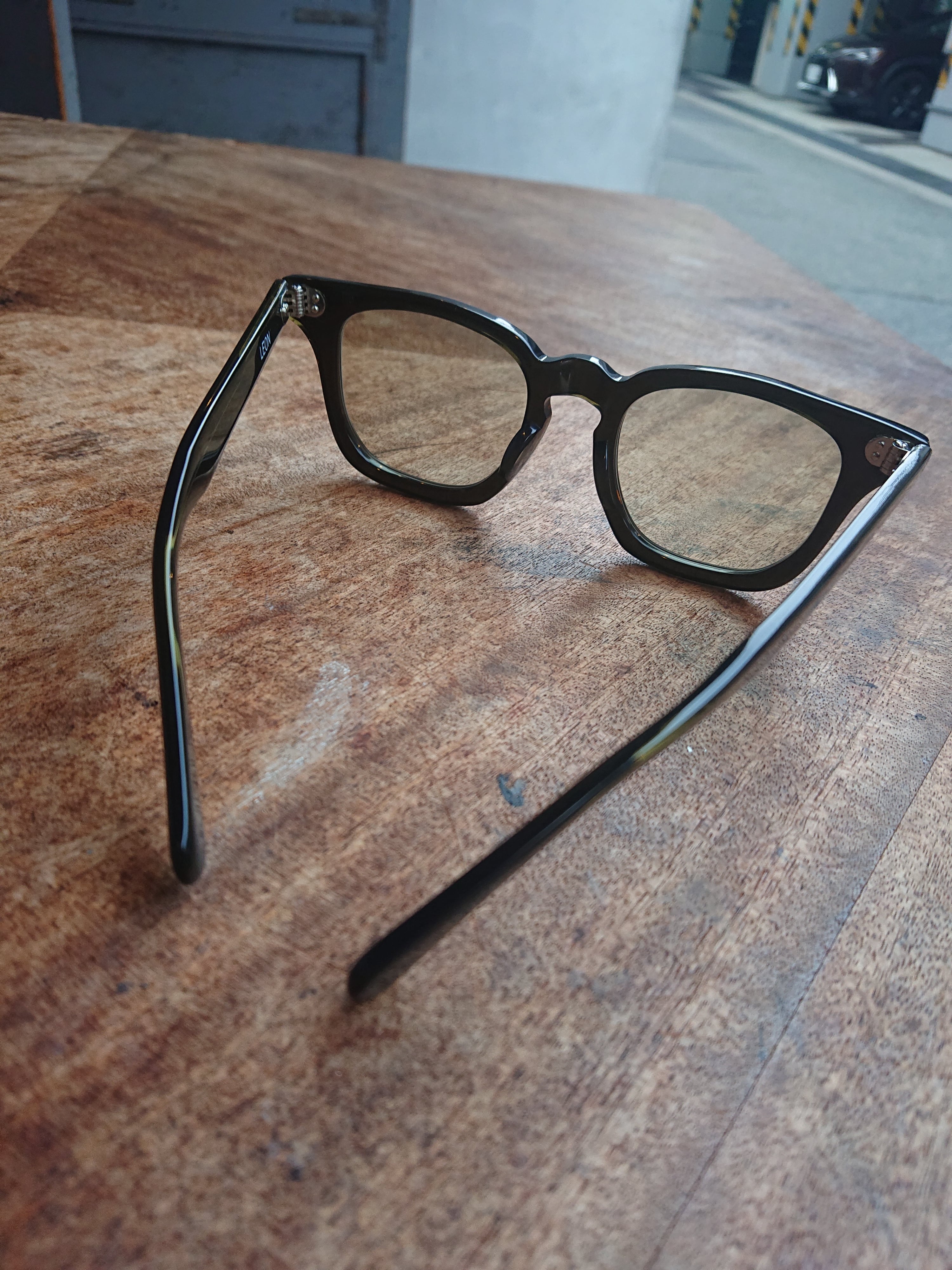 アメリカンオプティカルのデッドストックをベースに、智(ヨロイ)というリムの両端部分を上側に上げ、リムの端が真っすぐになるようデザインを修正。キリッとした印象に!