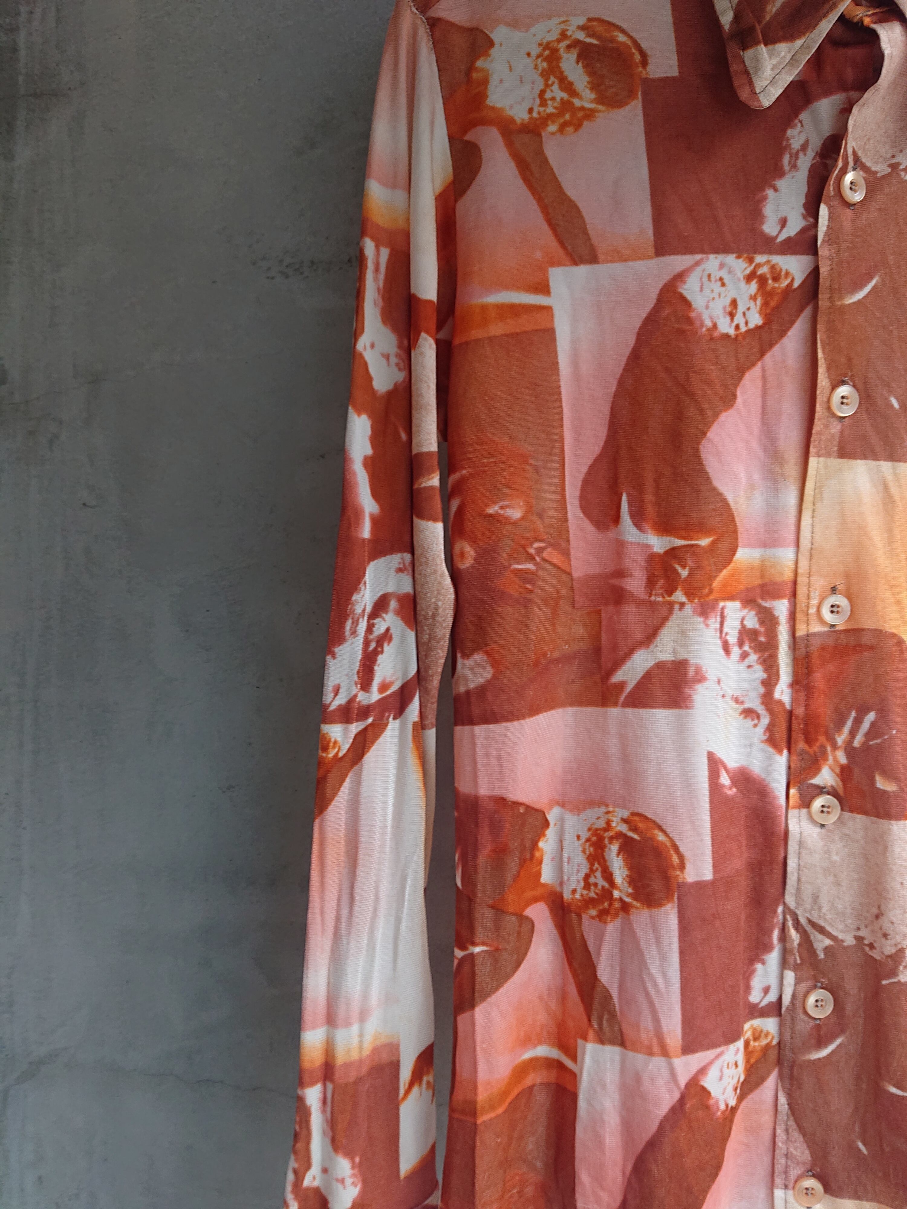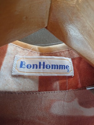 1970年代 Bon Homme ヌード柄ポリシャツになります。久しぶりの入荷になるポリシャツ。年代を感じさせるヌード柄は魅力。総柄でポリシャツ独特のタイトシルエット。ポリの光沢ある生地感。懐かしくもあり、今とても新鮮で興味わくアイテム。ジャストサイズを選ぶ方も増えてきたなかエロ格好良く合わせて欲しいシャツです。