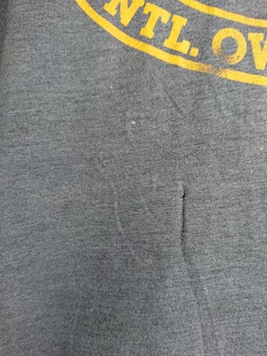 ブラックの色褪せた感じも良いです。今回紹介してるカットオフと別に同じ場所からTシャツも入手。小さな傷、所々ペンキのとびははありますがそこも雰囲気。お探しの方も多いヴィンテージ TRIUMPHアイテム。サイズ合う方いかがでしょうか。COTTON 50% POLYESTER 50%。