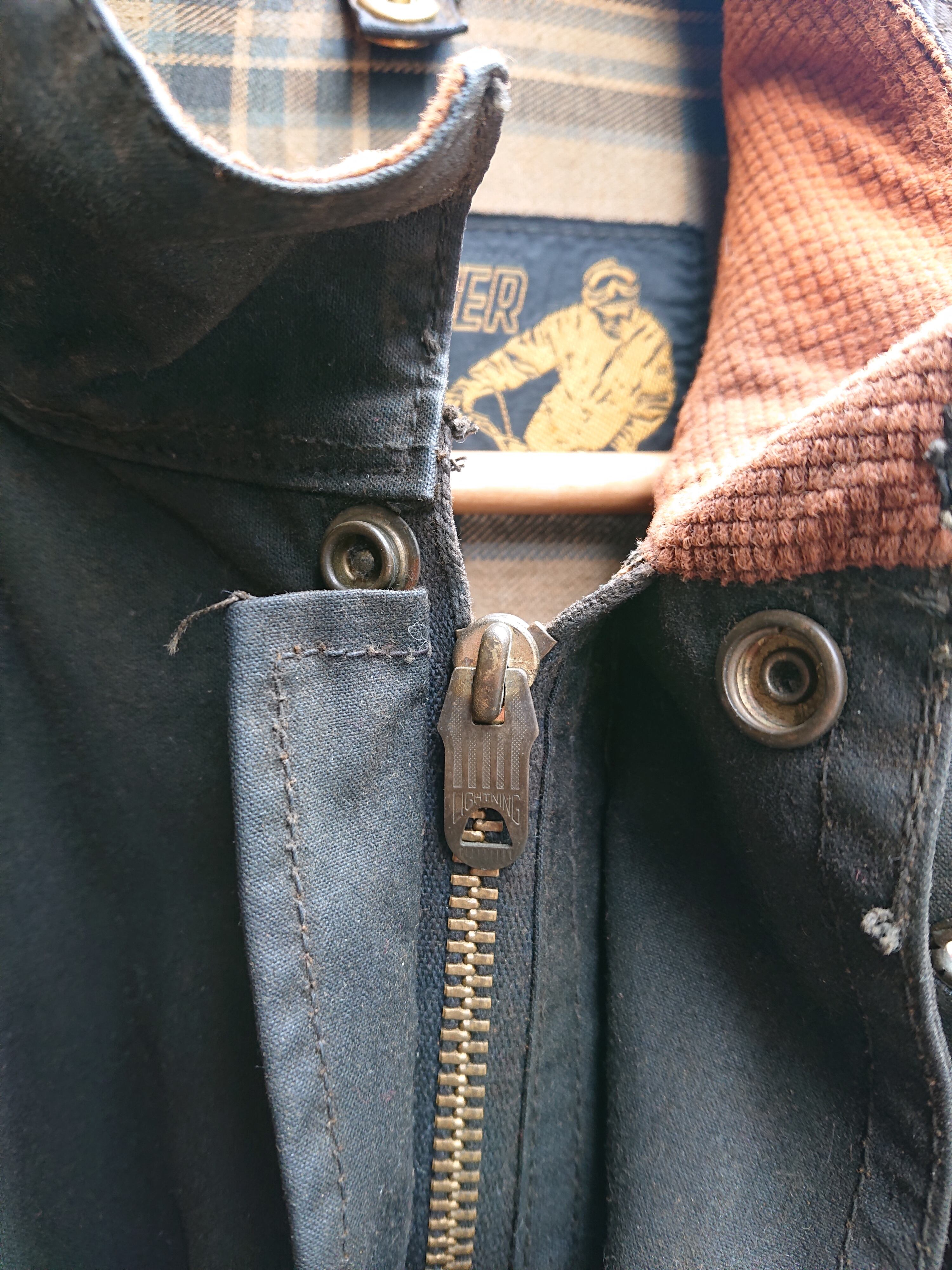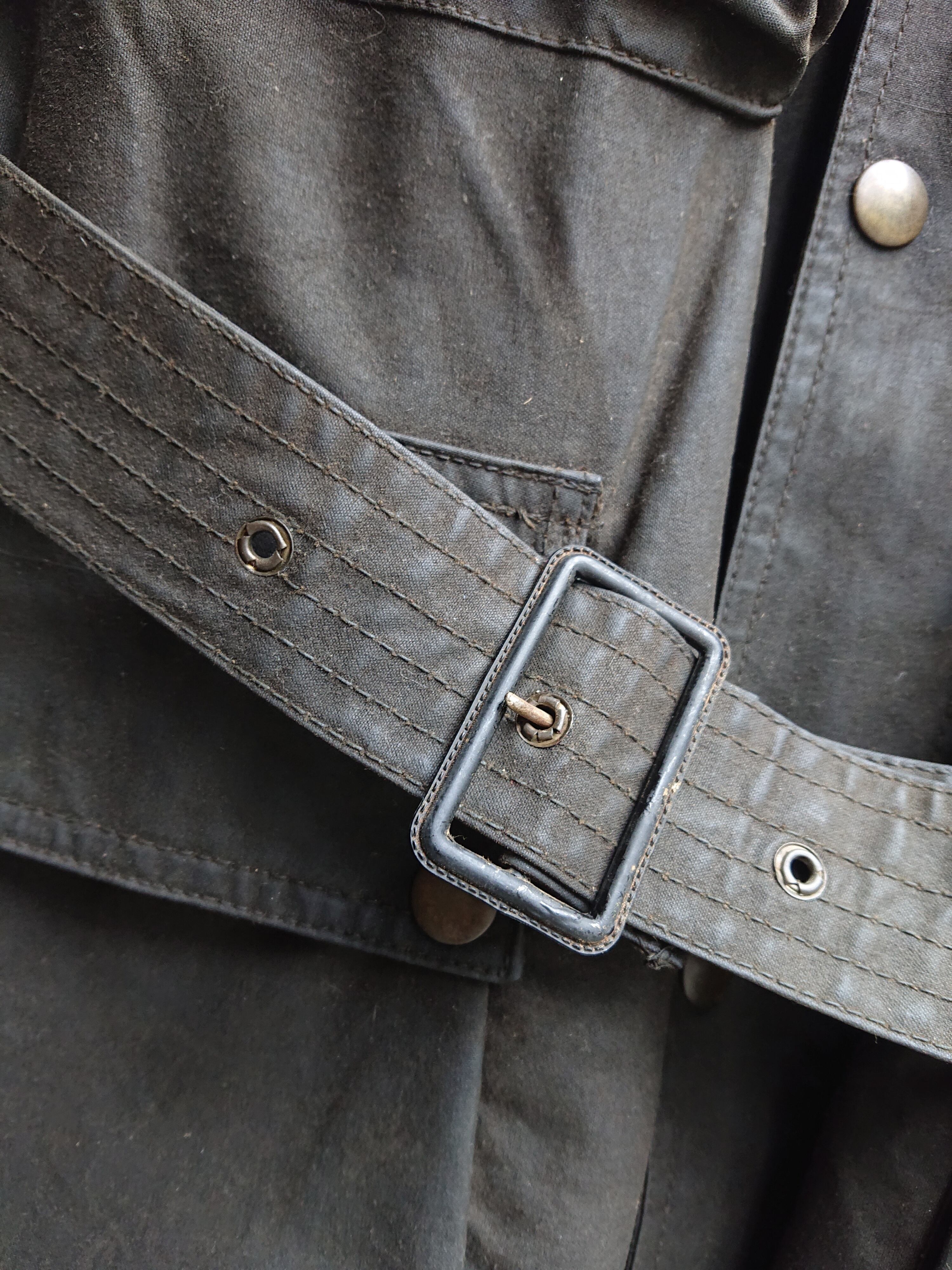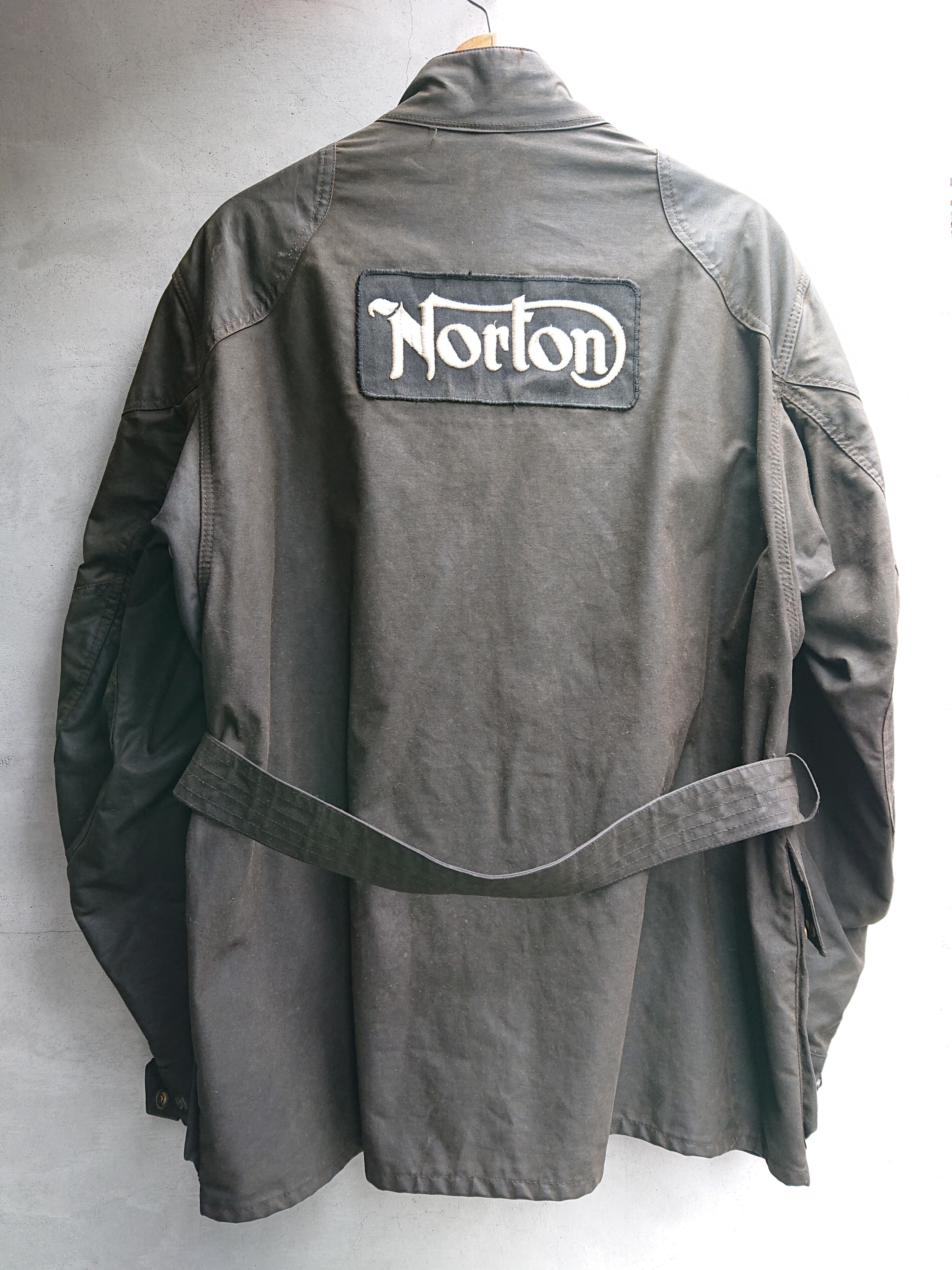 1960年代のベルスタッフ トライアルマスターになります。1924年創業のイギリスを代表するブランド Belstaff。高い撥水性を考慮し、通気性のあるワックスコットンを世界に先駆け使用したブランドの1つと思います。今回紹介するトライアルマスター、Norton OWNERS CLUBのものでフロントと背中にワッペンにAMA、NATIONAL MOTORCYCLE ASSOCIATION等のワッペンもついたスペシャルなジャケット。レザージャケットと同様、着込んでいくほど雰囲気が増してくるワックスコットン。ジャケット自体にワックスは残ってますが、嫌なベタつきは無くワックスド特有の臭いも気にならないと思います。黒タグのがつくタイプで、内側にポケットが付き、ジッパーはライトニング製。現在はイタリア製になったベルスタッフ。ヴィンテージのイギリス製は雰囲気からして別格の佇まい。全体的にコンディション良い一着です。
