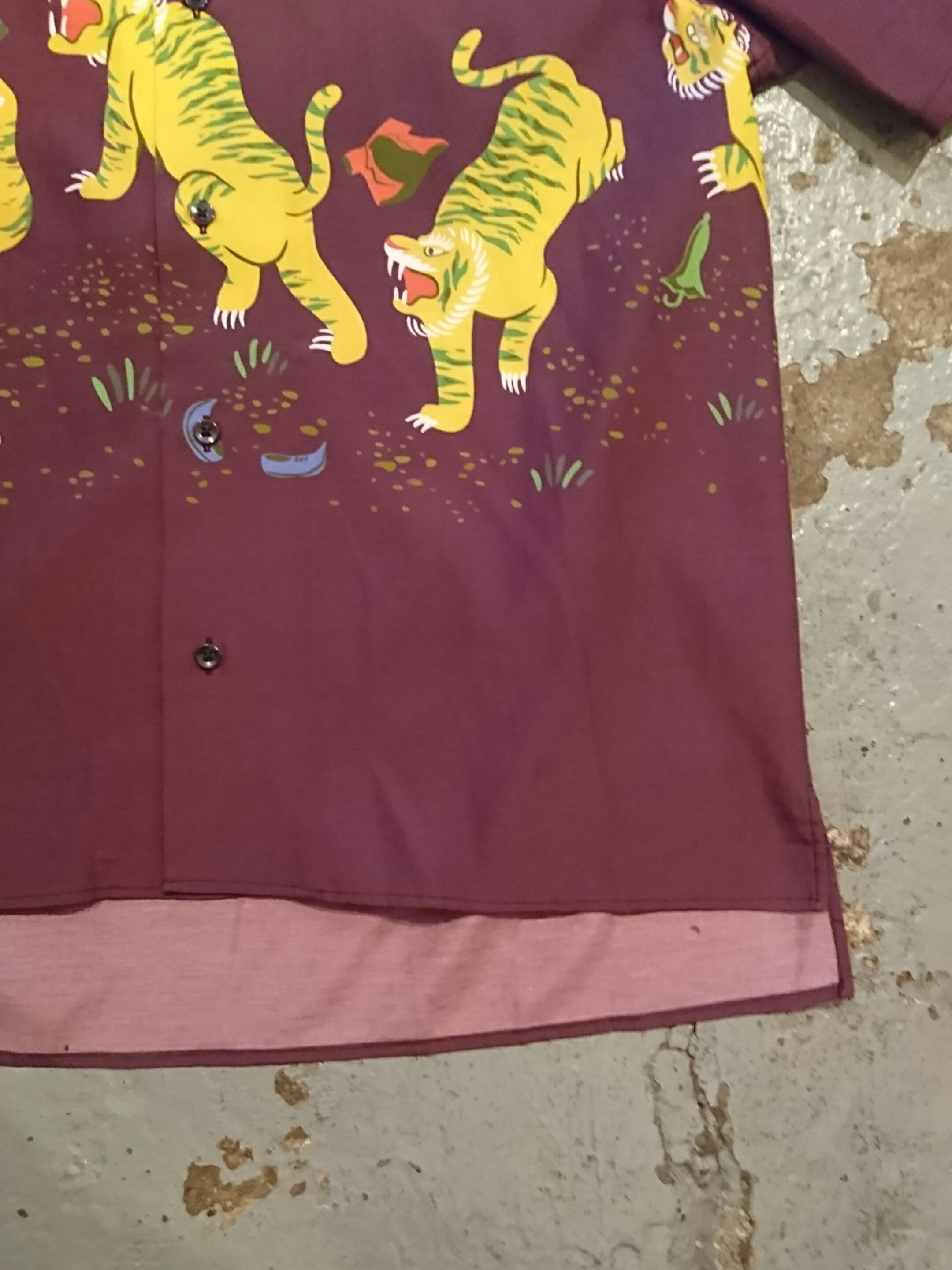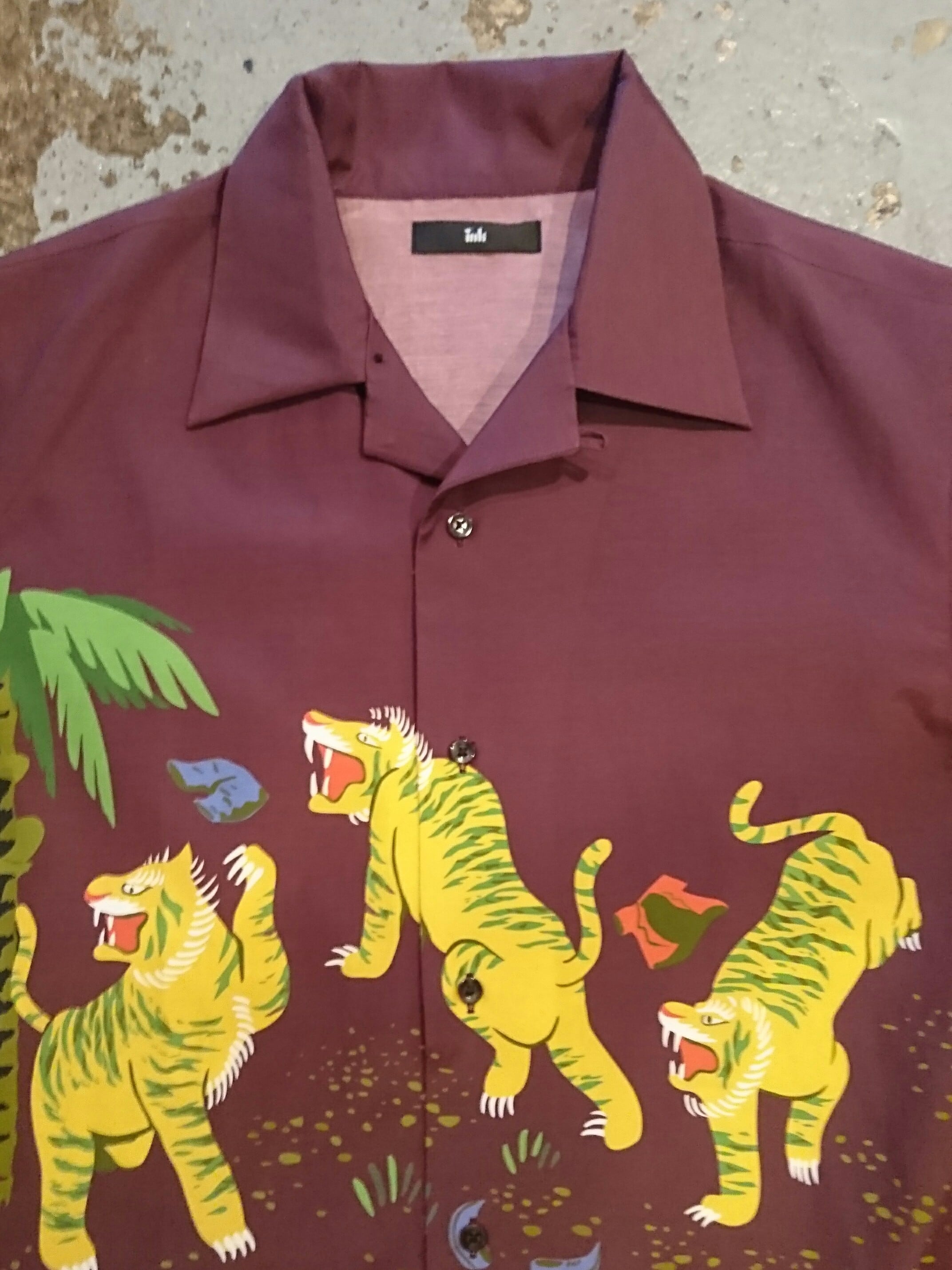 させる絵柄をプリント。ヴィンテージのアロハには黒人モチーフが少なく、inkらしいひねりを加えたアロハシャツです。コットン50%、レーヨン50%で落ち感と程よくハリのある生地。
