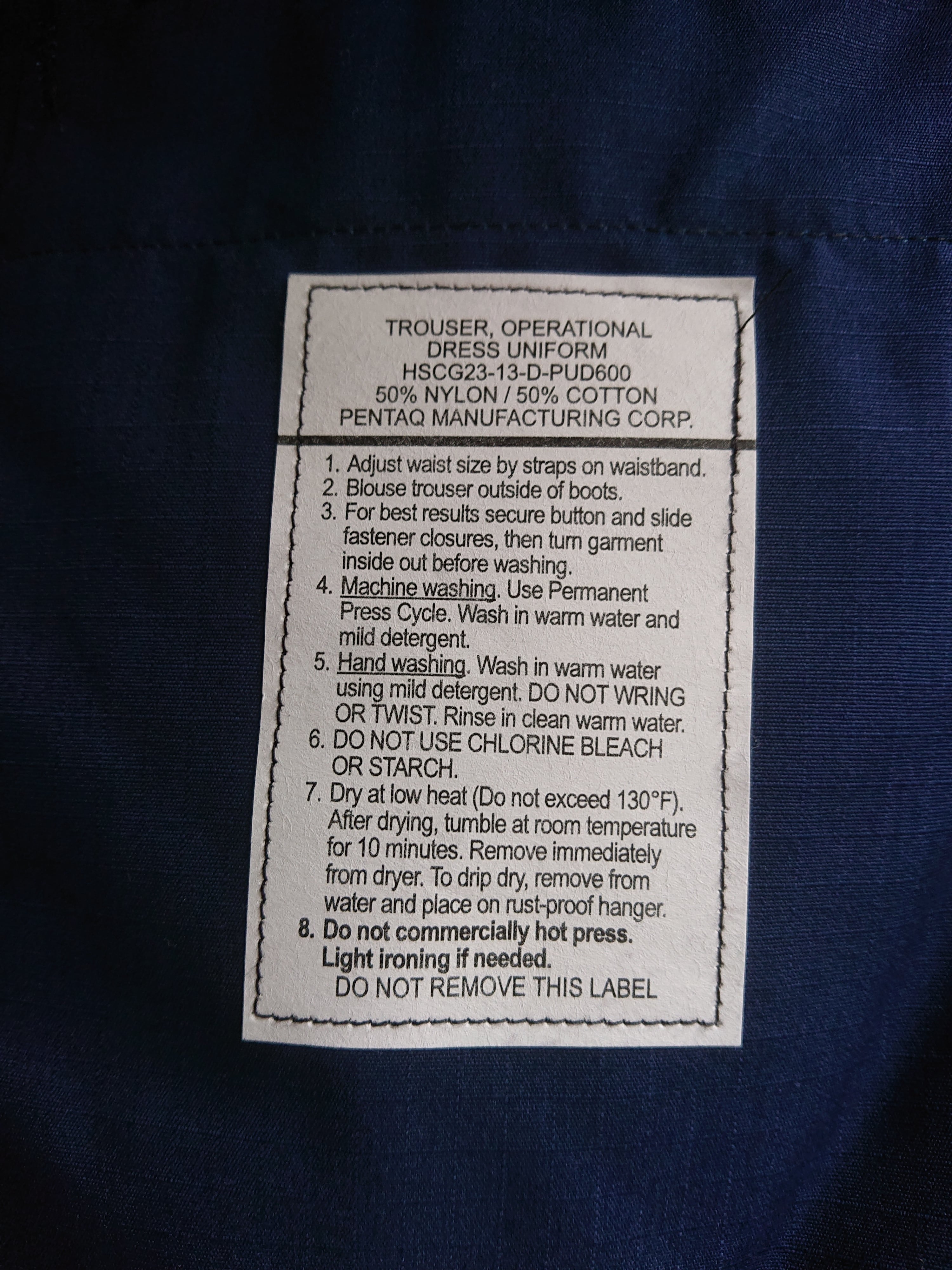 アメリカ軍の一部門でもある米国沿岸警備隊(U.S. COAST GUARD/USCG)で使用されているOPERATIONAL DRESS UNIFORM 通称ODUと呼ばれるパンツ。沿岸警備隊とはいえ、世界各国の海軍の能力と規模に匹敵する、最大かつ最も強力なのが米国沿岸警備隊です。