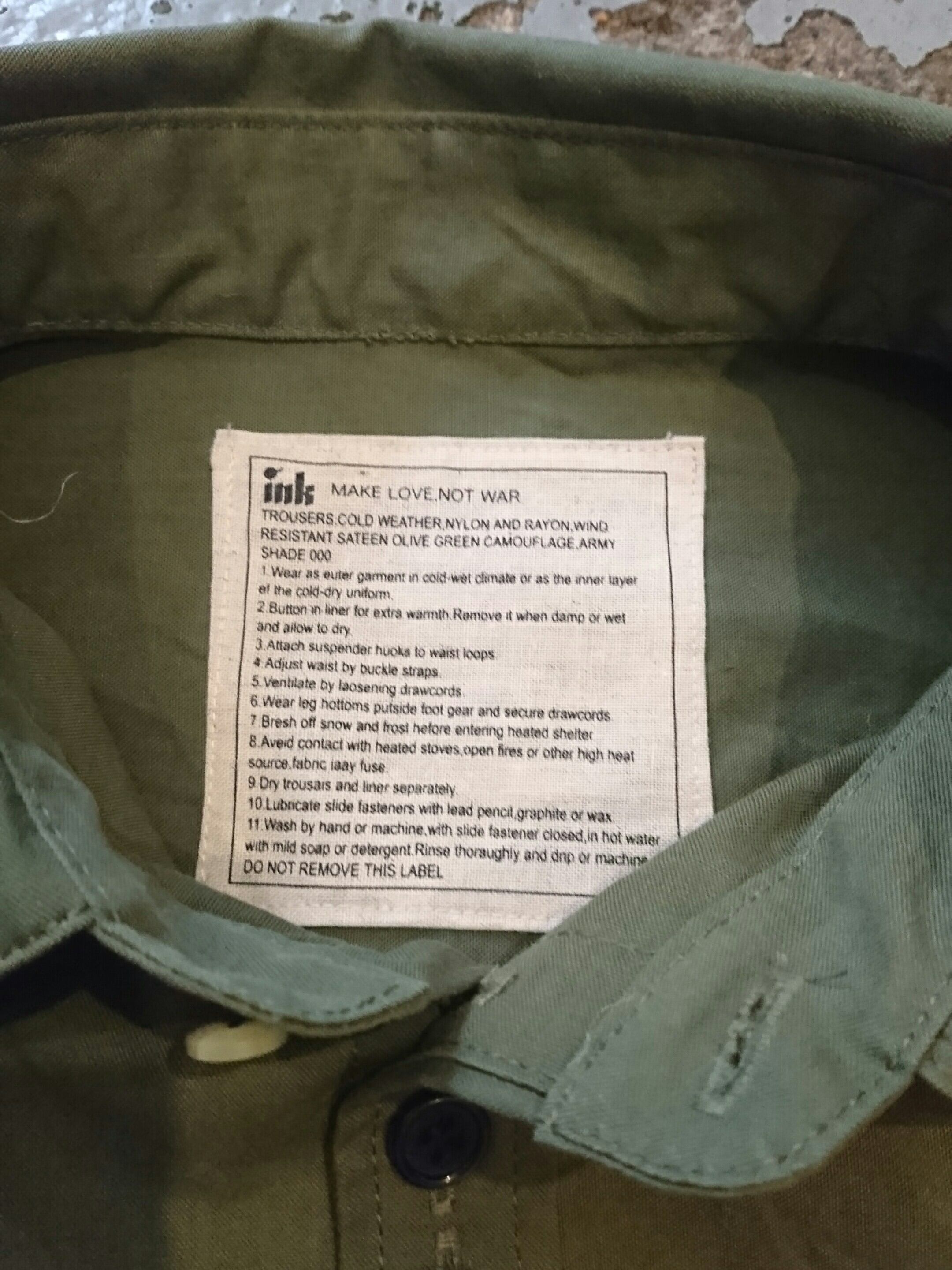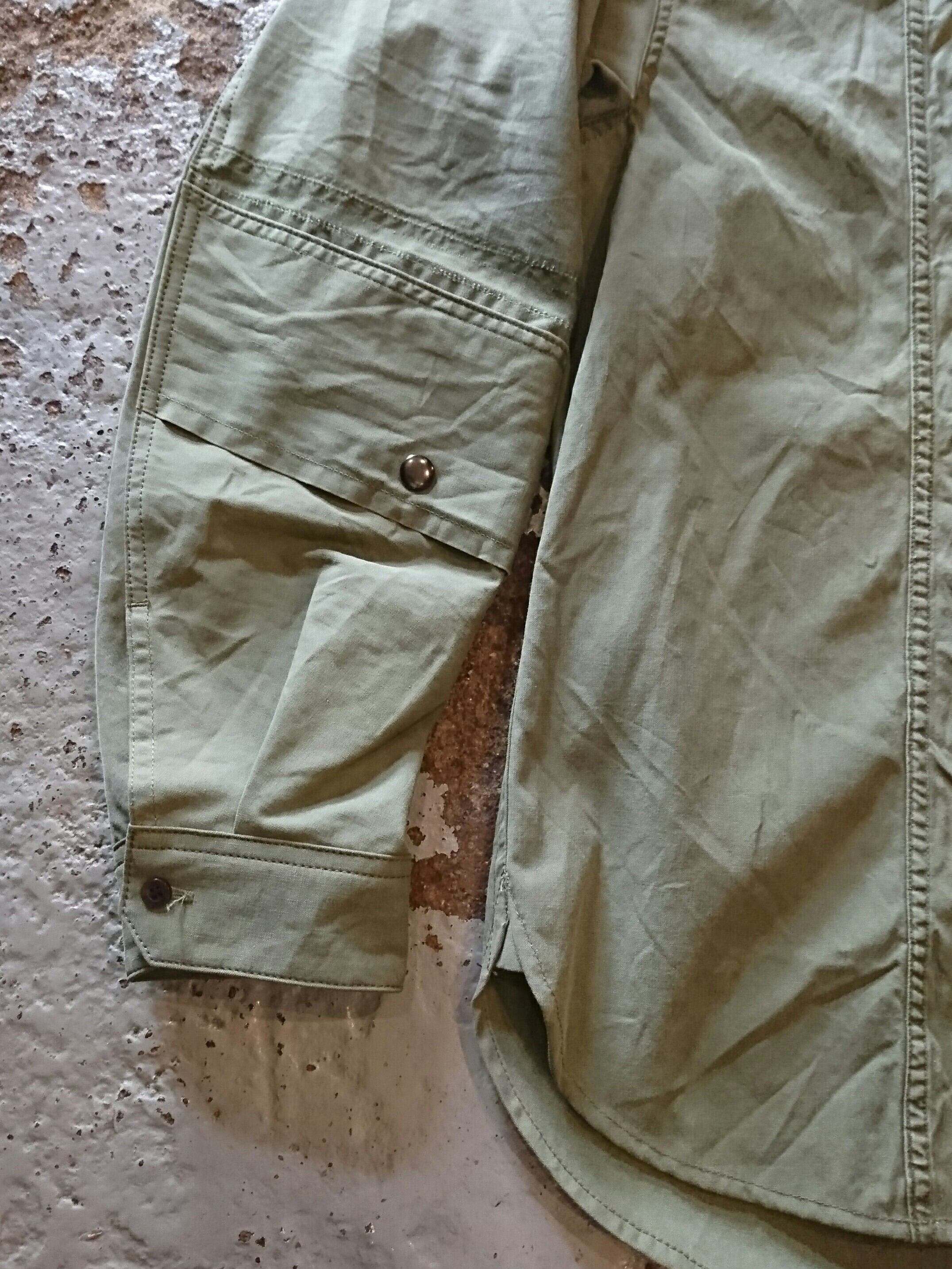 60年代のUSミリタリーのスリーピングバッグを使用し、スリーピングバッグのディテールを活かしたデザインと左胸の大きなスラッシュポケットが特徴。フロントのボタンは16個ついていて全てヴィンテージのボタンを使用し、ボタンの大きさがグラデーションになるよう連なります。