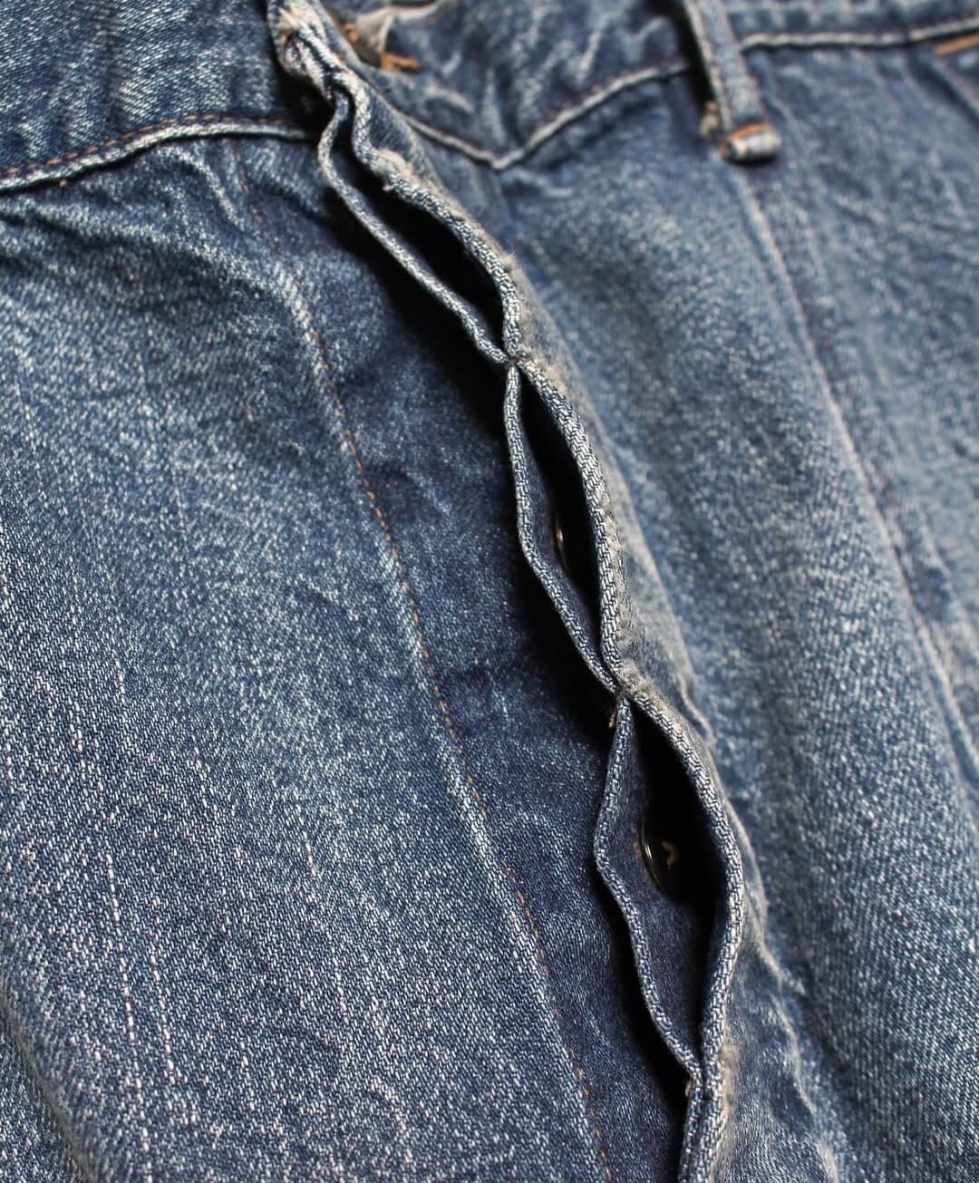 US NAVY DUNGAREE WORKING UNIFORM DENIMTROUSERS。1940年代に着用が開始されたM-44ユニフォーム。作業により付いた油染みと、作業を物語る退色感をリアルに表現し、40年代の空気感と、 本物志向が頷くヴィンテージ感漂う出来栄え。