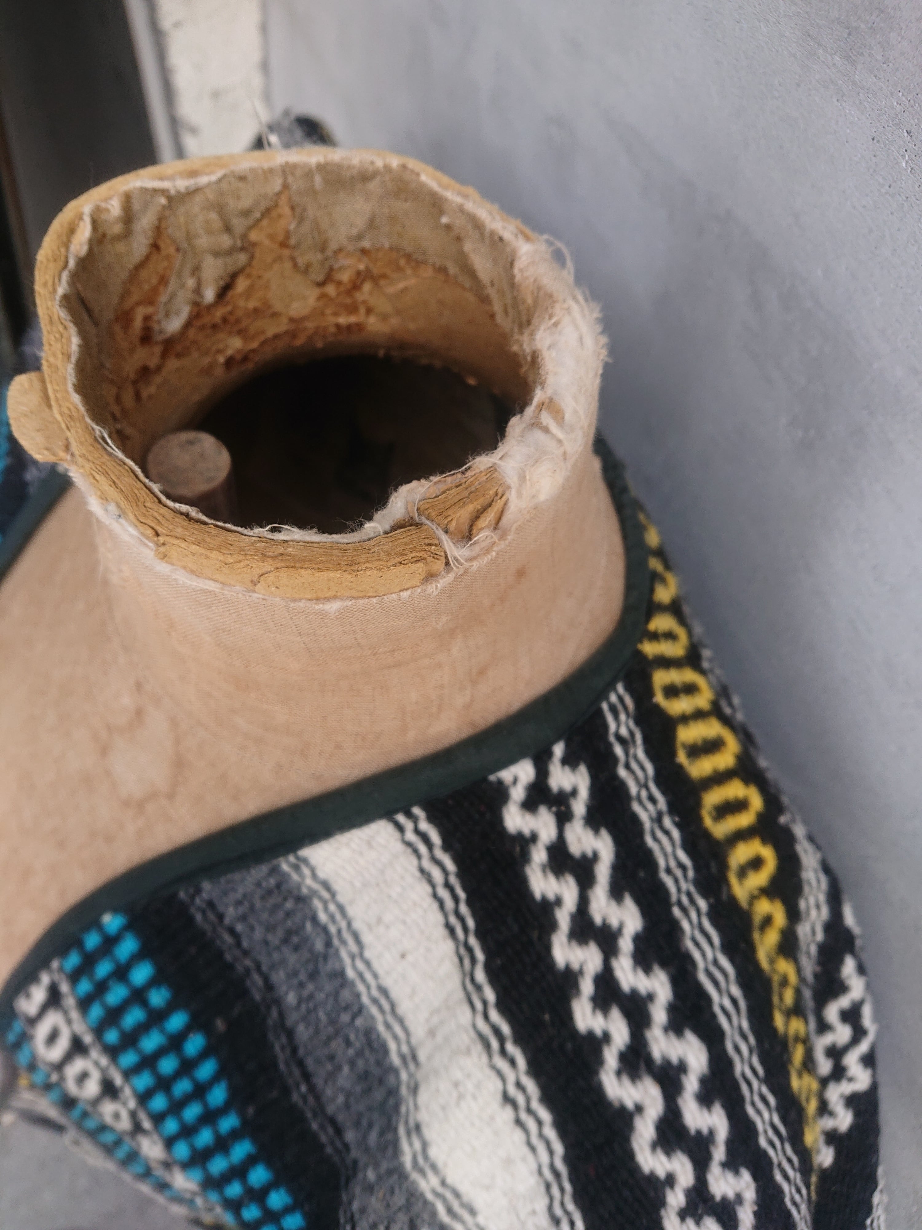 色彩と織柄が印象的なメキシカンラグを使用したベストになります。 インテリア雑貨としても評価の高いメキシカンラグを、あえてフロントボタンを省いたベスト仕様にすることで、余計な装飾を排したデザイン。カットソーやジャケットの上から羽織っていただけ、個性的なデザインとラグ素材が際立つベスト。