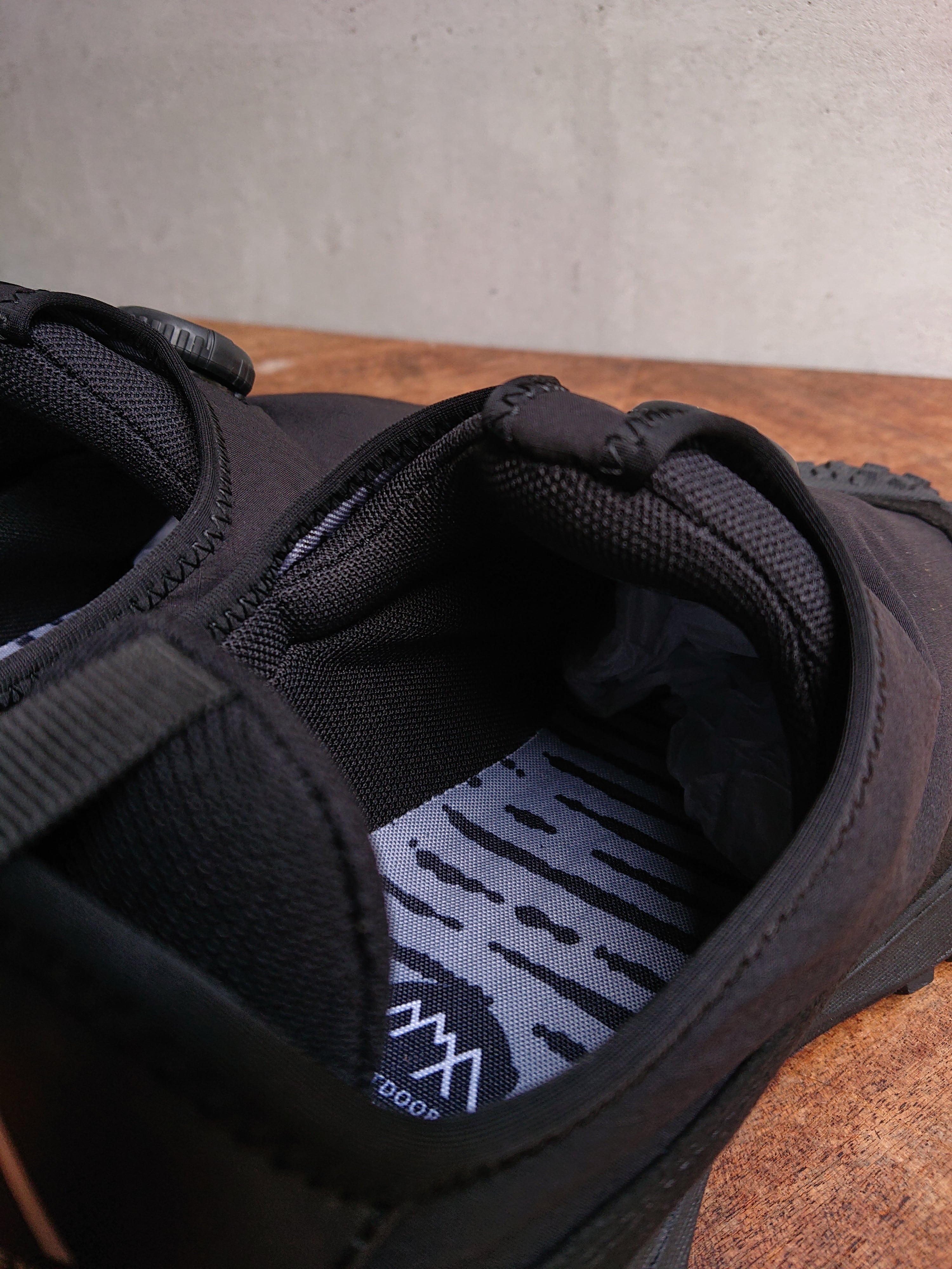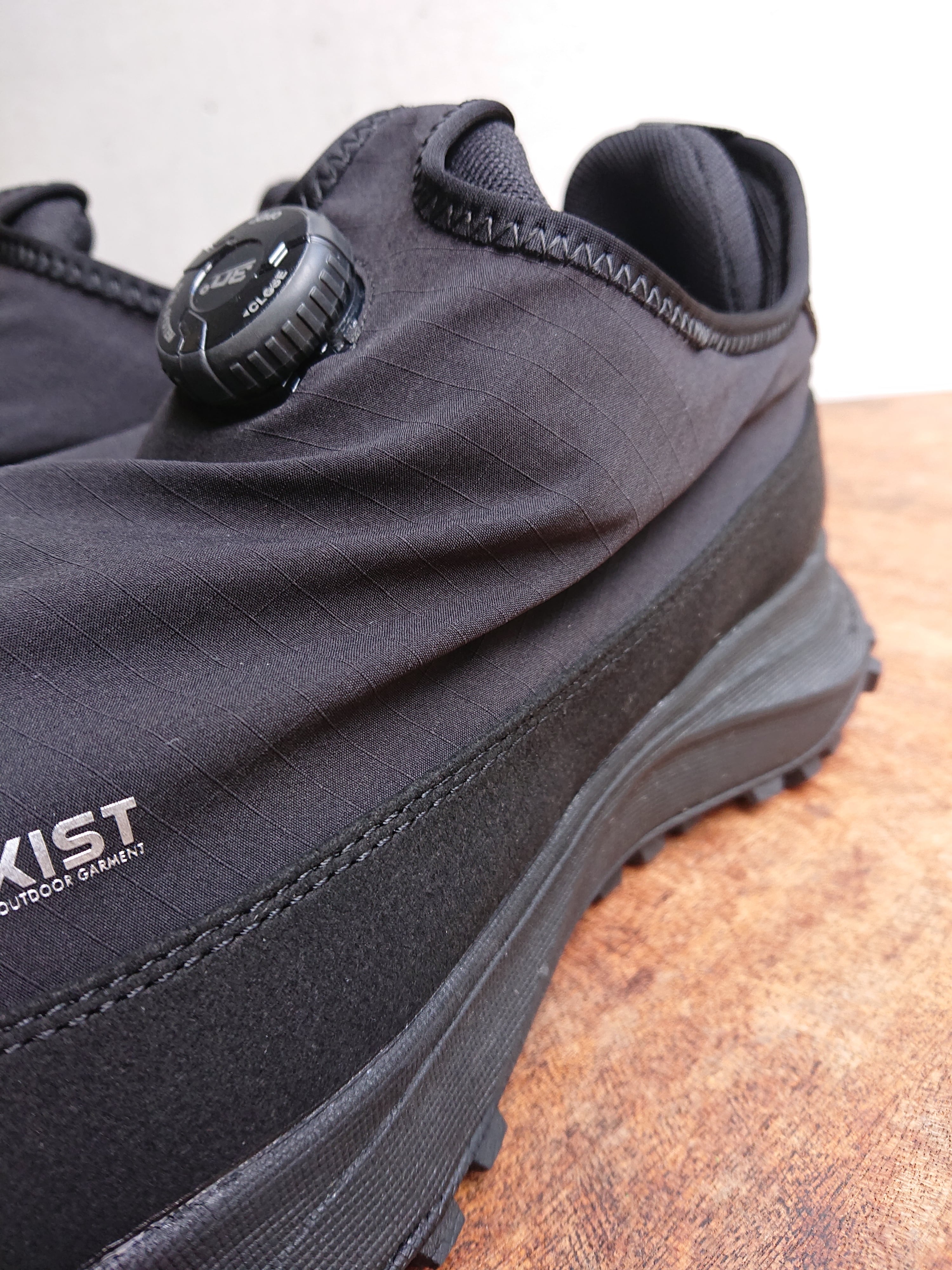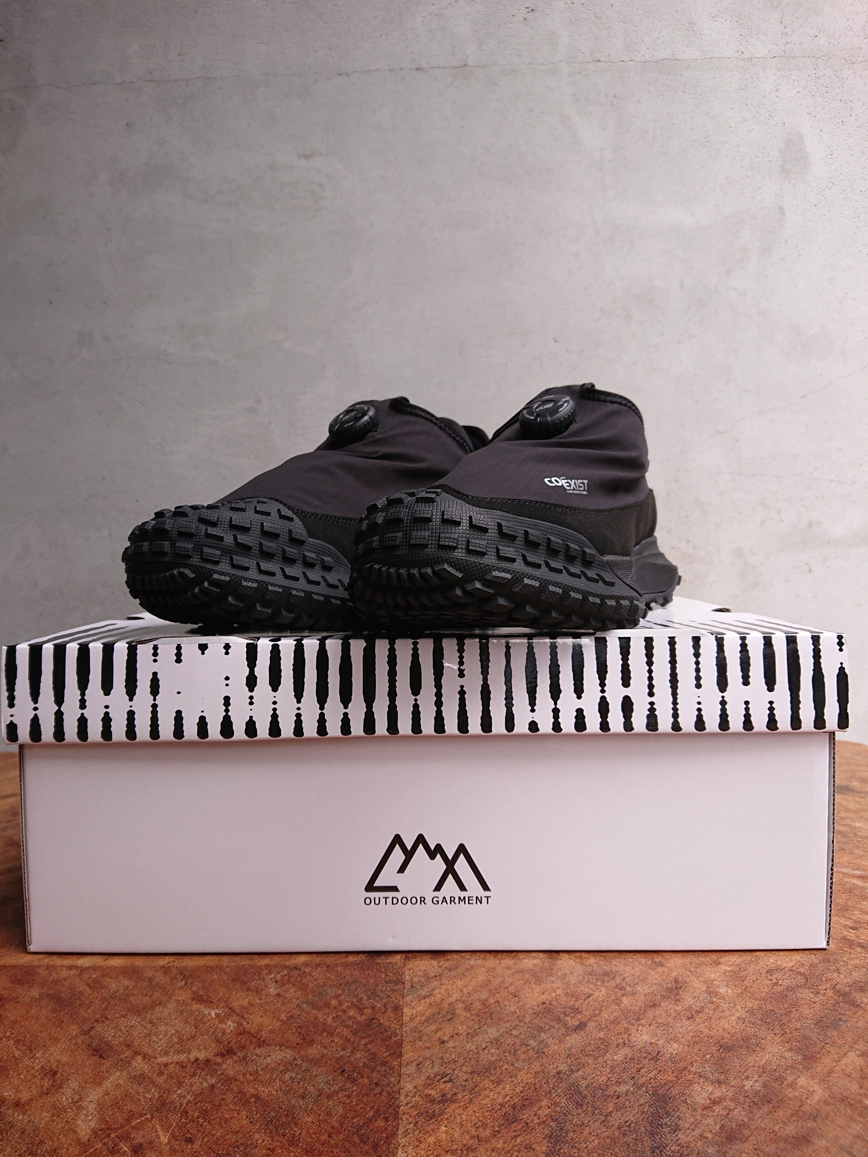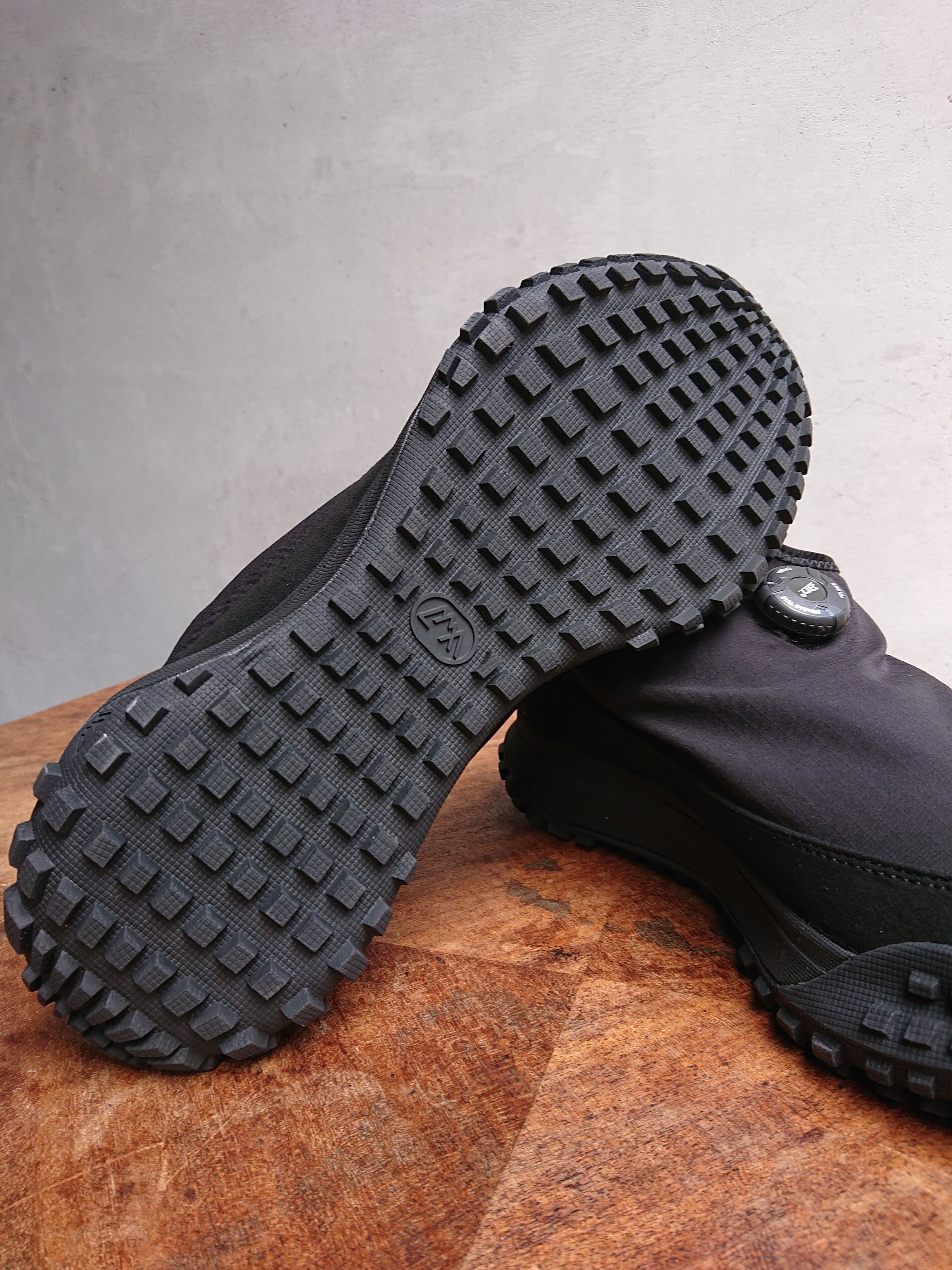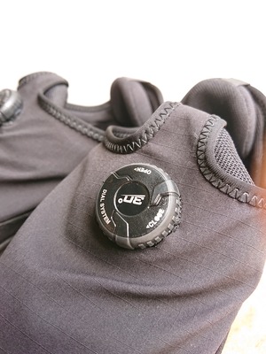アッパーにはWEARにも採用されているCMFの防水機能最上位ランクに位置する ”COEXIST”を使用。ダイヤル式シューレースで