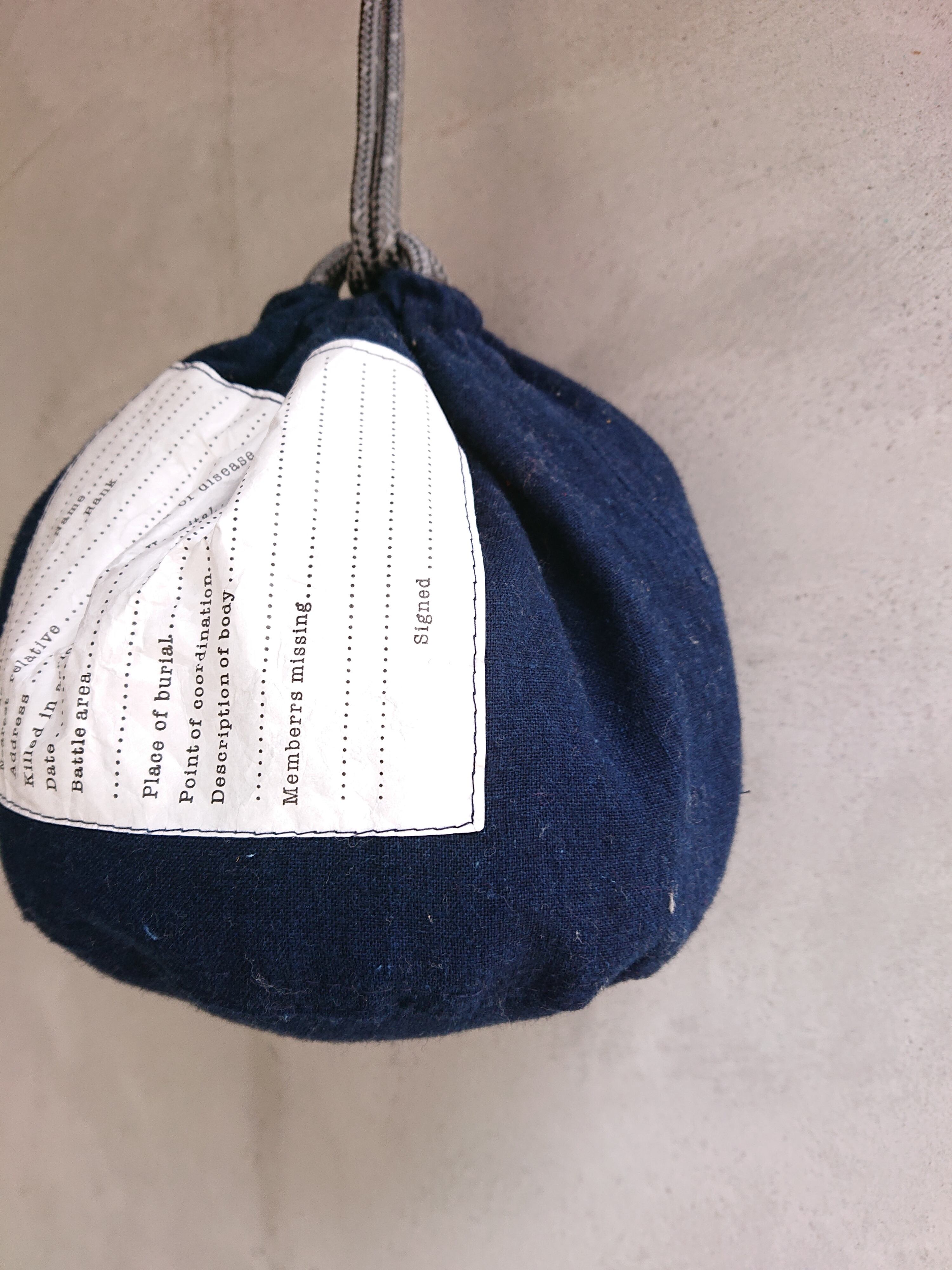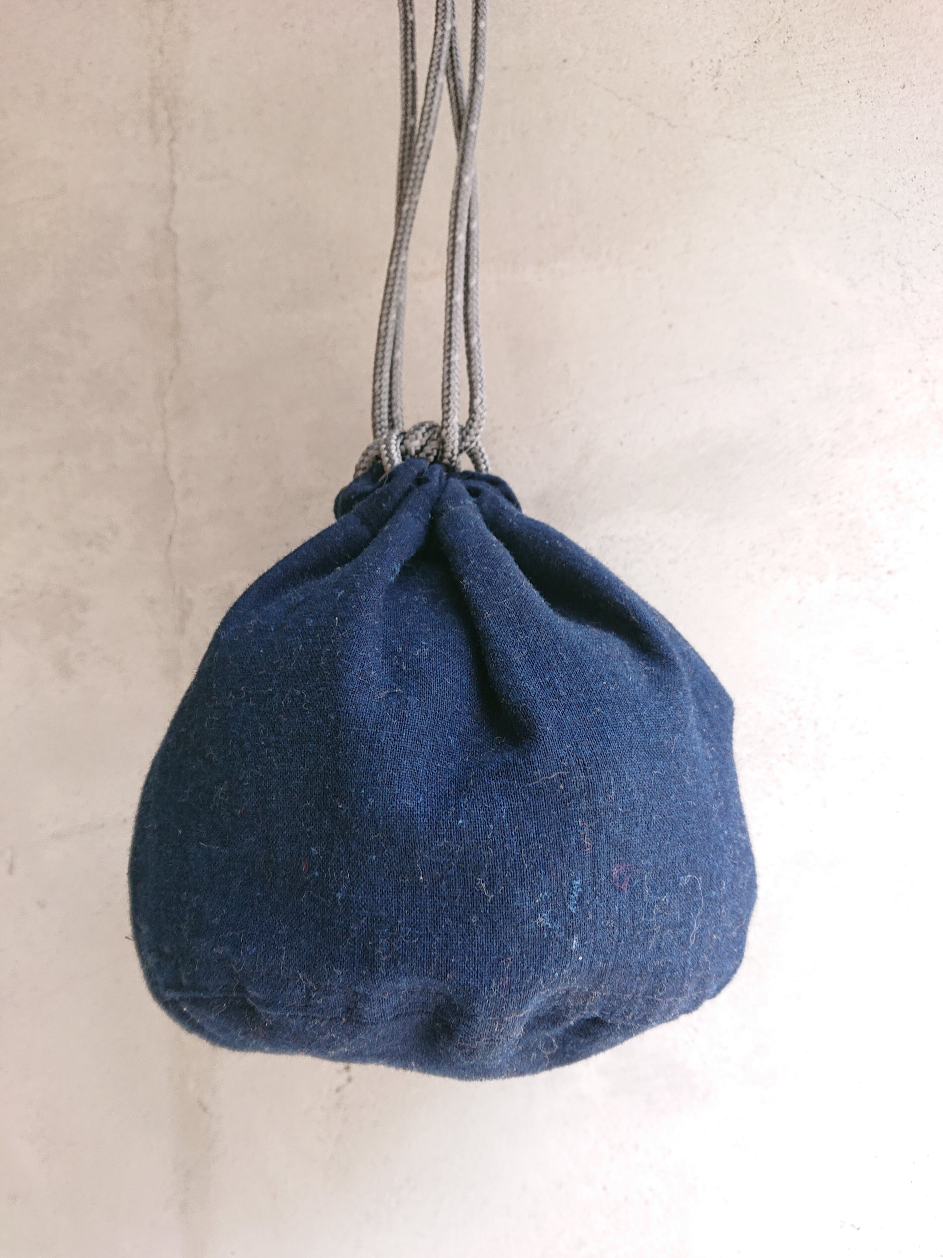 ヴィンテージを再現。ヴィンテージの本藍古布を可能な限り色合わせして組み上げ本藍の贅沢な PERSONAL EFFECTS BAG製作致しました。一点一点雰囲気が異なるのも魅力。ドローコードにはアウトドア用の反射材入りパラコードを使用し、タウンユースに耐える強度に仕上げました。