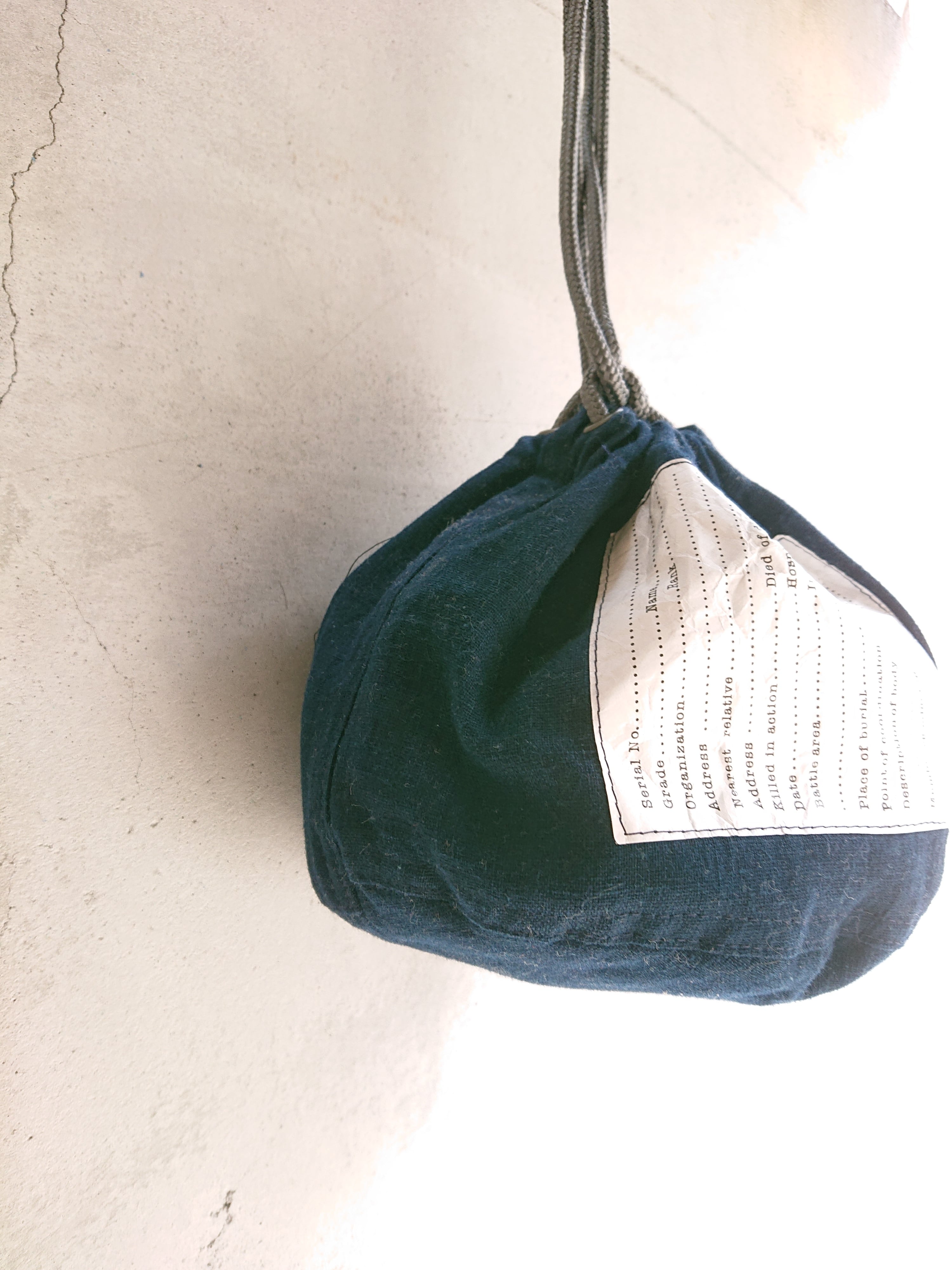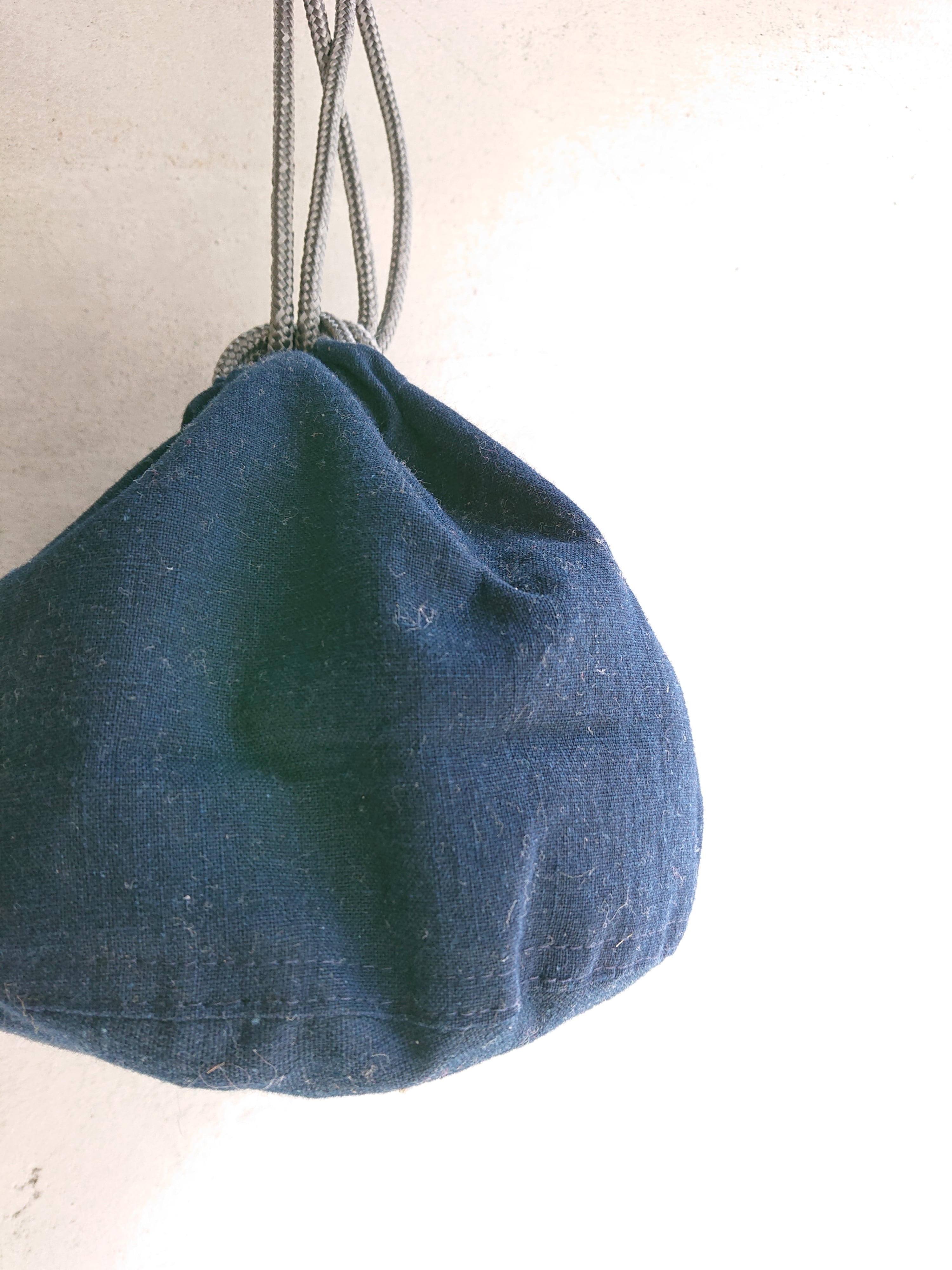 ヴィンテージを再現。ヴィンテージの本藍古布を可能な限り色合わせして組み上げ本藍の贅沢な PERSONAL EFFECTS BAG製作致しました。一点一点雰囲気が異なるのも魅力。ドローコードにはアウトドア用の反射材入りパラコードを使用し、タウンユースに耐える強度に仕上げました。