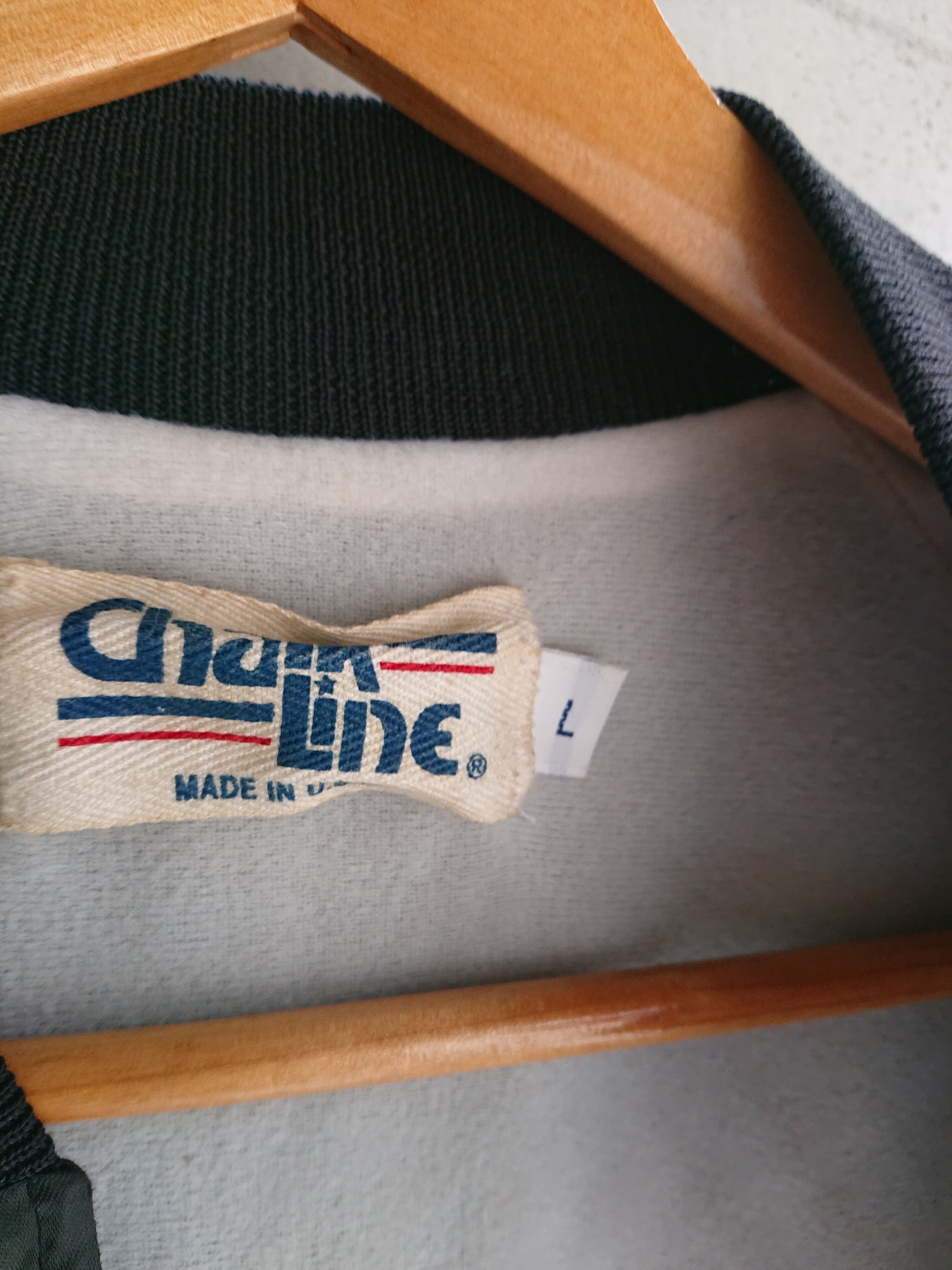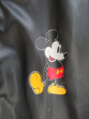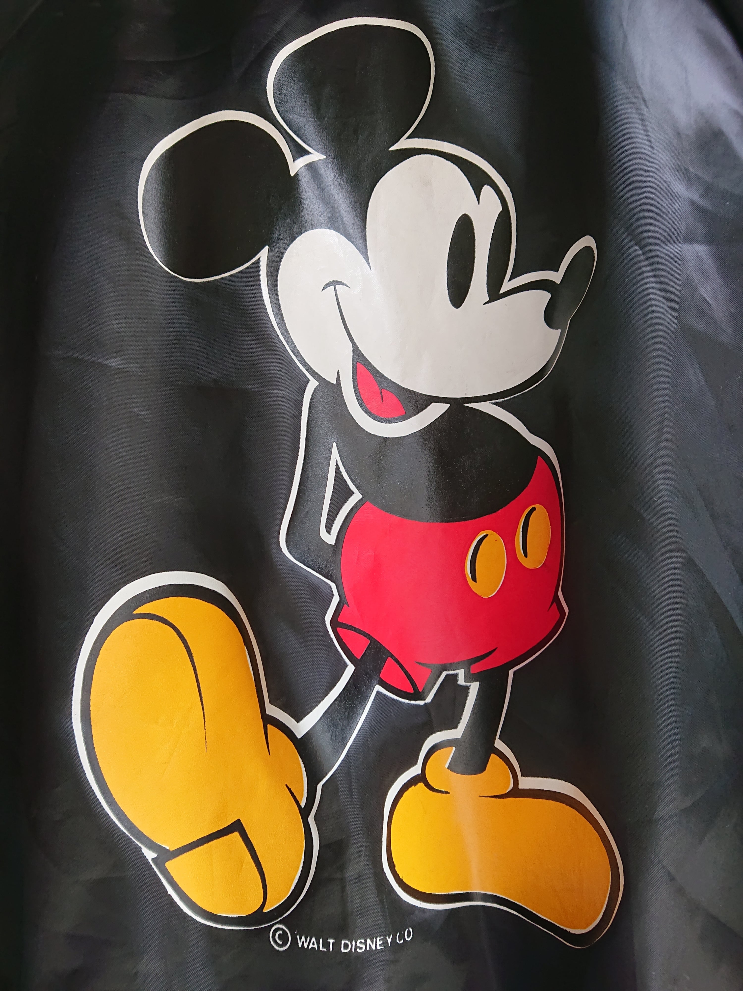 1980年代 ミッキーのブラックカラーナイロンサテンジャケットになります。フロントはスナップ仕様で背中のミッキーのプリントがインパクトあります。リブもブラックなのでカジュアルすぎない印象。スーベニアジャケットを羽織る感じで着るのも格好良いと思います。裏地はポリエステル素材。ウォルトディズニーオフィシャルでボディはChalk Line。勿論、MADE IN USA。全体的にコンディション良い一着です。