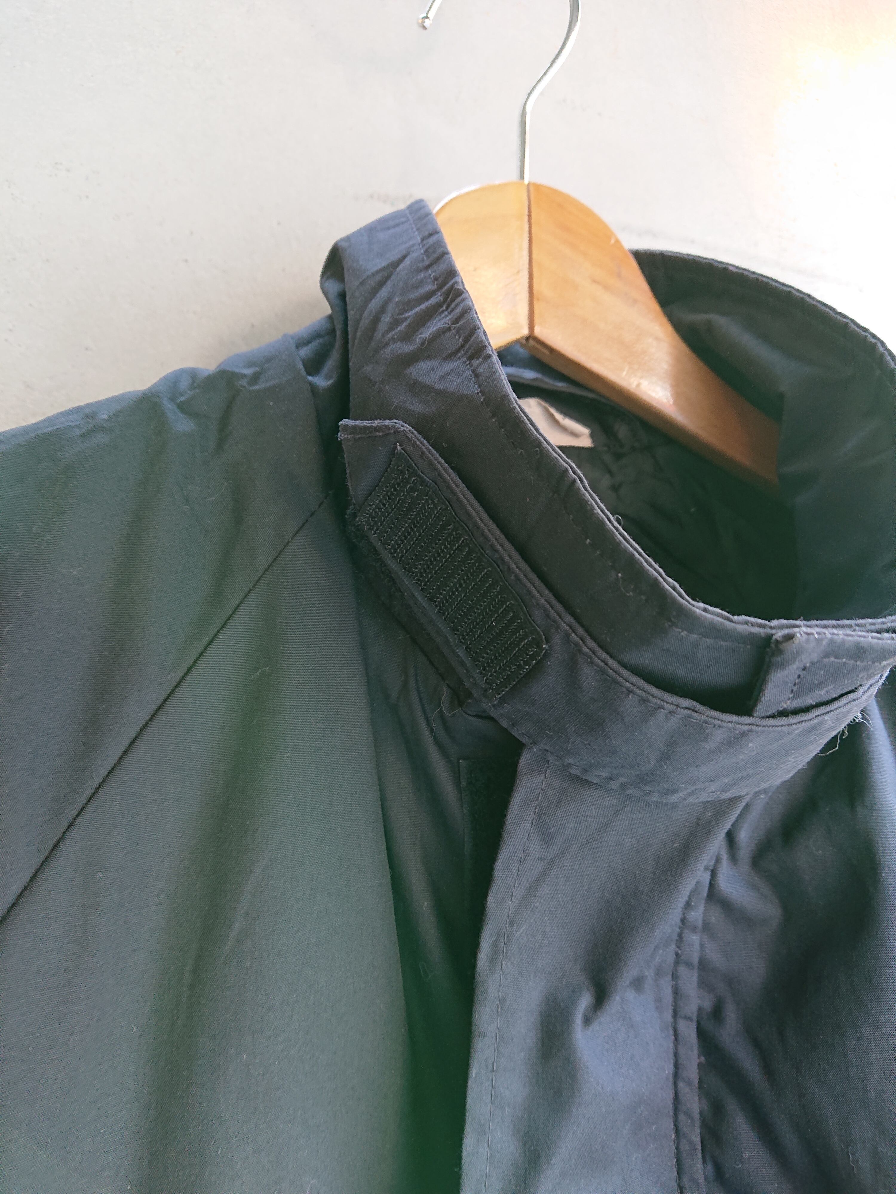 90年代 US NAVY FRY FRONT UTILITY JACKETになります。比翼タイプで生地は張りのあるポリエステルとコットン混紡生地。中綿入りのタイプで防寒性もあり。袖口は防風性を高める筒袖とリブが付きます。ブラックカラーなのも嬉しいポイント。シンプルなデザインなので飽きこず長く着てもらえる一着です。