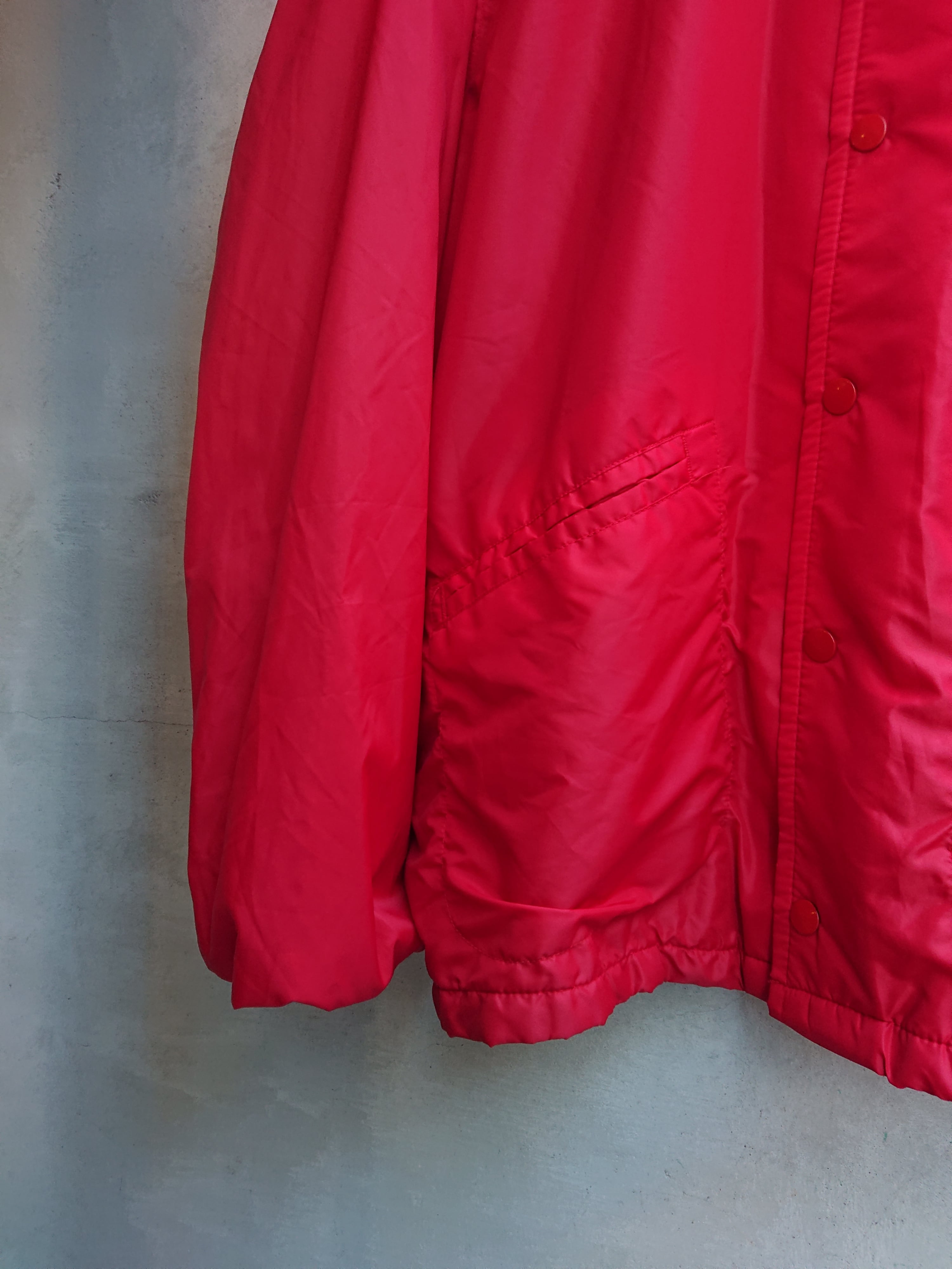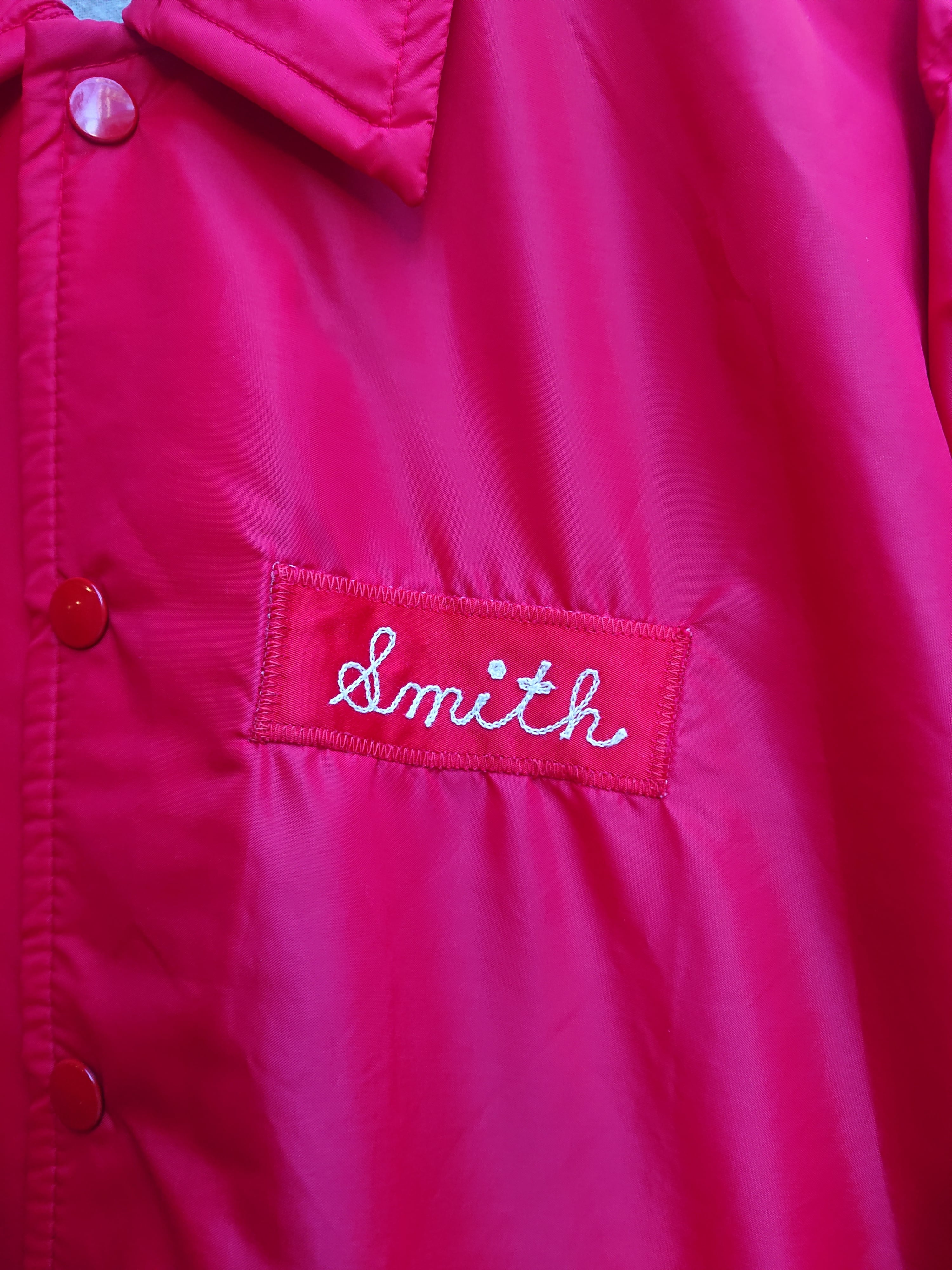 古いコーチジャケットの雰囲気は格好良いの一言。赤ボディに背中と胸元にワッペン。多少汚れはありますが全く問題ないと思います。なんなら綺麗より多少汚れてくれてるほうが男前なジャケットです。裏地付きのタイプになります。