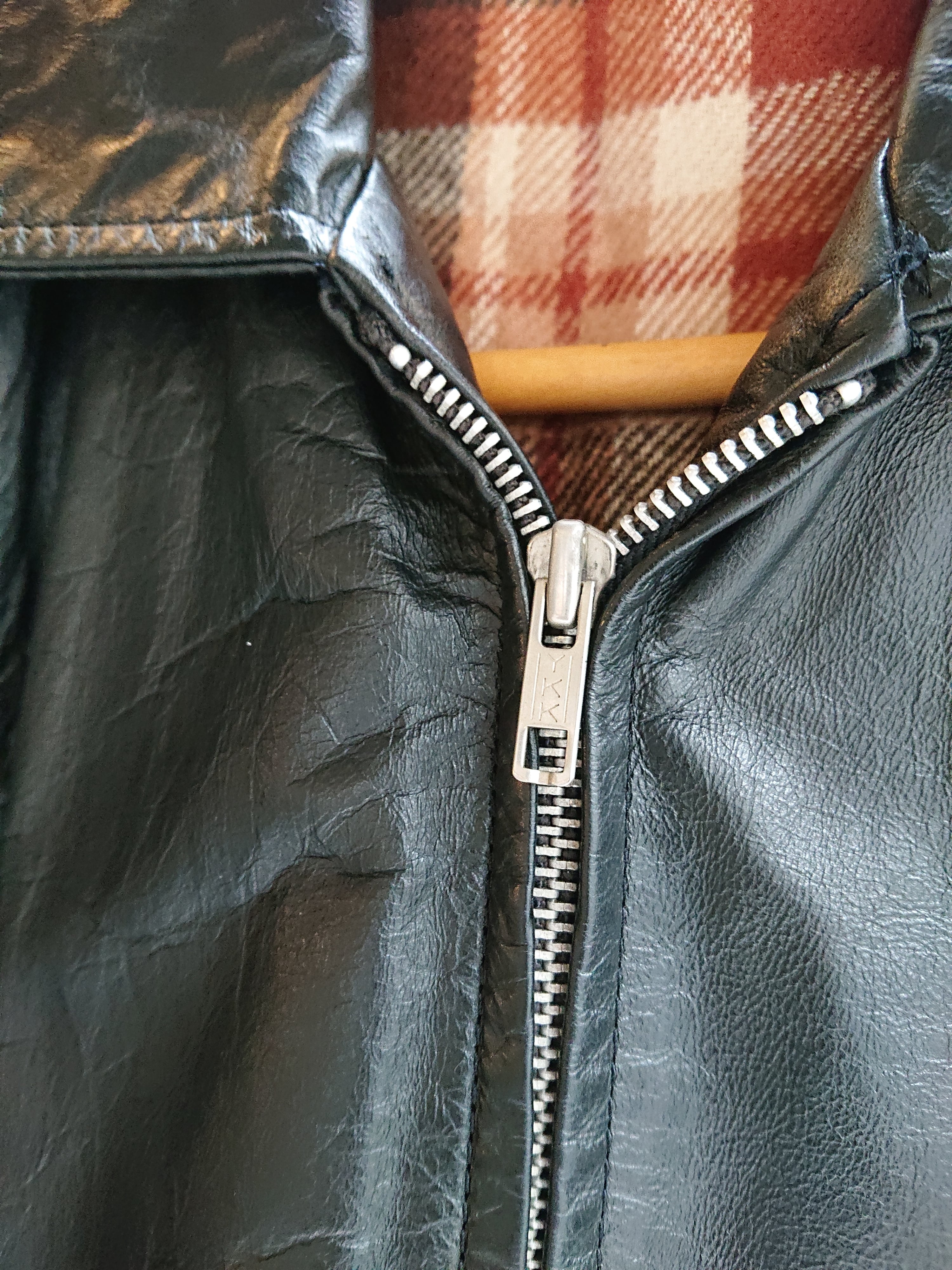 襟付きで袖口と裾がリブ仕様。80~90年代のレザージャケットには多く見られたデザインの1つかと思います。懐かしさも感じるレザージャケット。裏地はネル素材になります。着用感あり。致命的な傷等はありません。