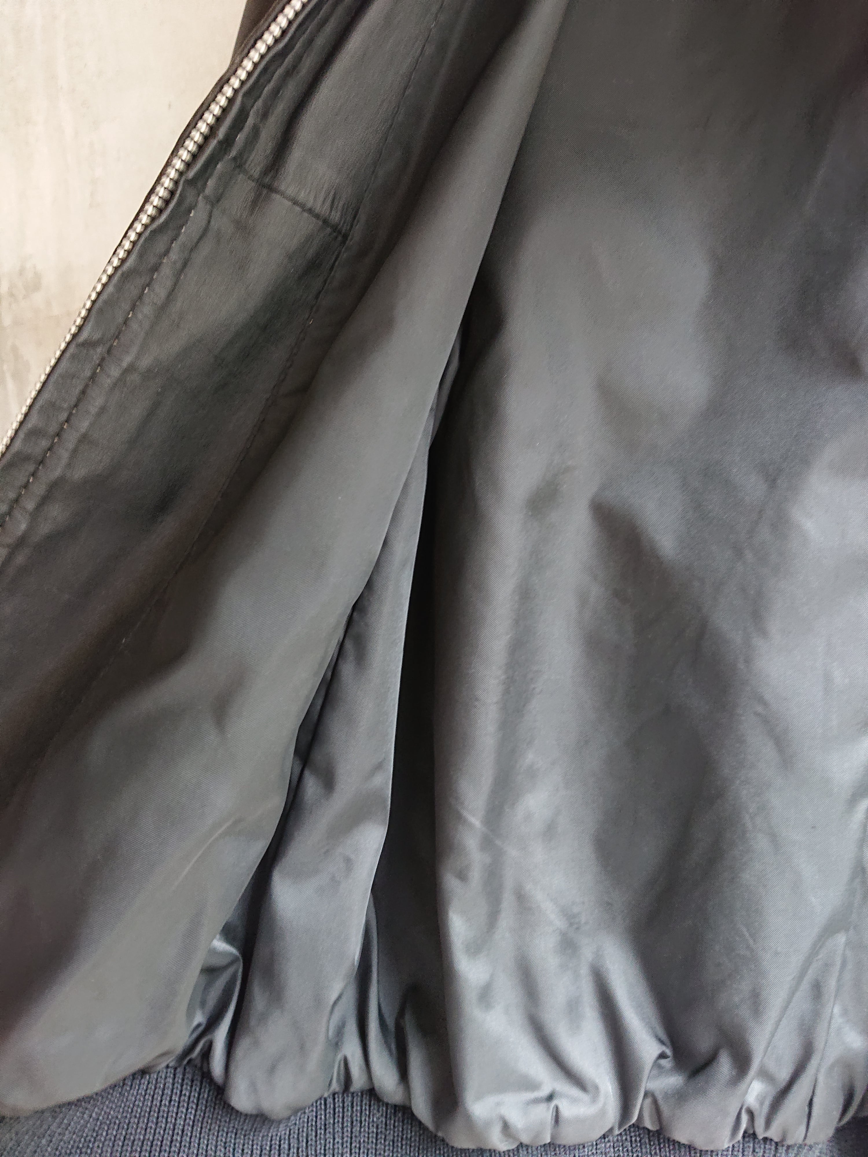 襟付きで袖口と裾がリブ仕様。80~90年代のレザージャケットには多く見られたデザインの1つかと思います。懐かしさも感じるレザージャケット。着用感ありますが全体的にコンディション良い一着。