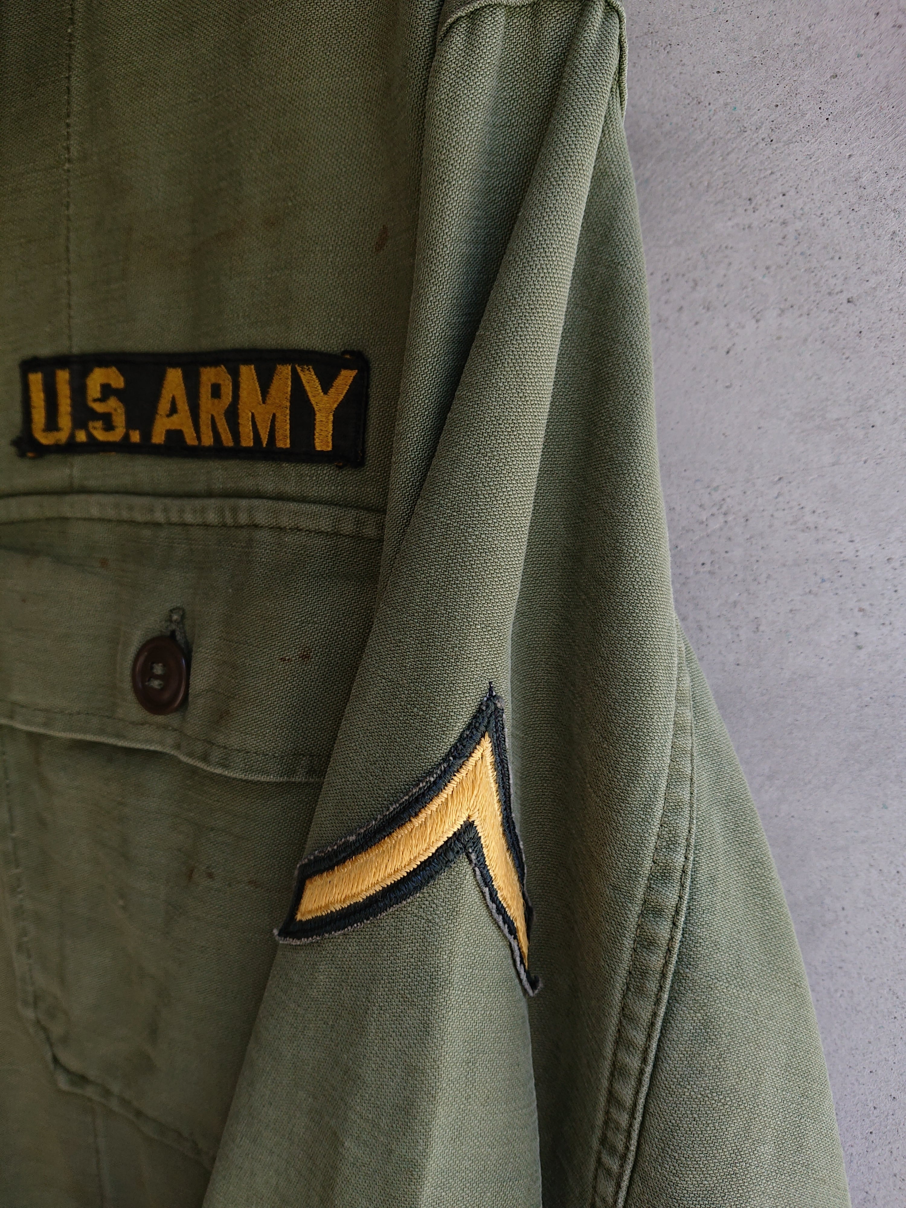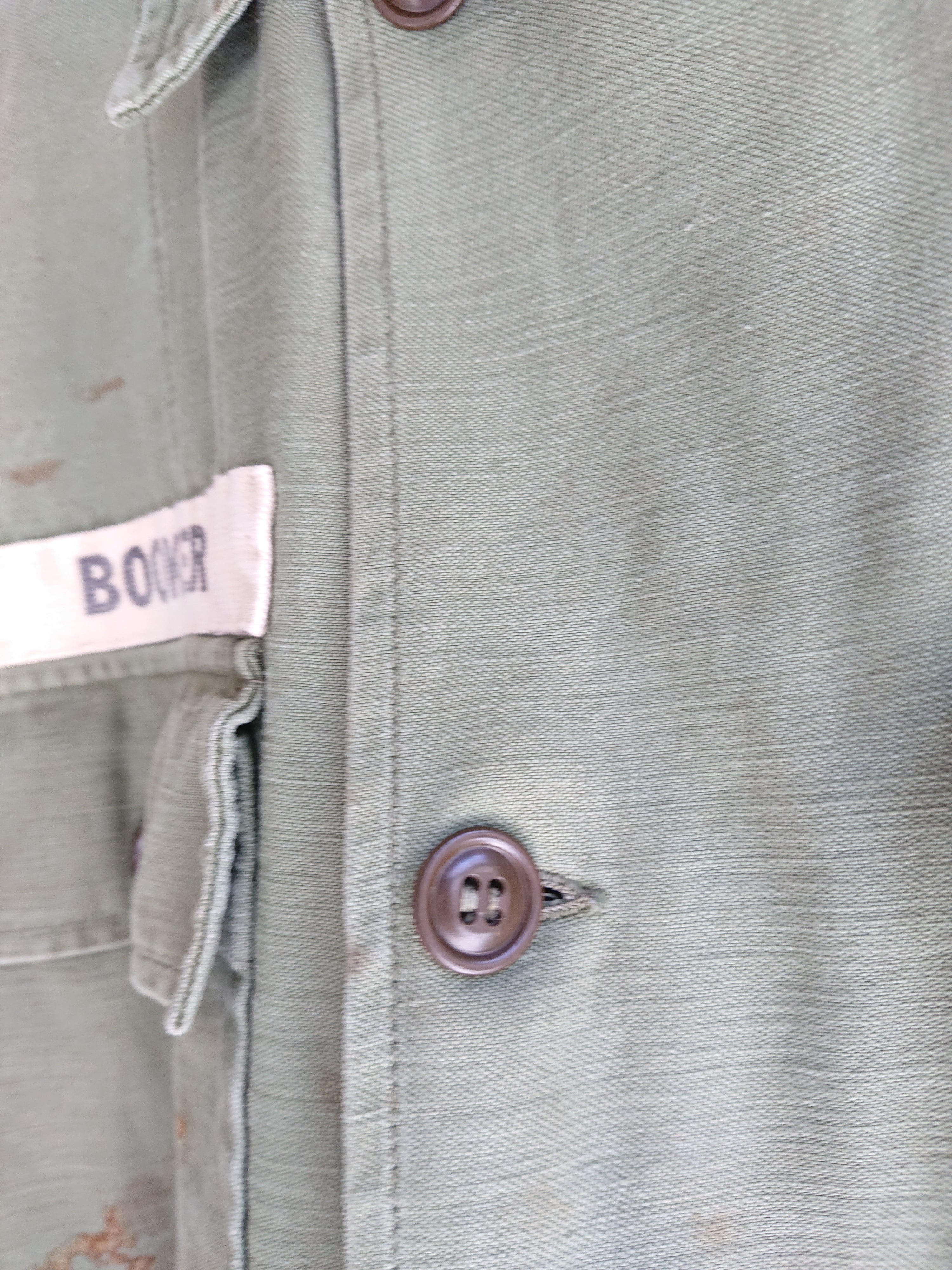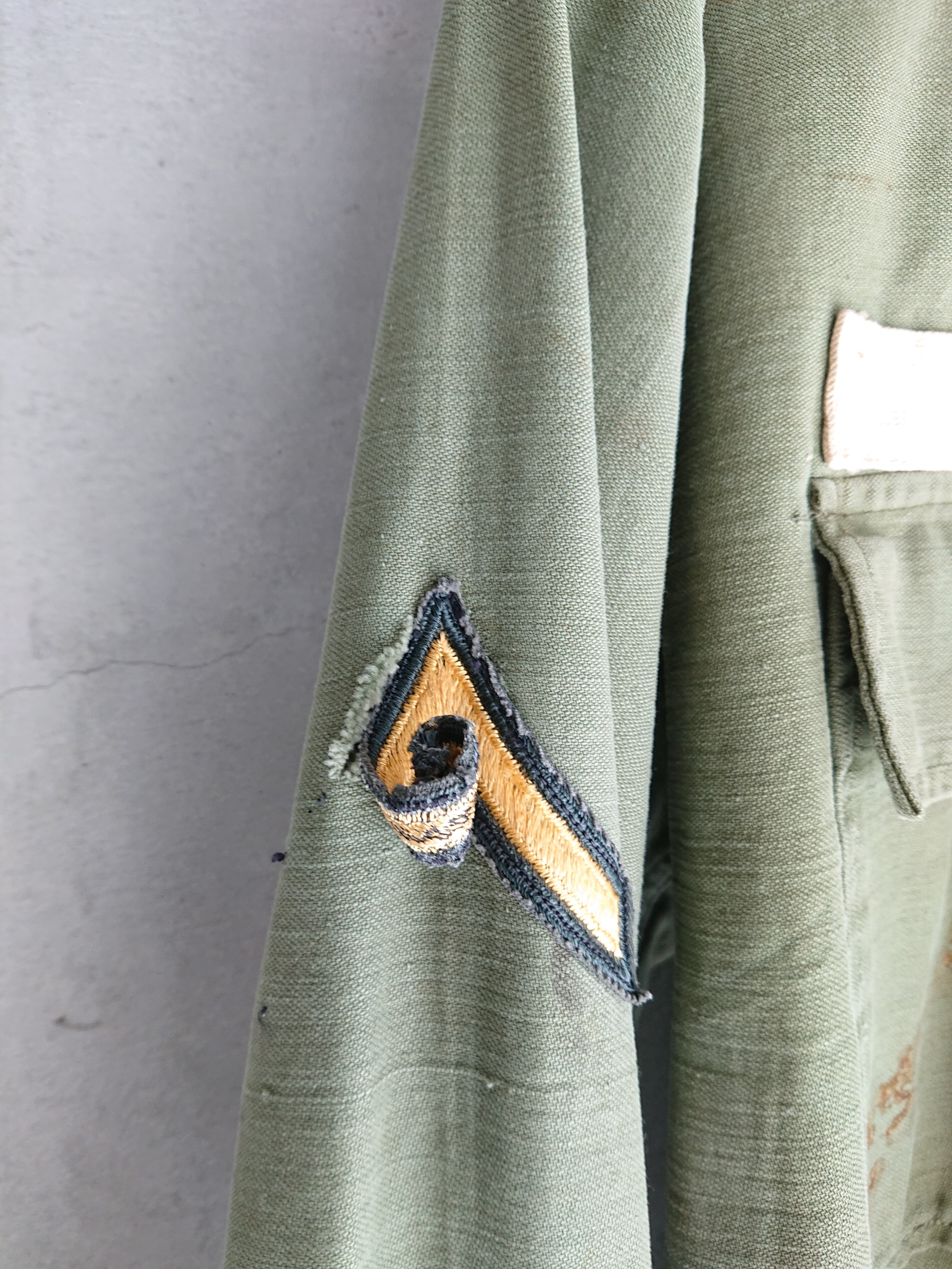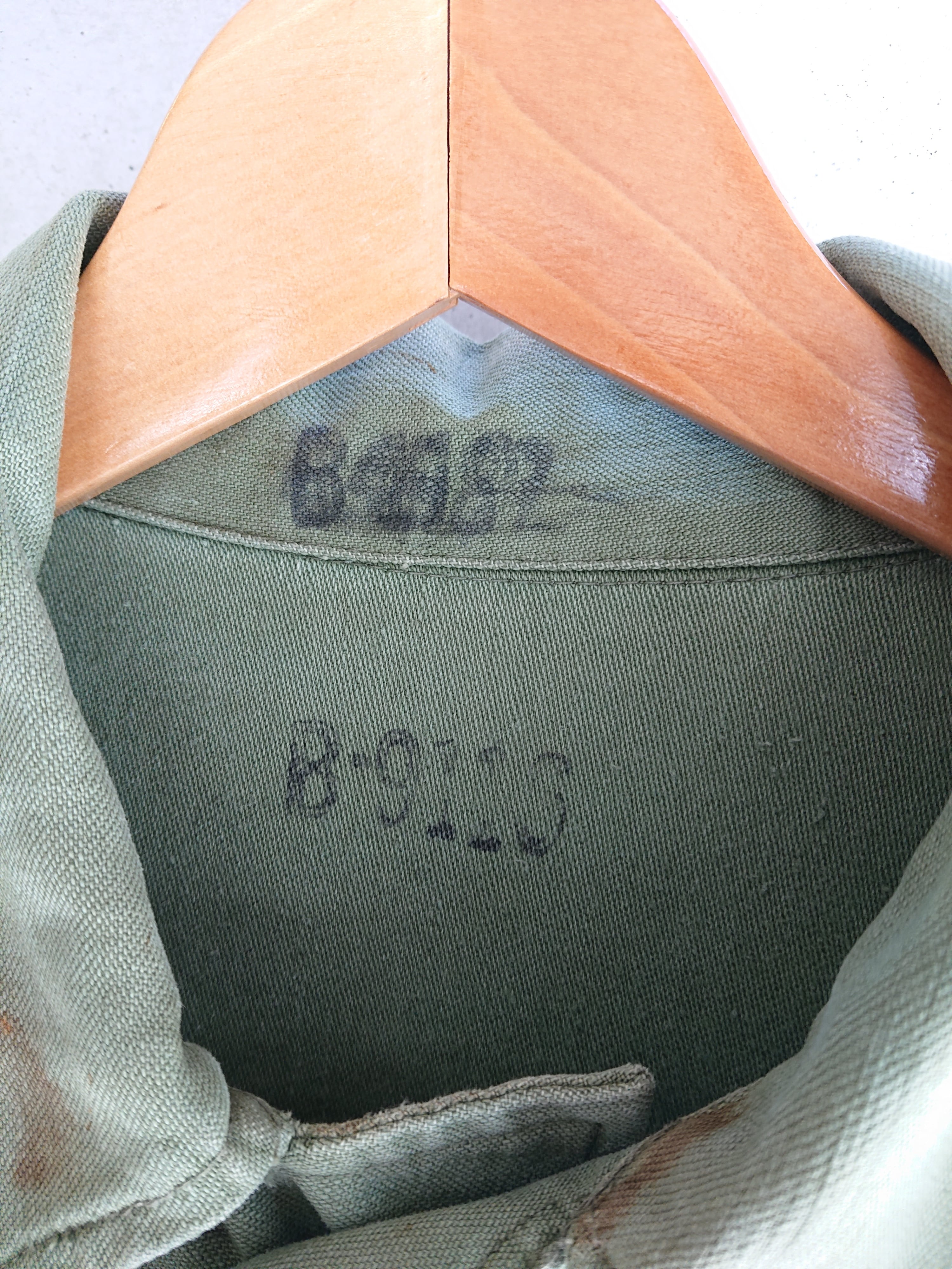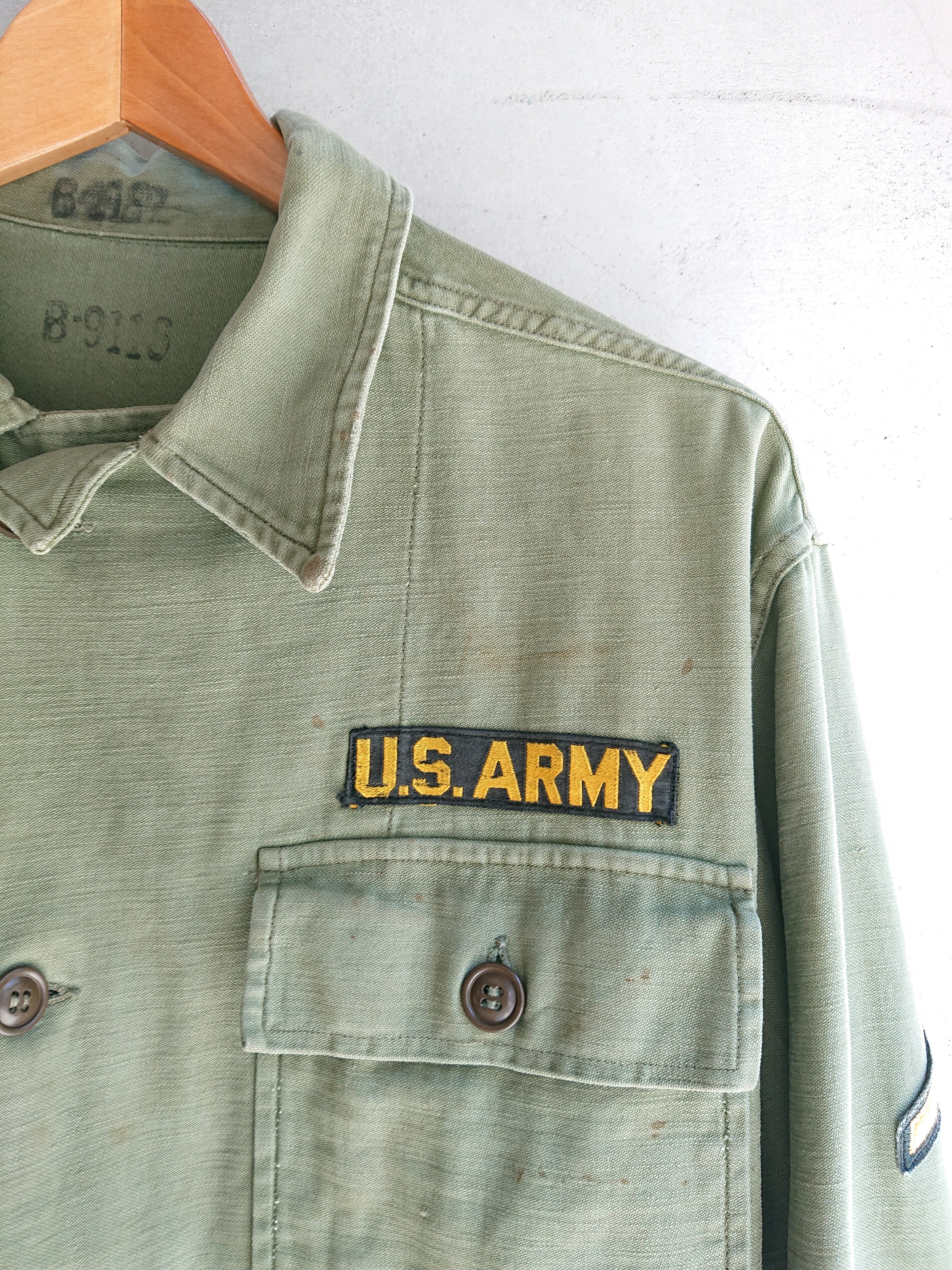 1960年代のUS ARMYユーティリティシャツになります。筒袖でボックスシルエット。コットン素材でジャケット類と違って年間通して活躍の場は多いと思います。全体的に色褪せし、所々の汚れもこのシャツのもつ雰囲気。男前な一着です。