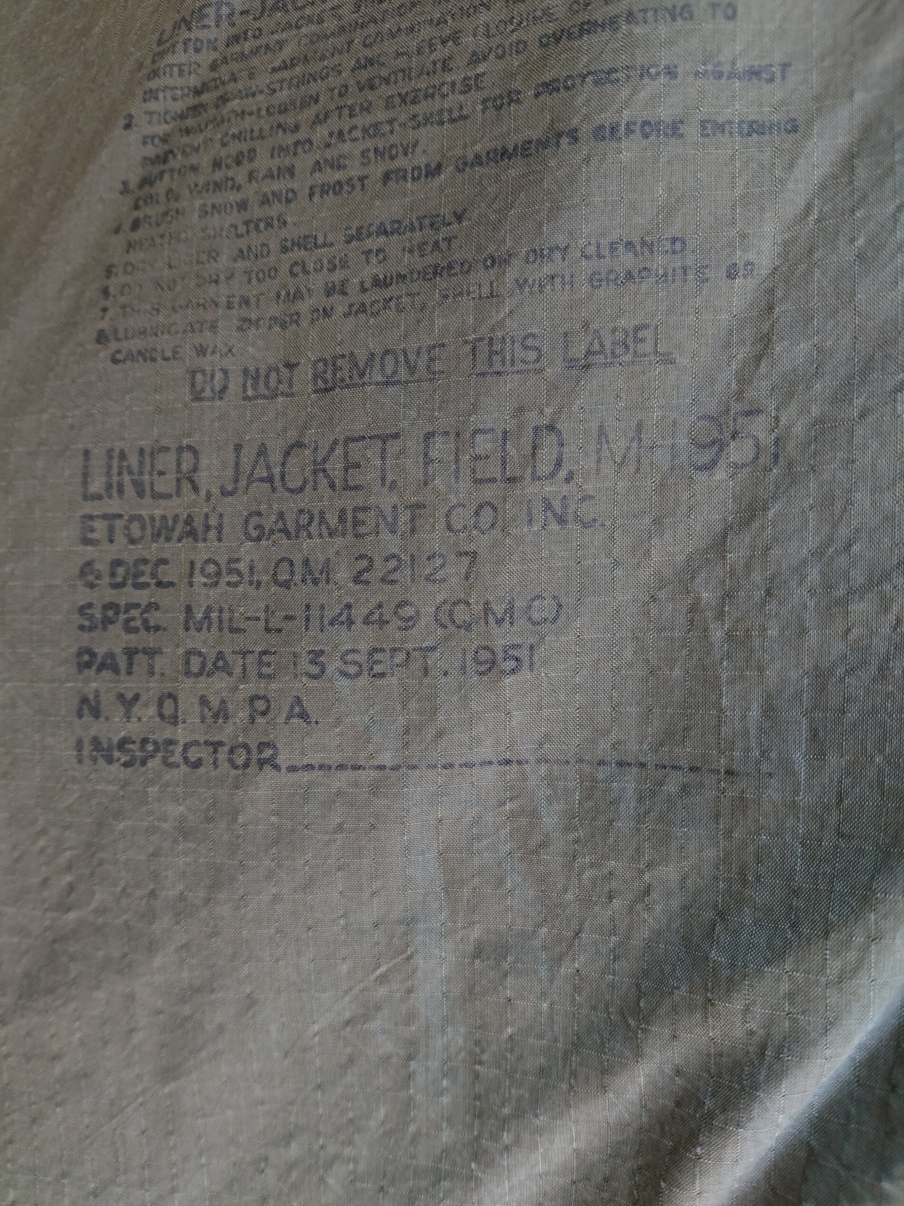 アメリカ軍のM-1951フィールドジャケットのパイルライナーになります。M-51PARKAのライナーではないのでパーカーライナーと違い着丈は短め。