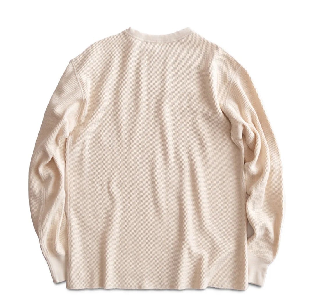 ミリタリー由来の機能性を現代的に仕上げた、サーマルシャツ。空気をたっぷり含むハニカム構造の肉厚サーマル生地が、高い保温性とタフな着心地を実現。縫い目はすべてフラットシーマーで仕上げ、肌当たりも快適です。インナーとしても、一枚で着ても様になる、長く使える一着です。