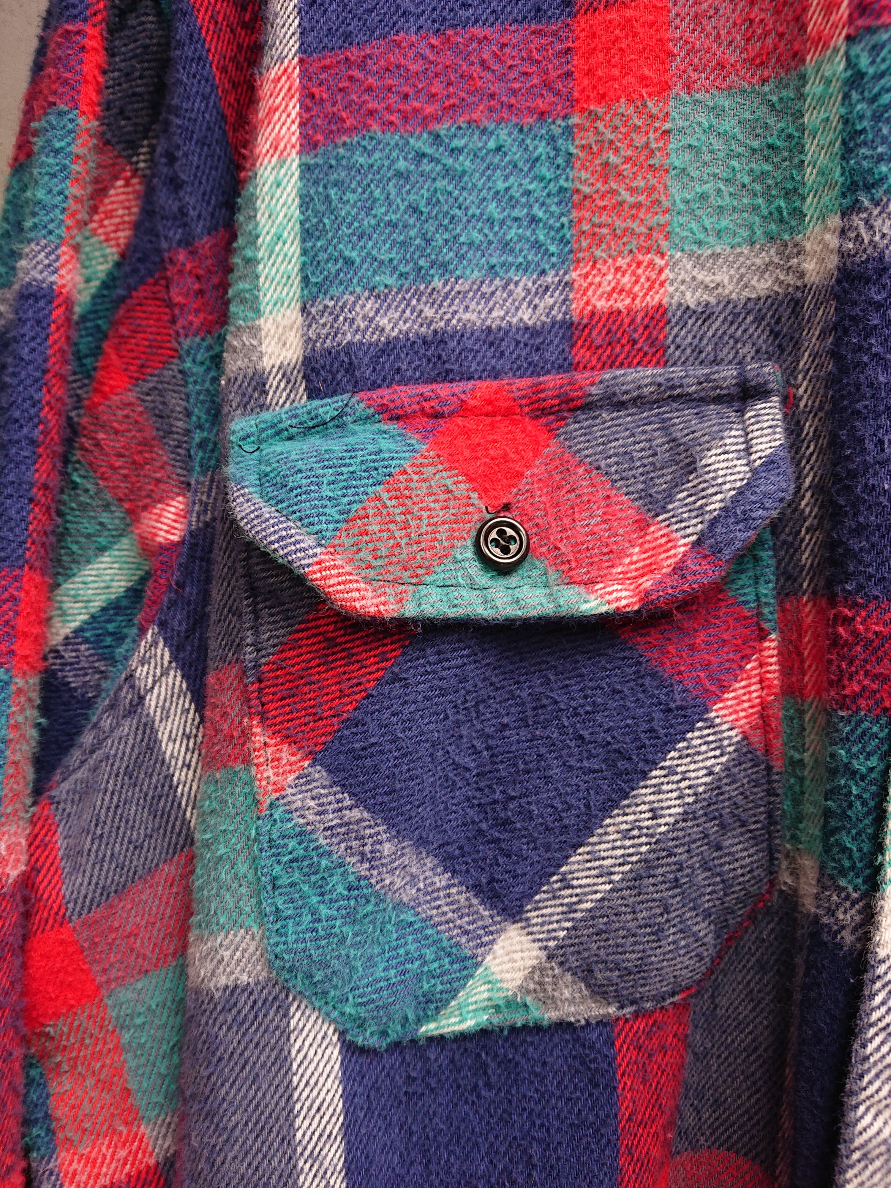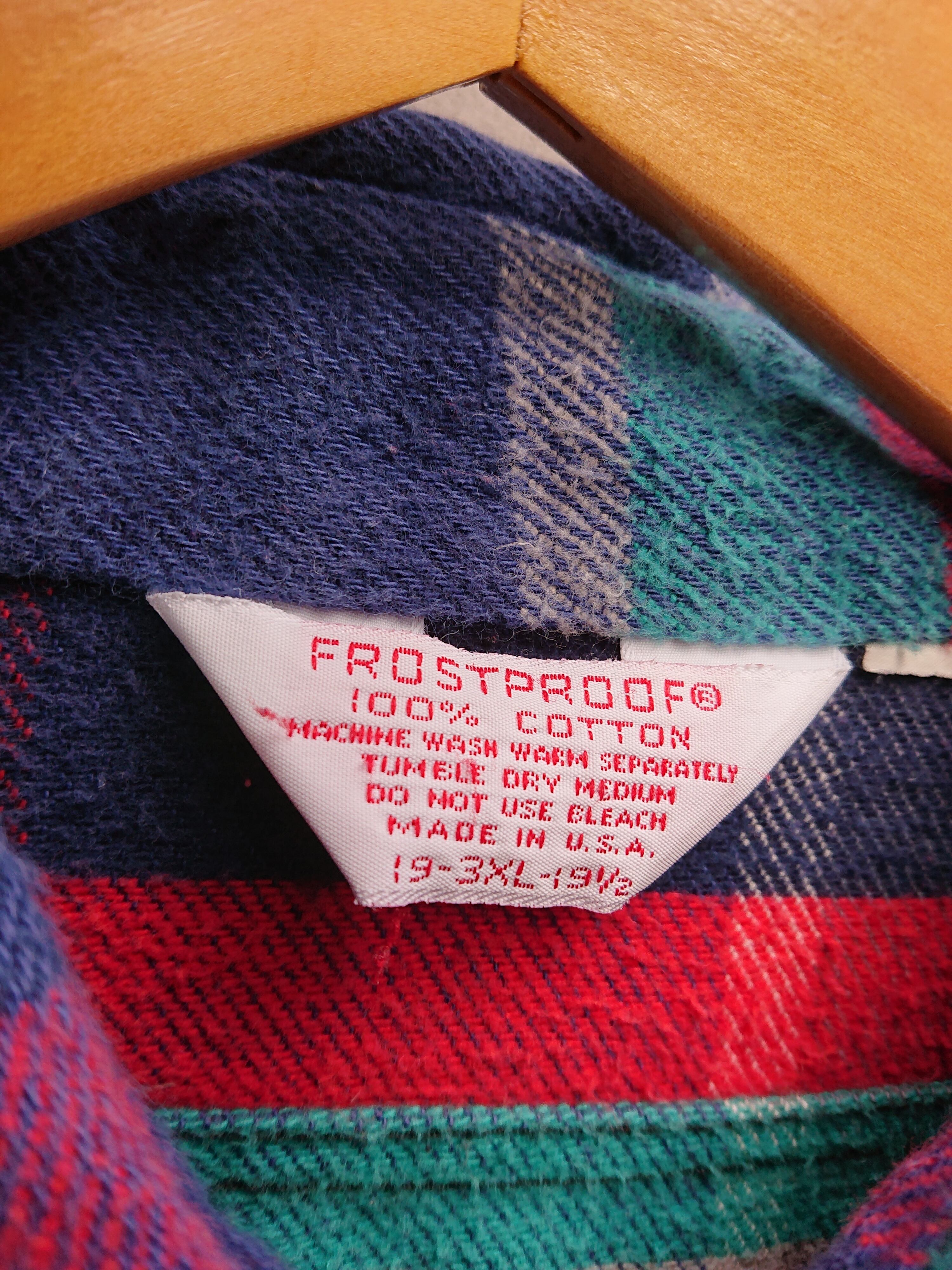 1980年代 FROSTPROOFのヘビーネルになります。チェックの配色も良く、3XLのビッグサイズなのは魅力。ざっくり、ゆるく羽織るのに丁度良いかなと。着用感ありますが致命的な傷等はありません。MADE IN USA。