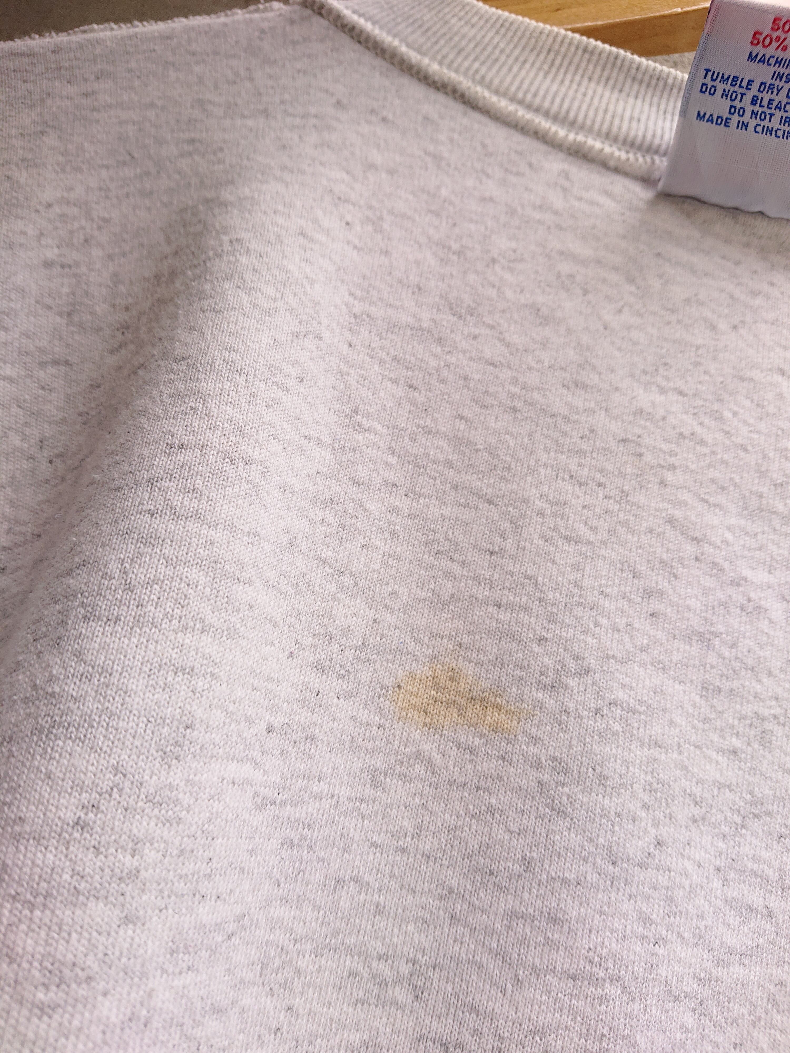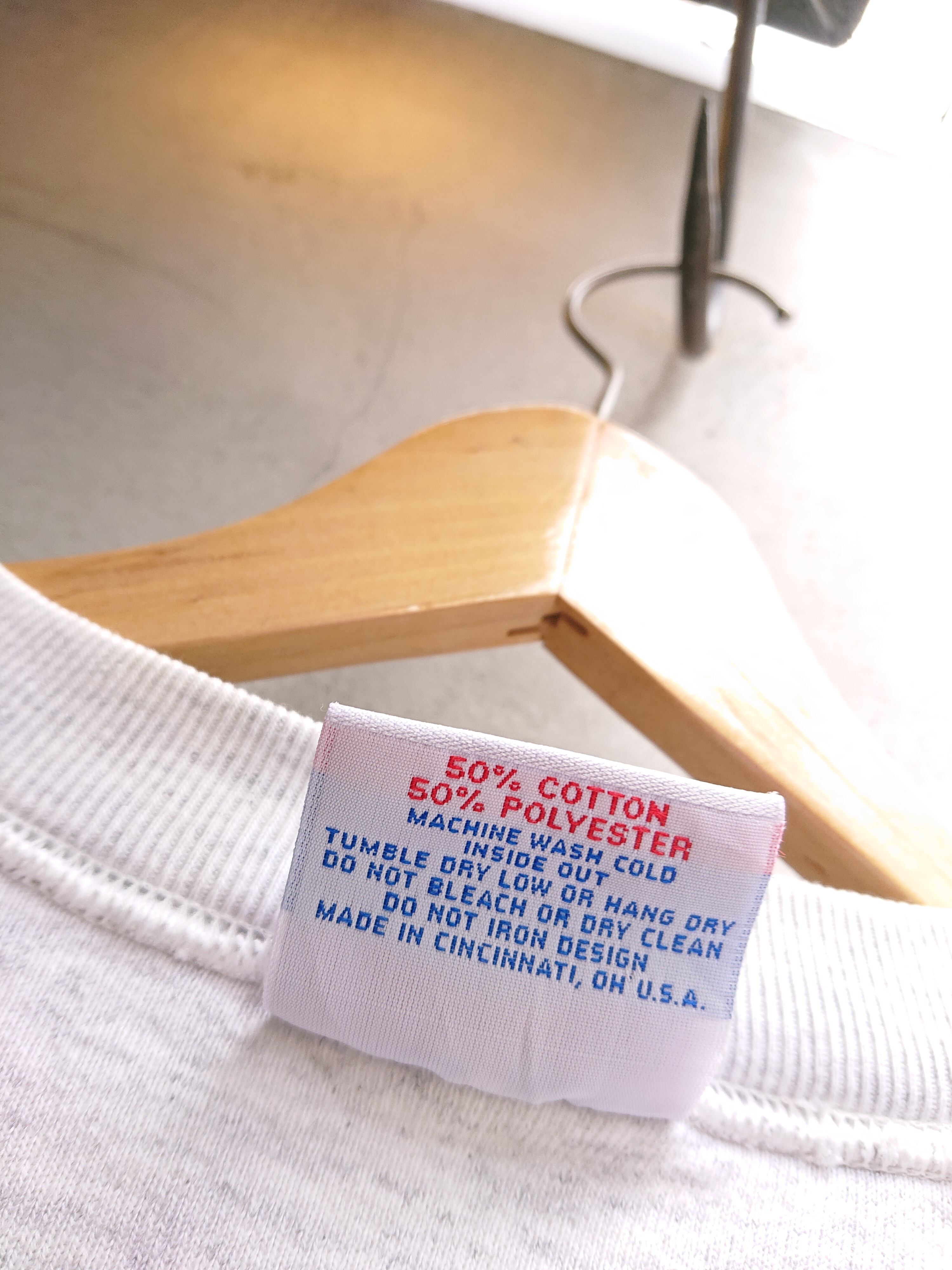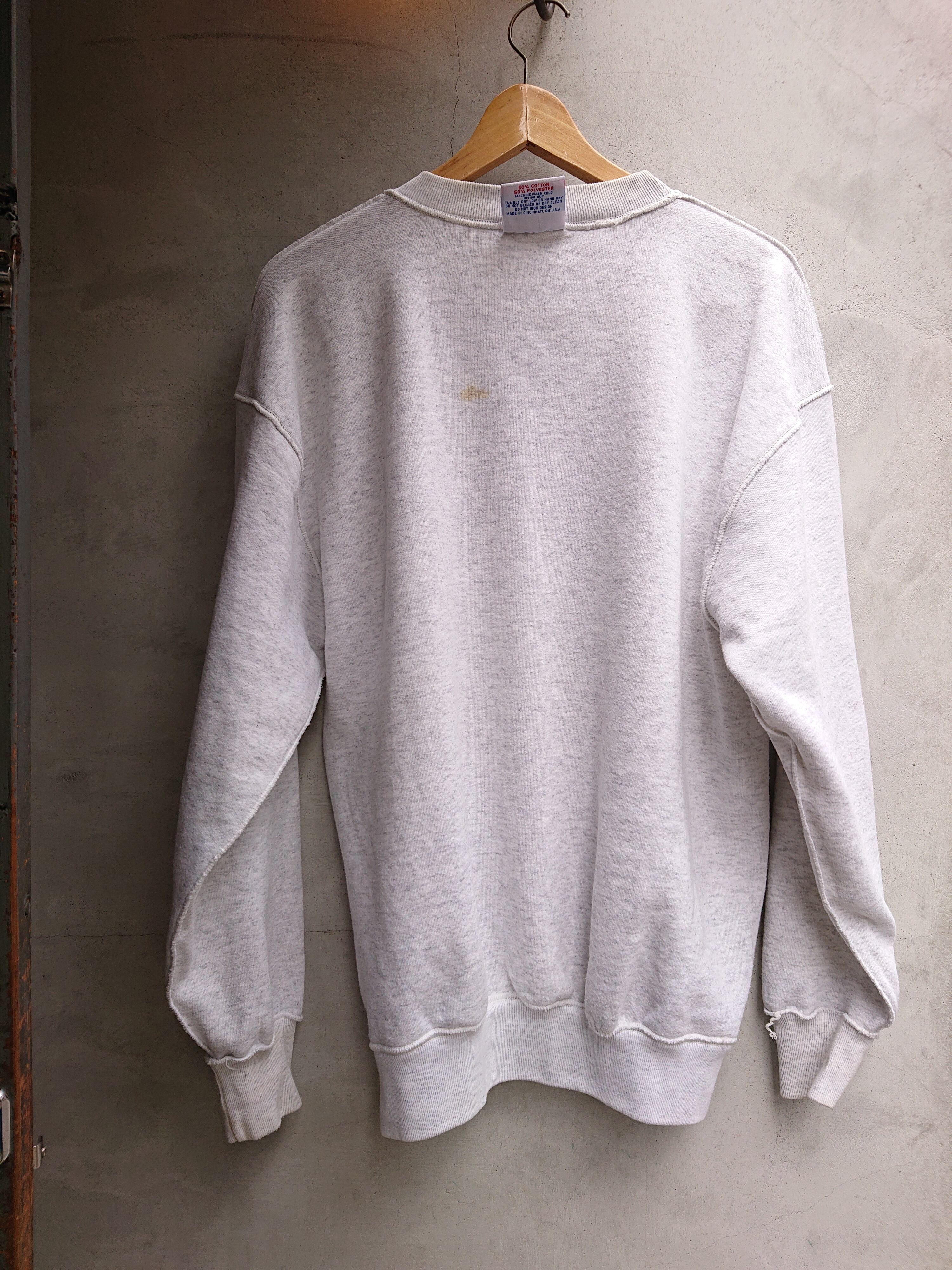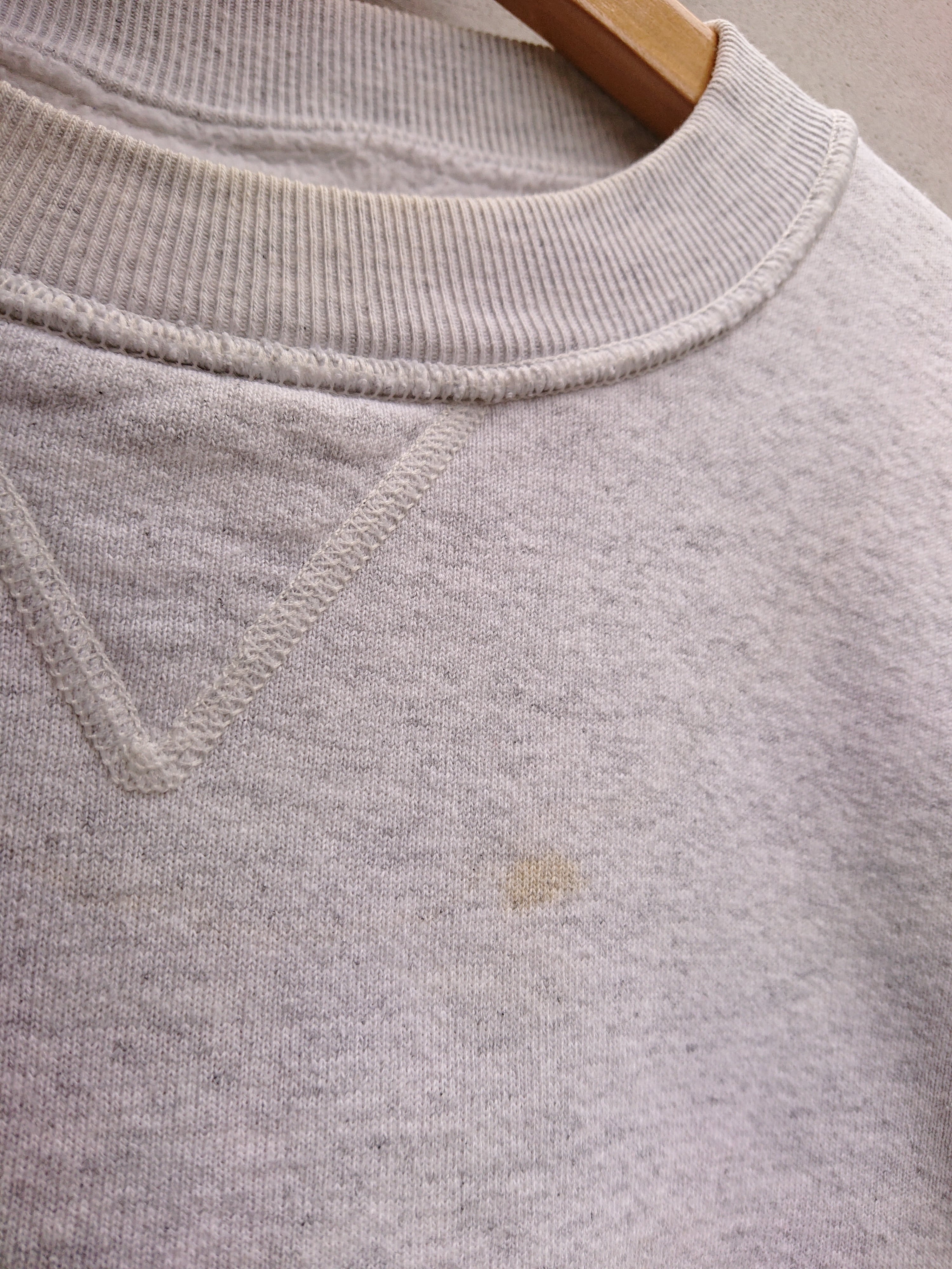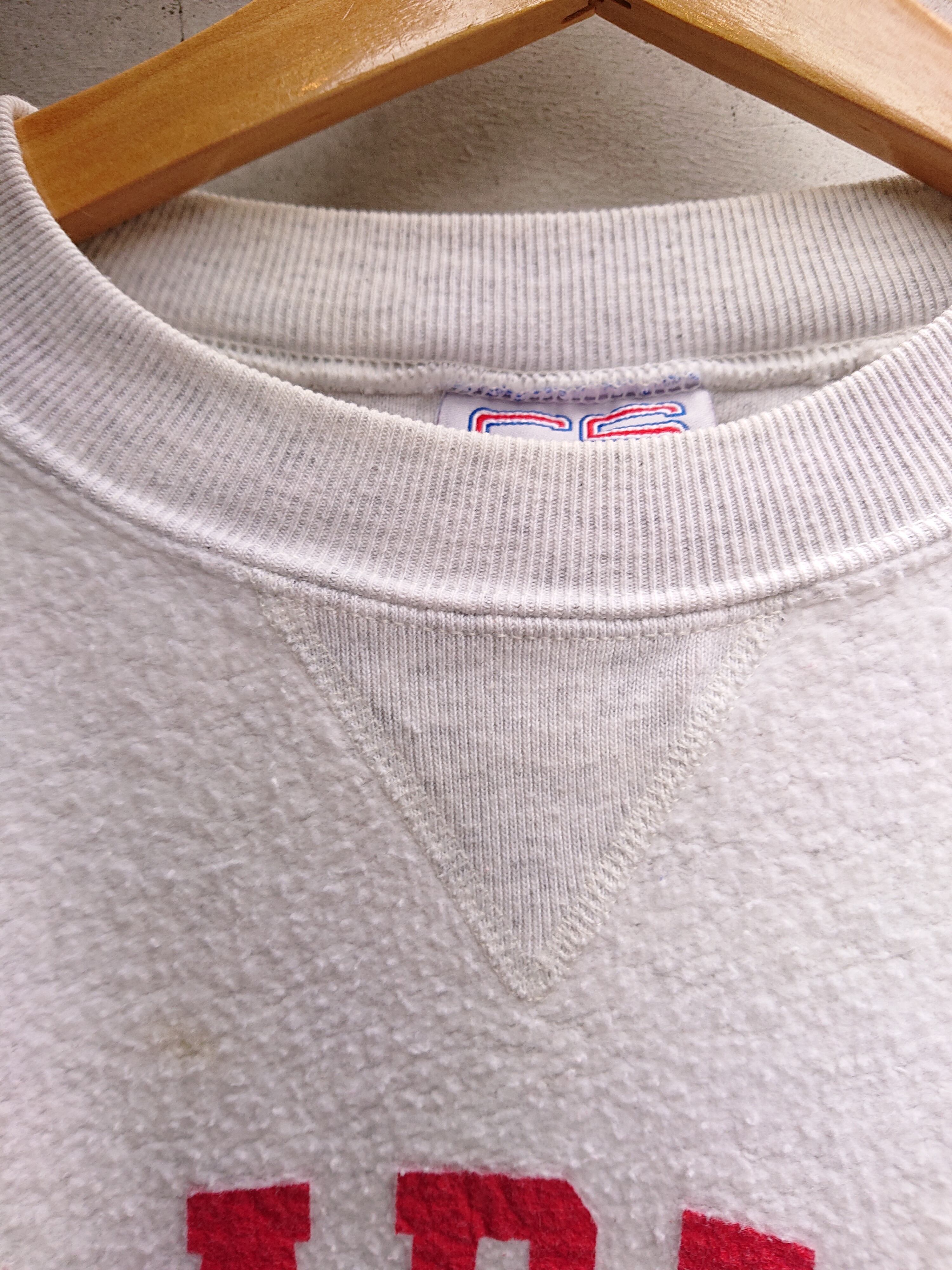 1990年代 CRABLE SPORTS WEAR のスウェットシャツで起毛面にプリントされてるモデルになります。前Vスウェットでフロントは三連プリント。本来リバーシブルではないですが、裏側で着るどグレーの前Vスウェットとして着てもらうのも可能。多少の汚れはありますが破れ等は無く
