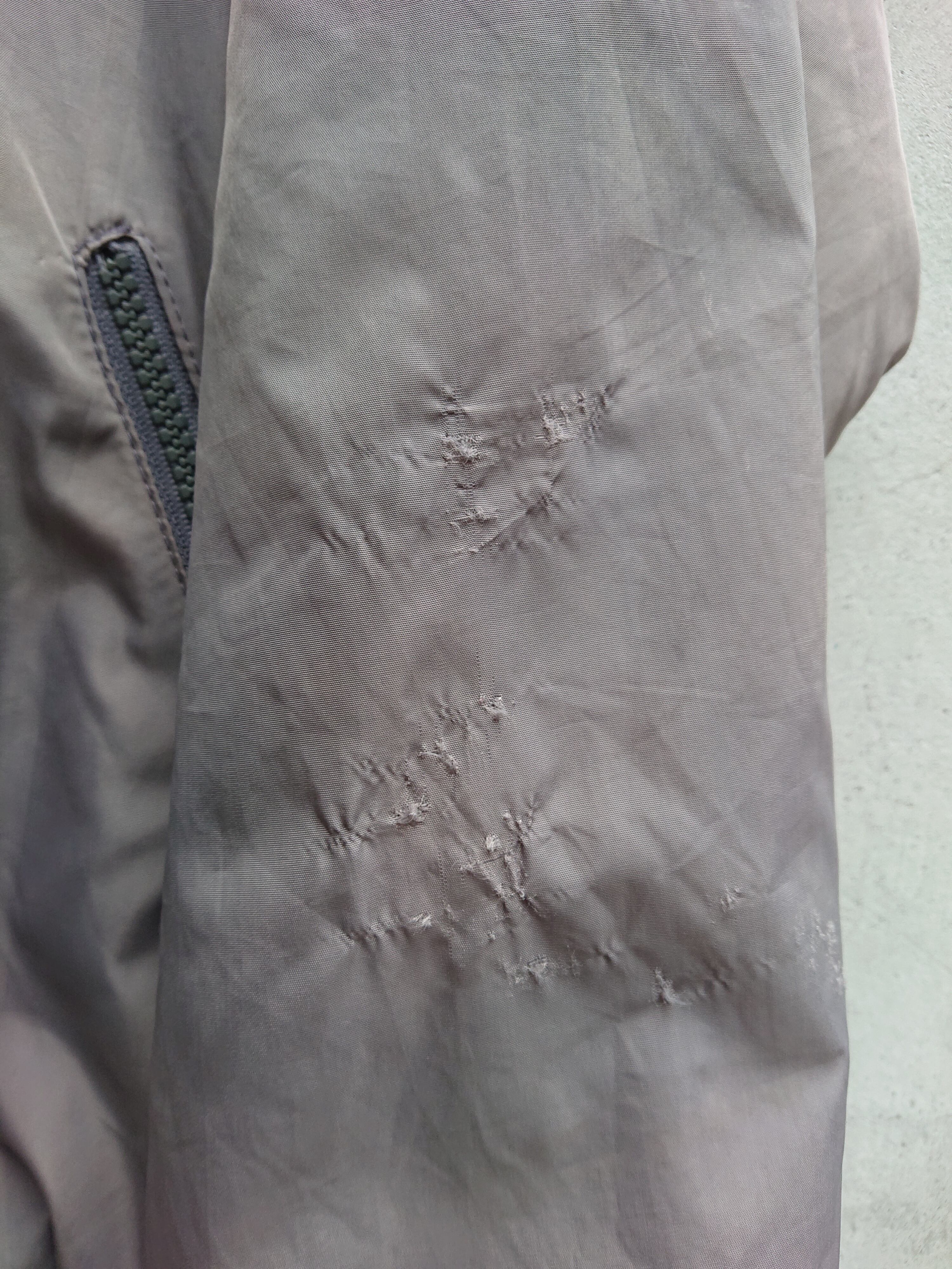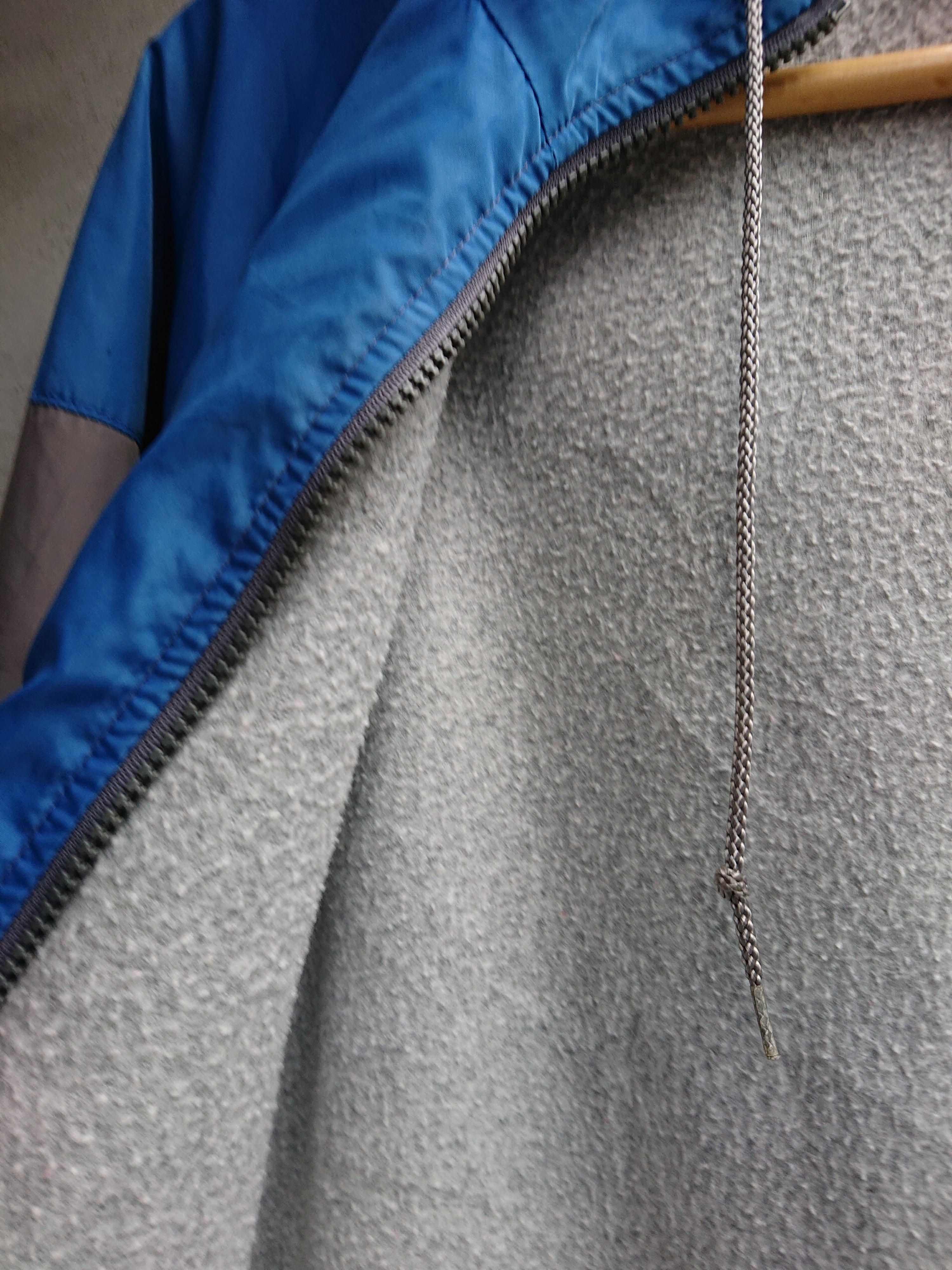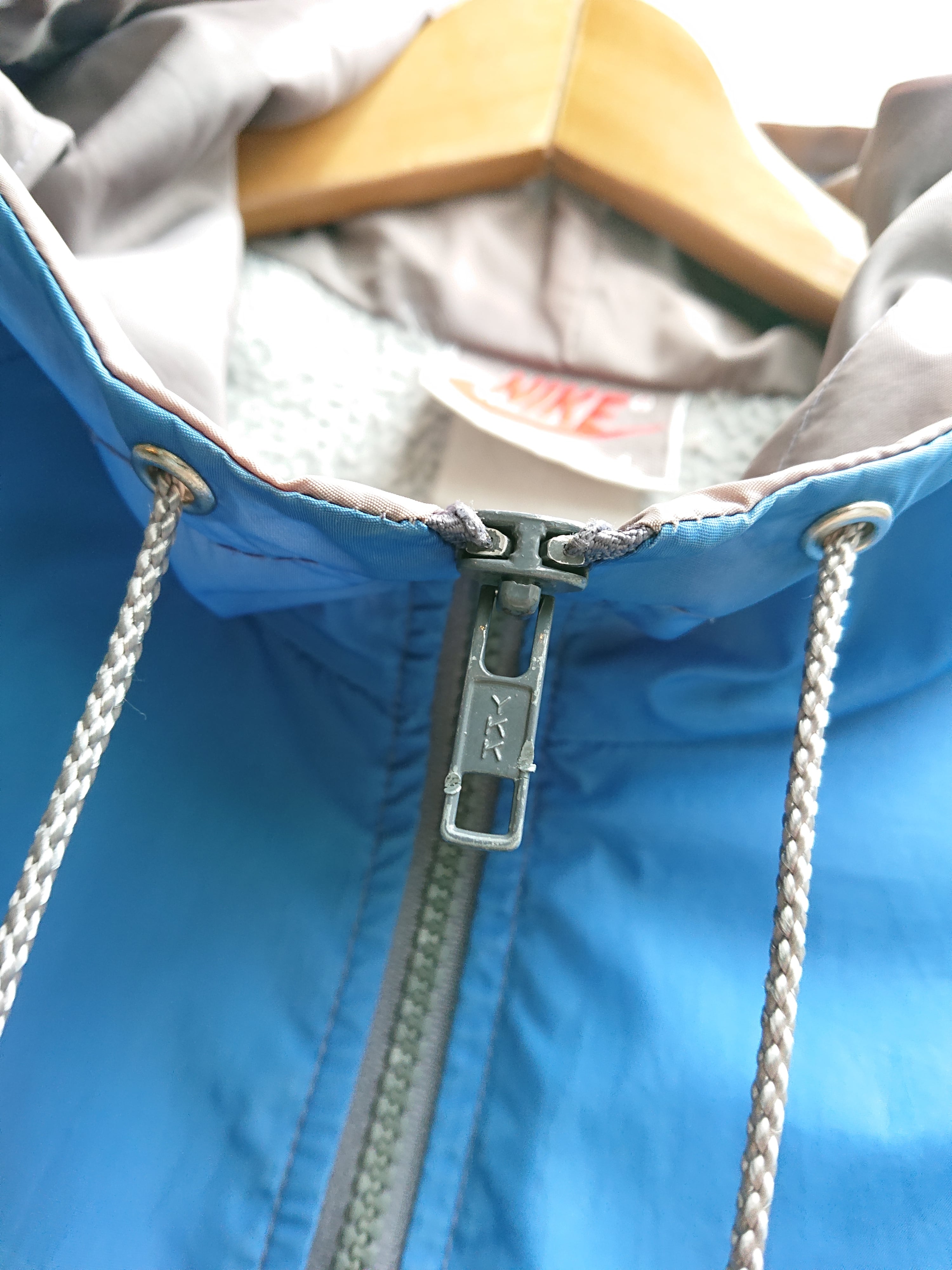 フード付きでブルーとグレーの切り替え。ヴィンテージ ナイキらしい配色。裏地付きで袖口と裾はリブ仕様。リブの色褪せと穴はあいてないですが左腕にベール傷みたいなのがあります。