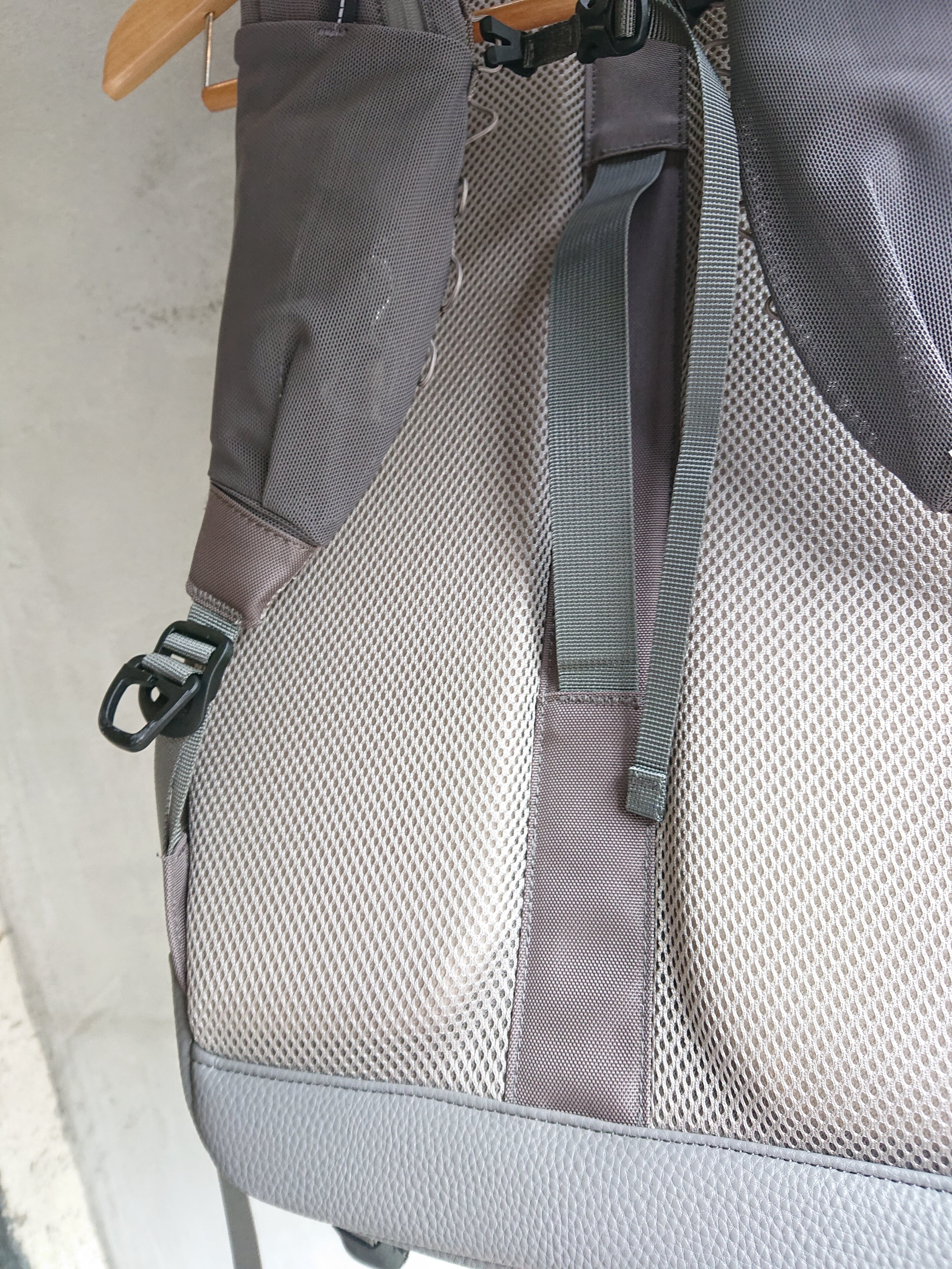 実際の旅の中で気づいたのは、バッグ底部の角が背負う際に身体に当たるという細かな不快感。その小さな違和感を解消するために、ボトムの角をあえて削る設計に変更しました。これにより、身体により自然にフィットし、長時間背負ってもストレスを感じにくくなっています。