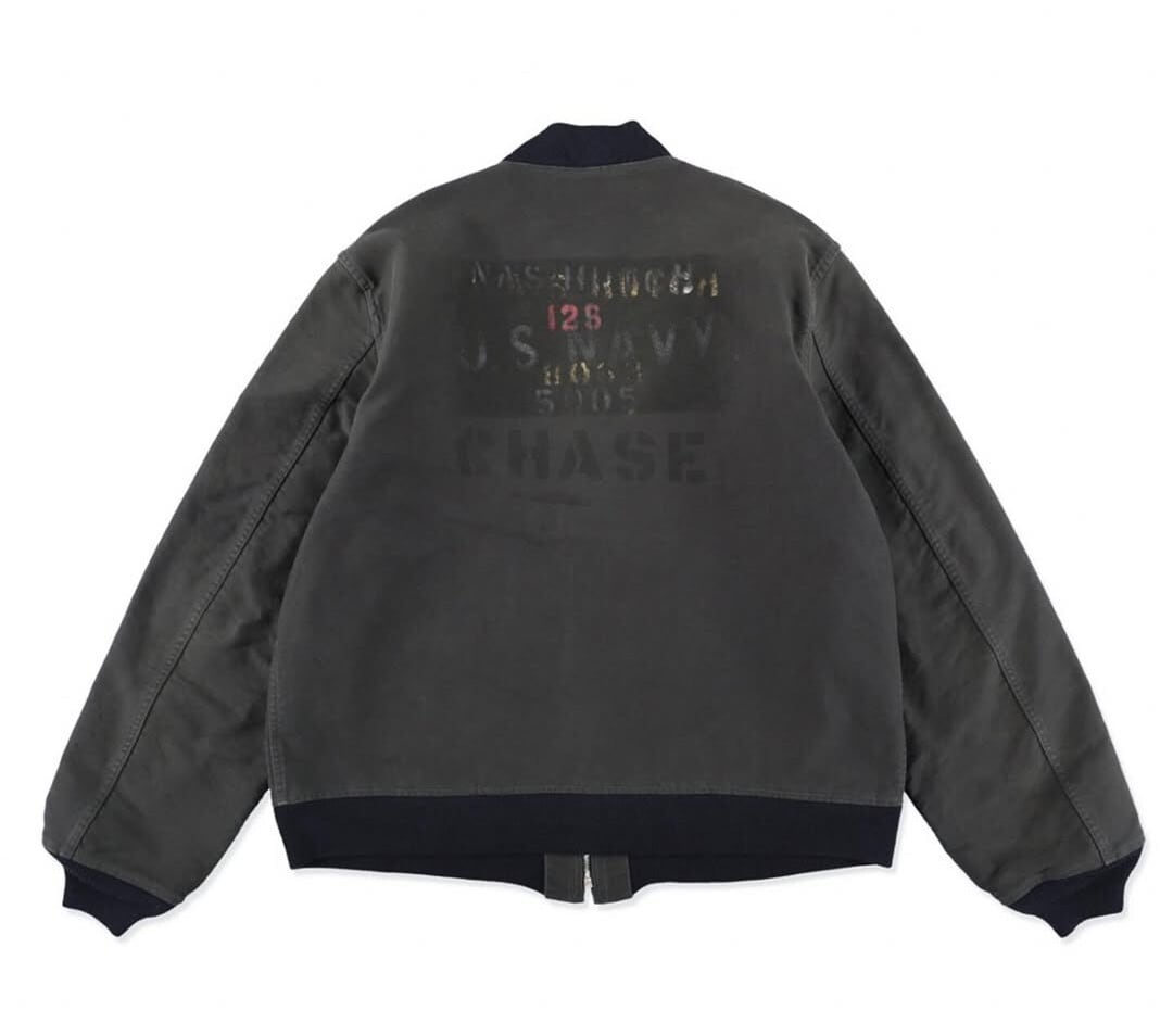 40年代にUSNで採用されたアルパカボアライニングのデッキベストをデザインの出発点に、BOW WOW は“そこで終わらせない”。当時、日本に出向いた兵士が土産のスカジャンから刺繍を切り出し、私物のベストへ縫い付けた――そんな物語を設定し、レーヨン刺繍パーツの艶と糸の経年差、ベスト単体で着倒された汚れ・擦れまでリアルに再現。ミリタリーとスーベニアの記憶が交差する一着は、50年代が生んだ“着るアート”をいまに映す。