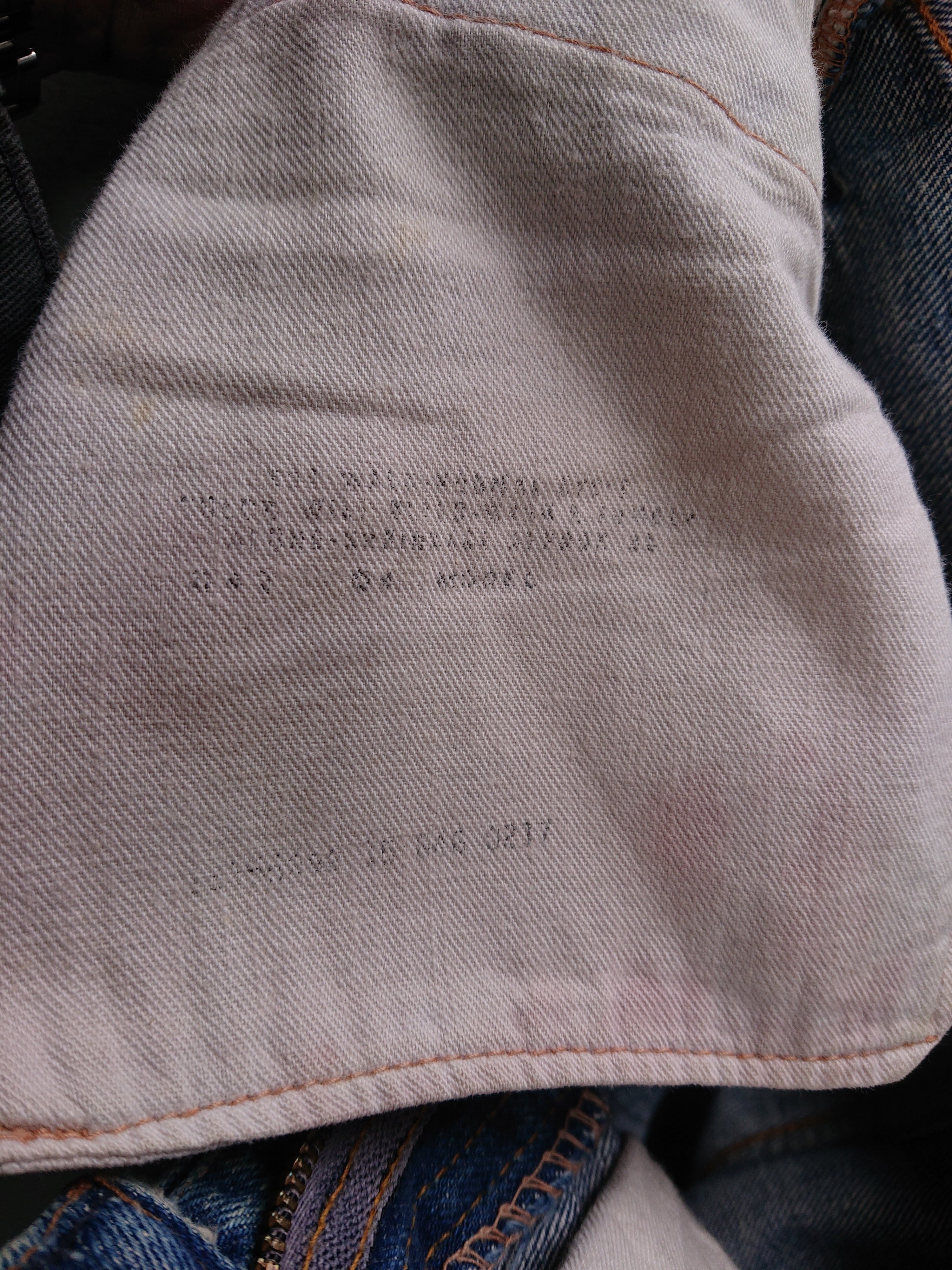 ※ボタン裏刻印 4。内側ポケット裏にスタンプあり。