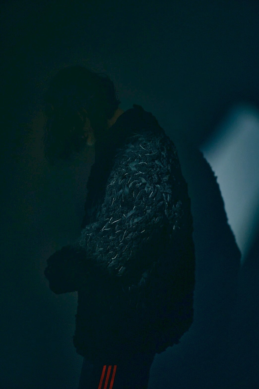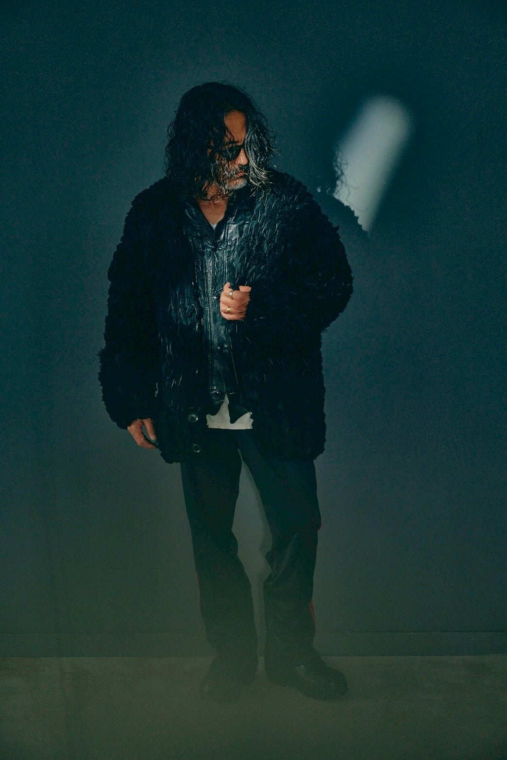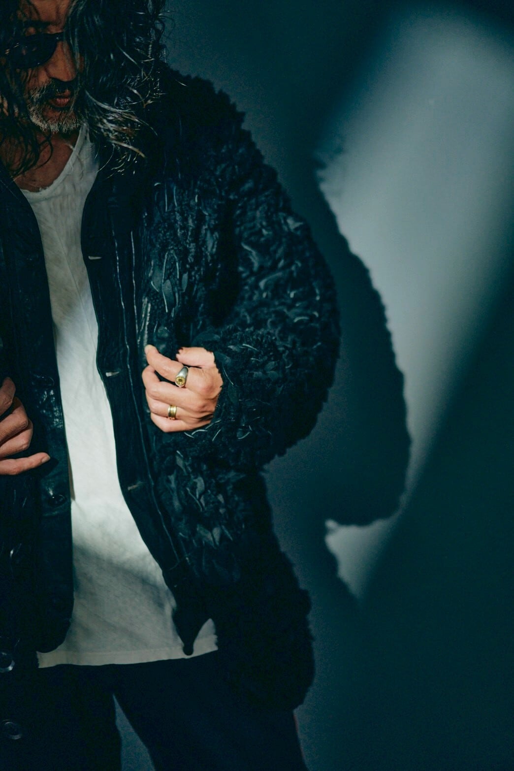 表面(毛の面)と皮面(スウェード面)がランダム且つ、ざっくりと編み込まれた独特の表情がおもしろい、どれも全く同じ物が存在しない完全なる一点物になります。