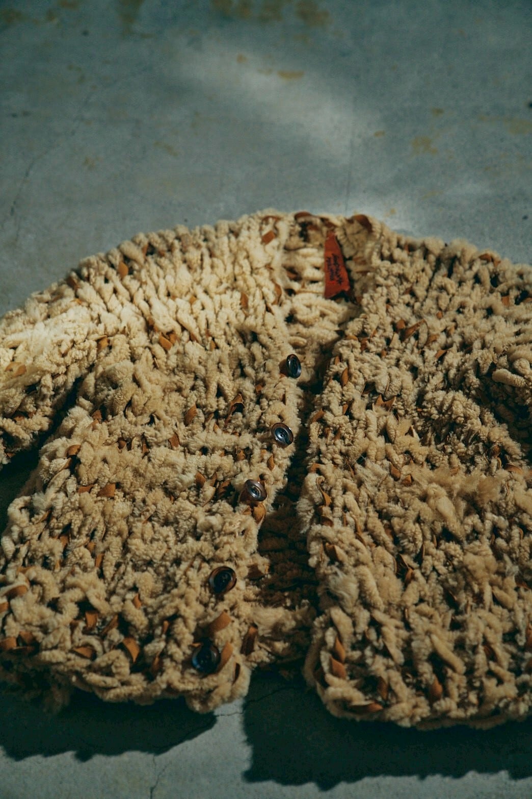 ムートンのアイテムを生産した際に出る端切れ(はぎれ)を無駄にする事なく活用出来ないかという考えのもと誕生したムートンカーディガン"チャーリー"。