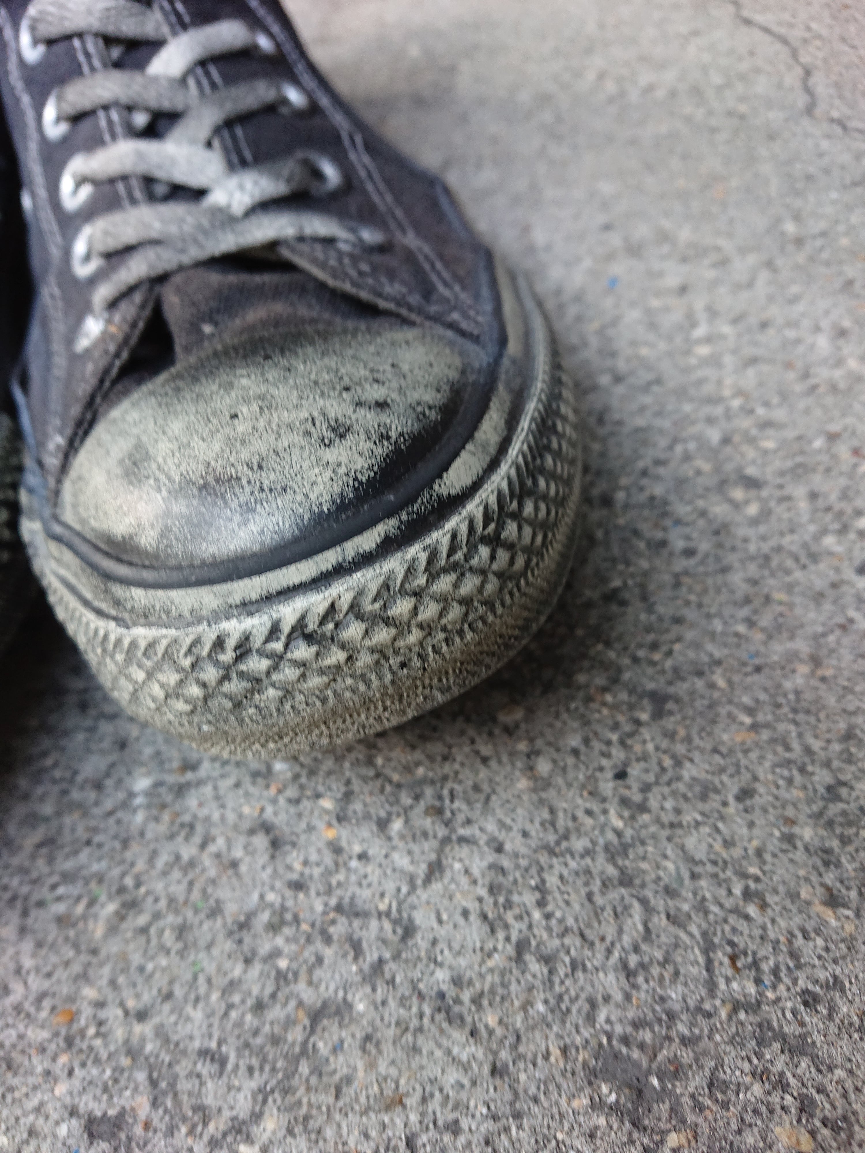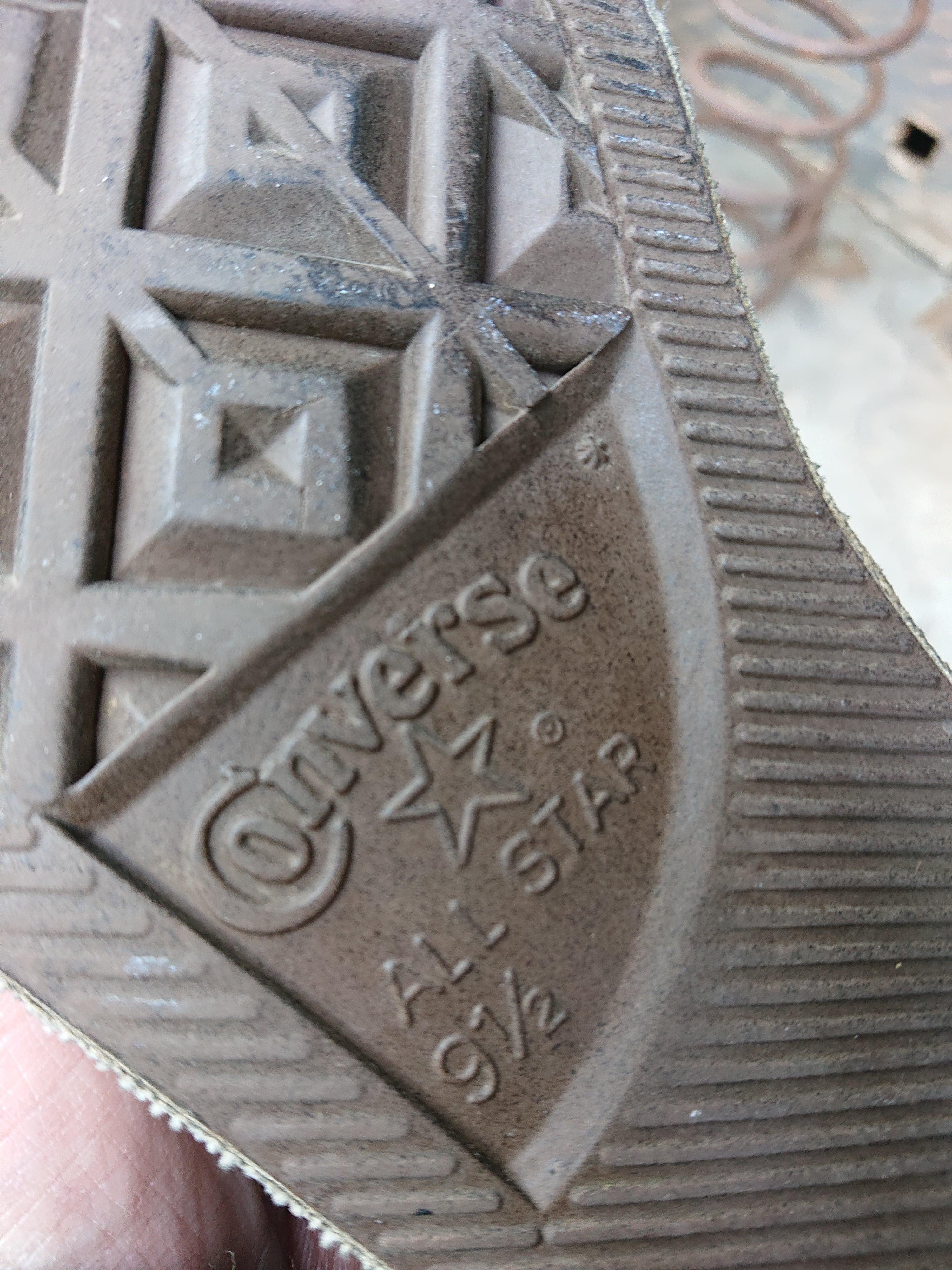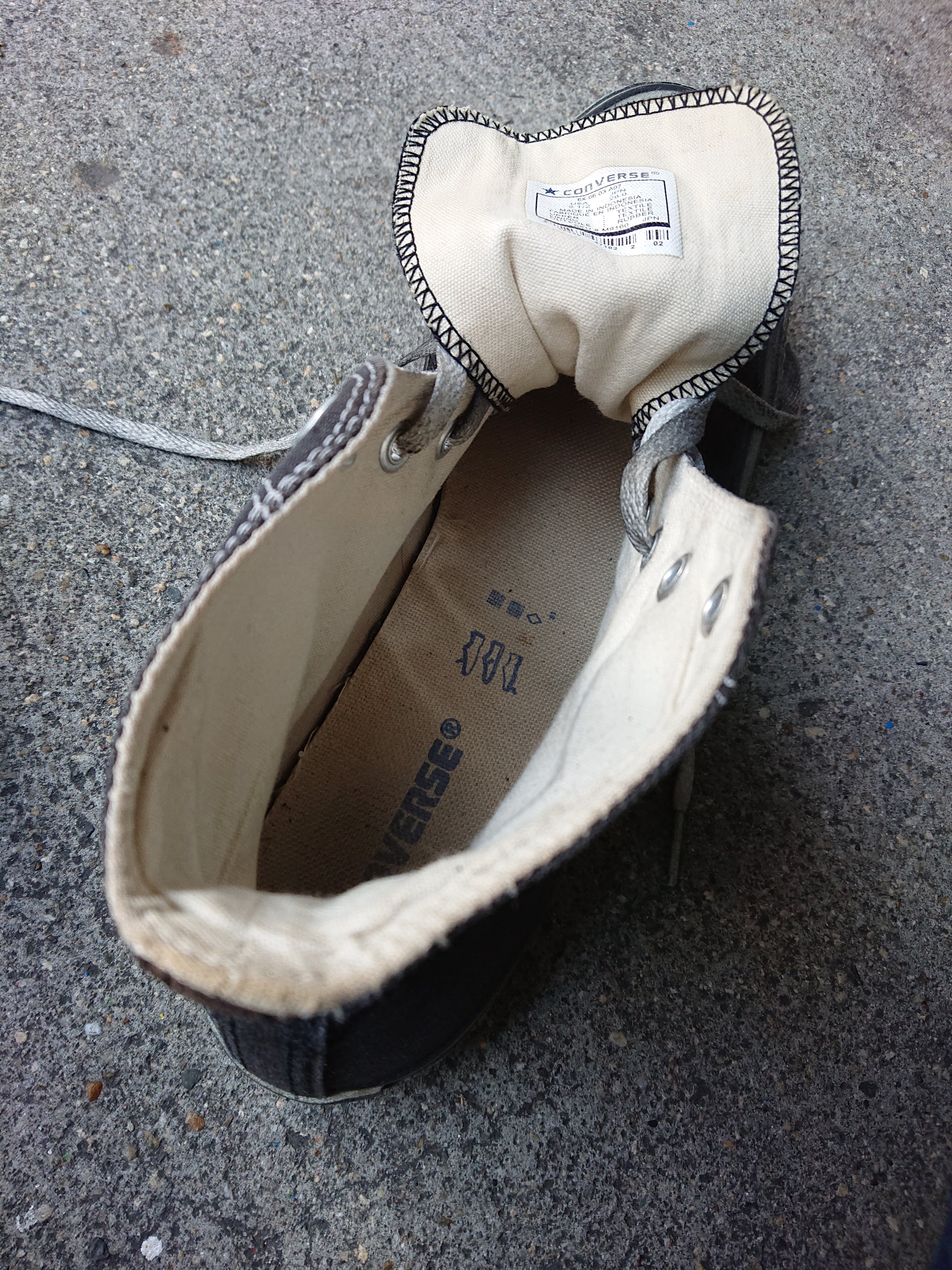 手作業でエイジング加工されたCONVERSE ALLSTAR。通常のブラックのオールスターとは一味違う雰囲気。着用されており、使用感はありますがソールの減りもまだ少なくガンガン履いていただける一足です。インドネシア製。