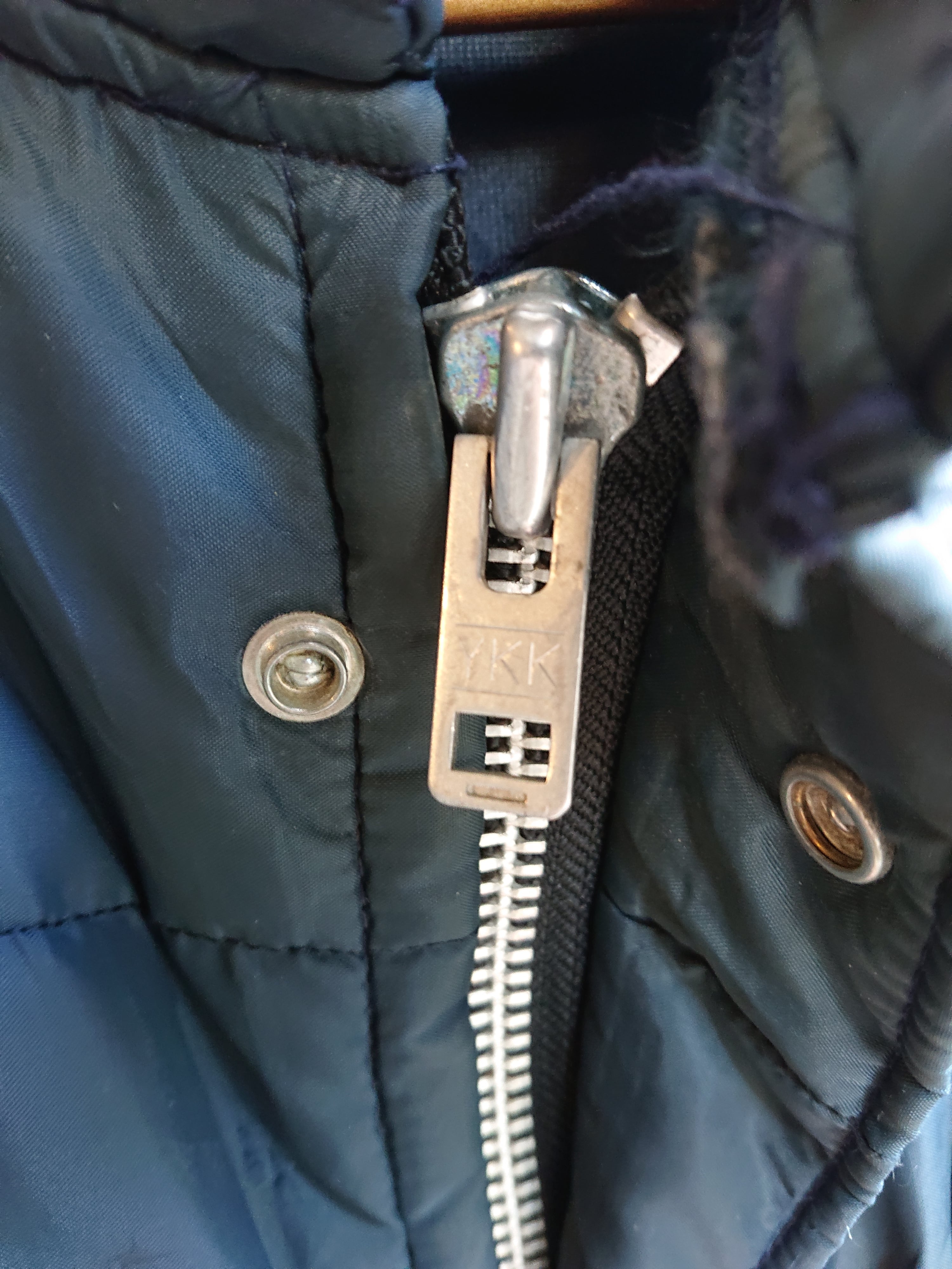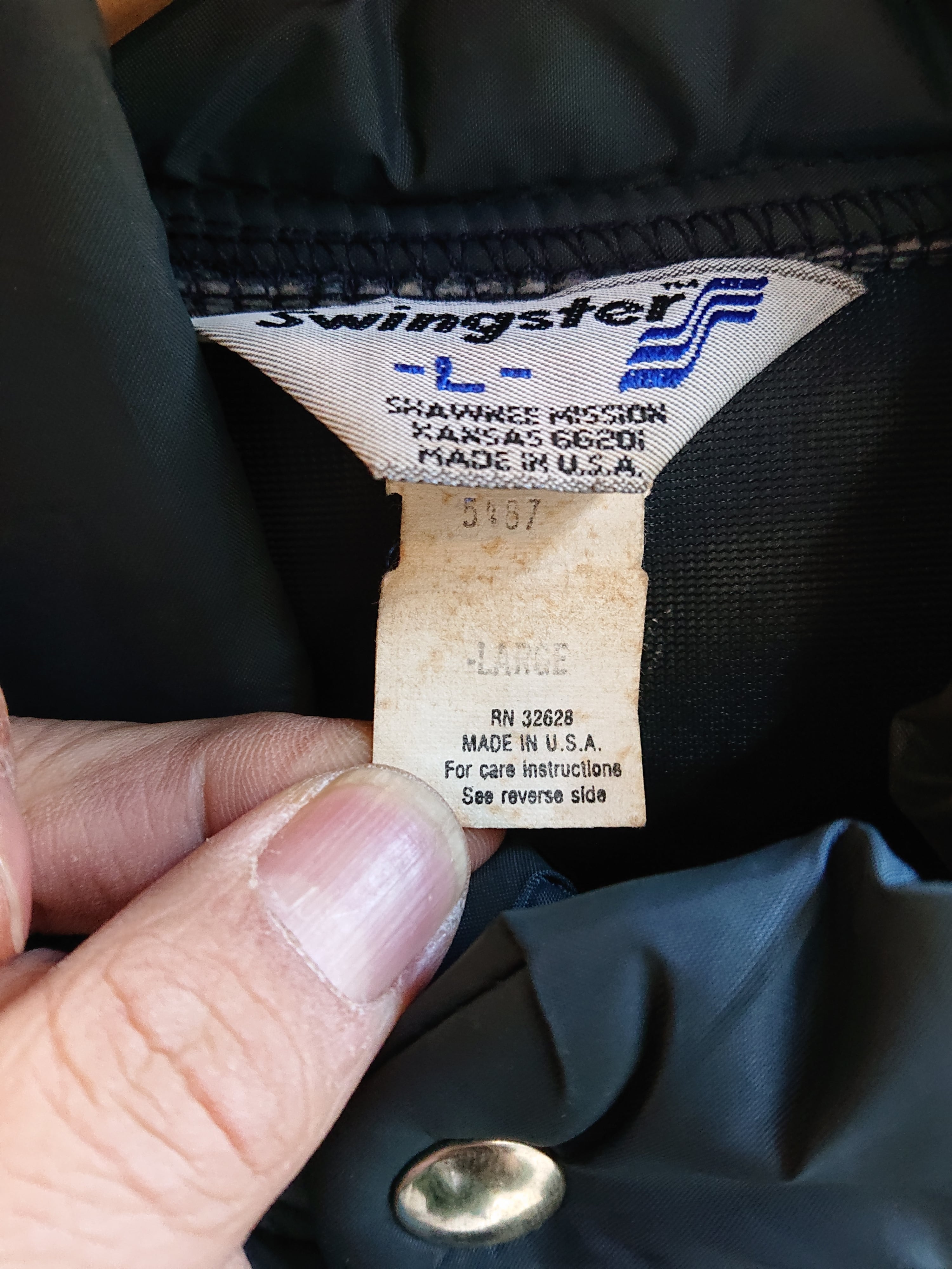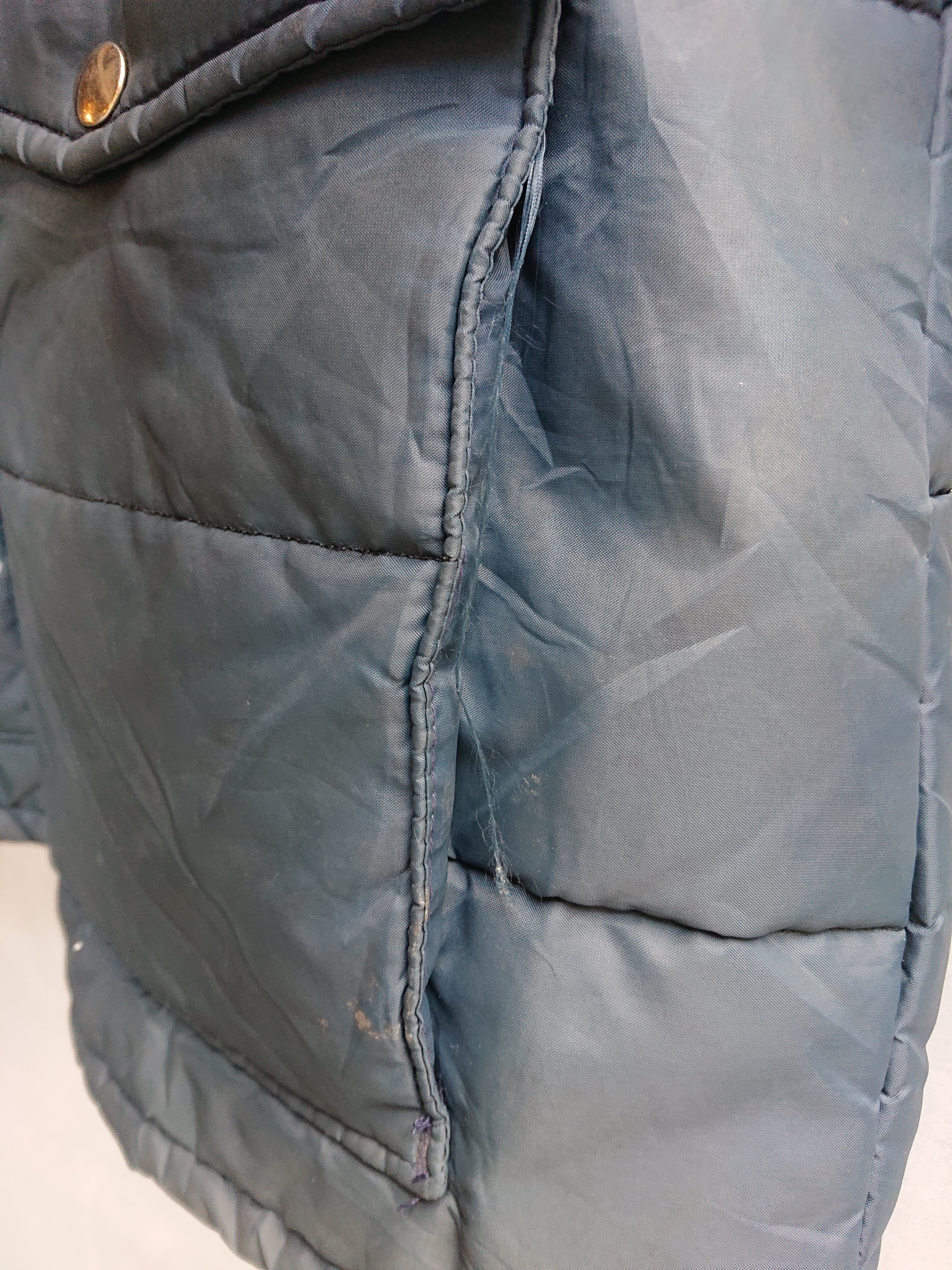 1980年代 GLOBAL MARINE DRILLING COMPANY(グローバル・マリン・ドリリング・カンパニー)の中綿入りナイロンジャケットになります。社名ロゴが描かれたワッペンが左胸と背中につきます。1953年に設立された世界最大級のオフショア掘削会社で、石油・ガス掘削、原油や天然ガスの生産などおこなってた会社で紹介するこちらは従業員が作業着として使用してたものかと。ボディはSWING STARでカラーはネイビー。所々ペンキが飛んだ雰囲気ある一着。右胸辺りに2cmほどの傷がありますが着用に問題はありません。