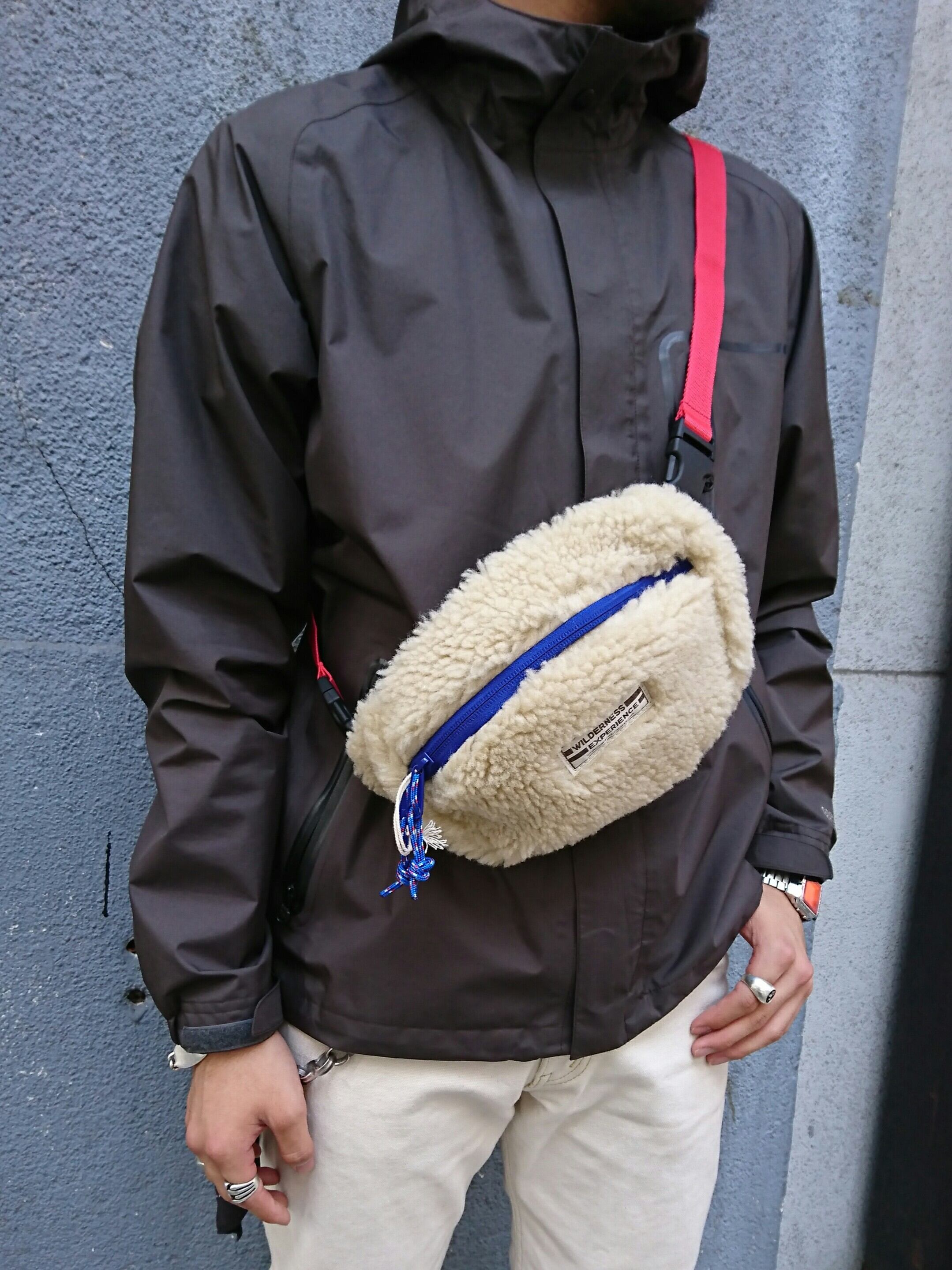 1973年アメリカにて誕生したWilderness Experienceとのダブルネームアイテム。毛足の長いフリース素材を使用したウエストバック。肩掛けで使うのもオススメ。ベルト部は本体とアジャスタブルパーツで接続され着脱しやすい仕様。サイズは小ぶりなので必要最低限の携行物で移動する際に適したアイテム。