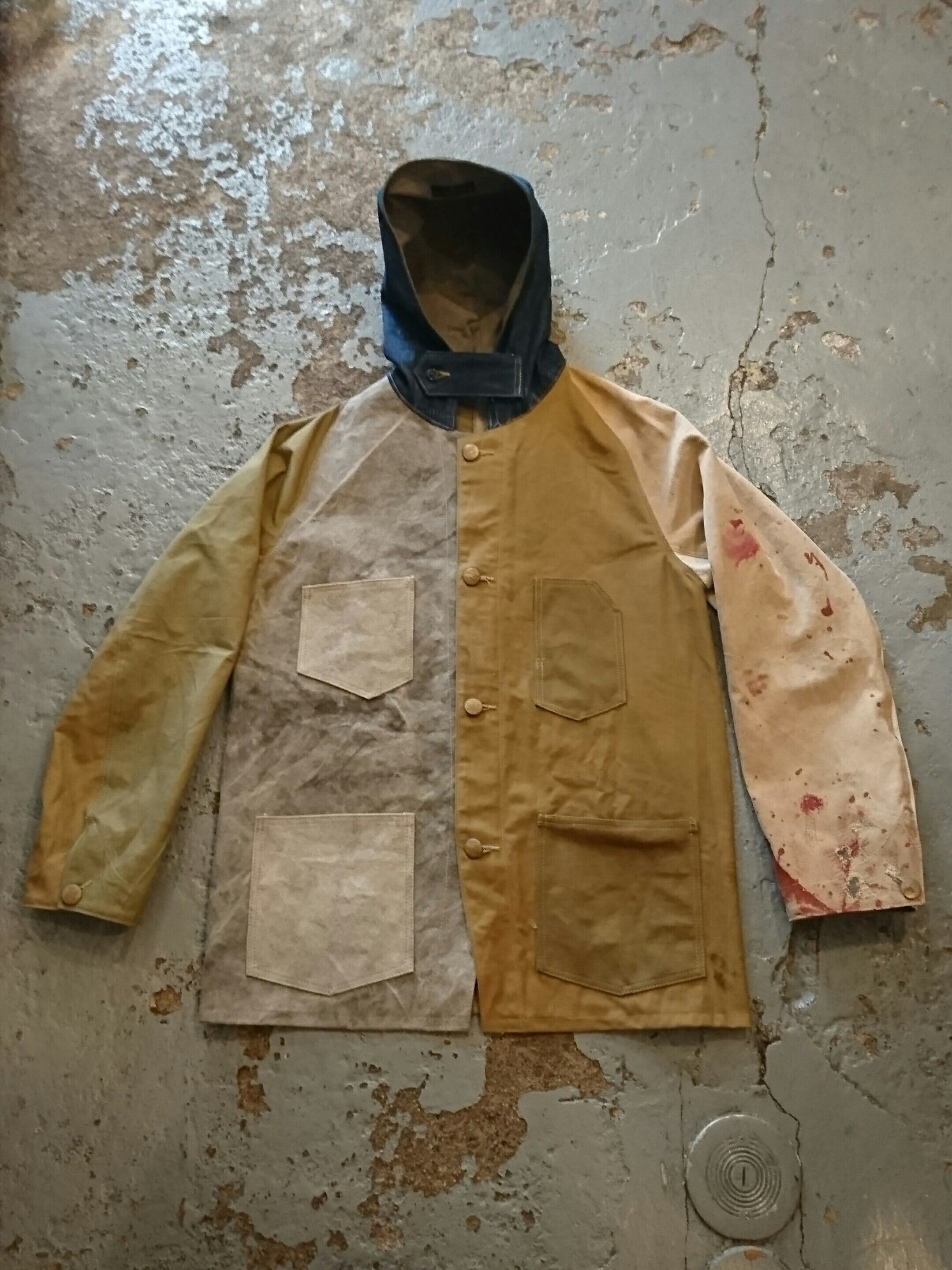 BAAより新作のカバーオールが登場。レアモデルのフード付きカバーオールを味わい深いヴィンテージファブリックを使用して再構築。ボディ部分はオールドのトラックタープ(幌)と1940年代 US