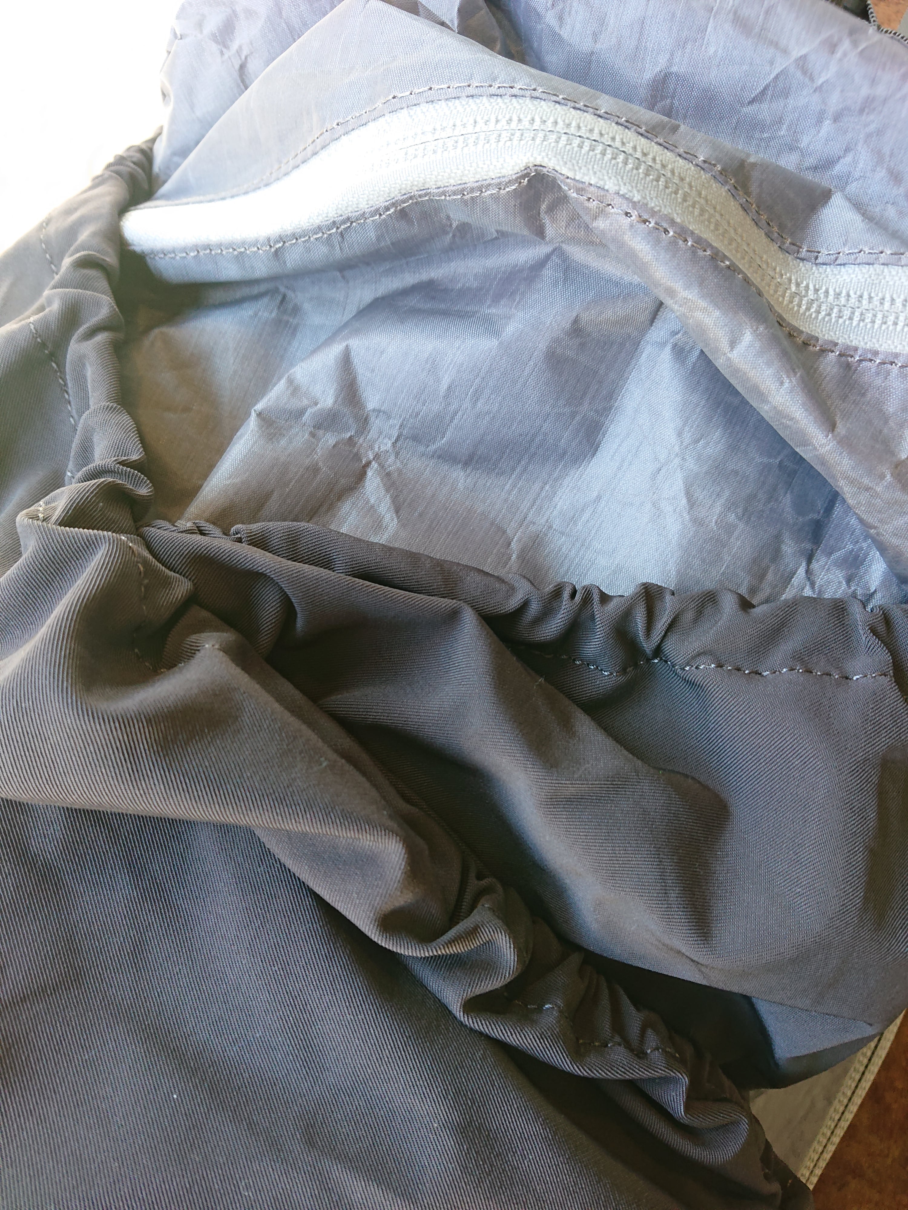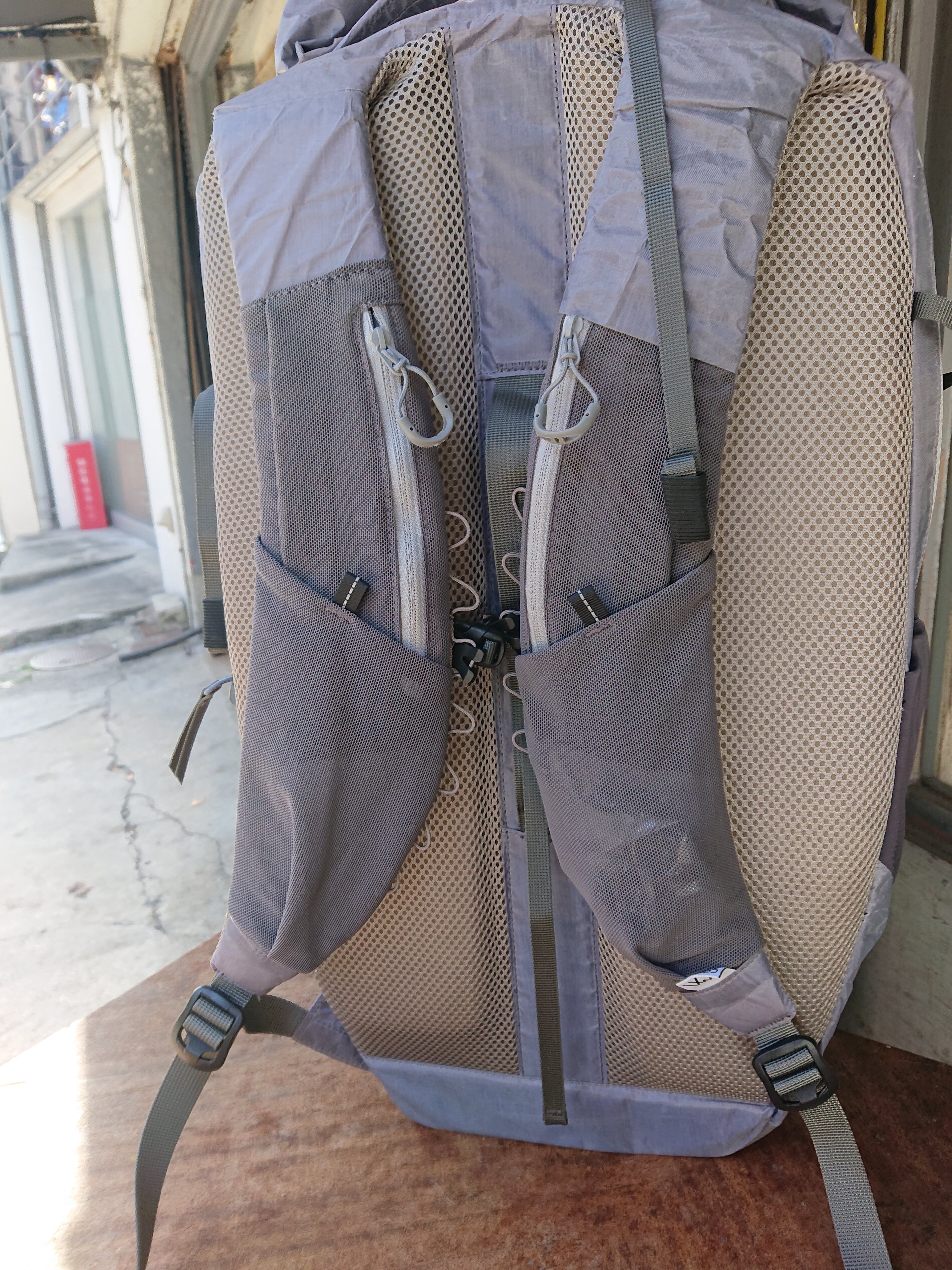 2.5oz DYNEEMA を使用し、前部分のポケットにはヘルメットも入るように容量は大きくしてある。ハイドロ用のポケットはPCスリーブとしても使用可能。