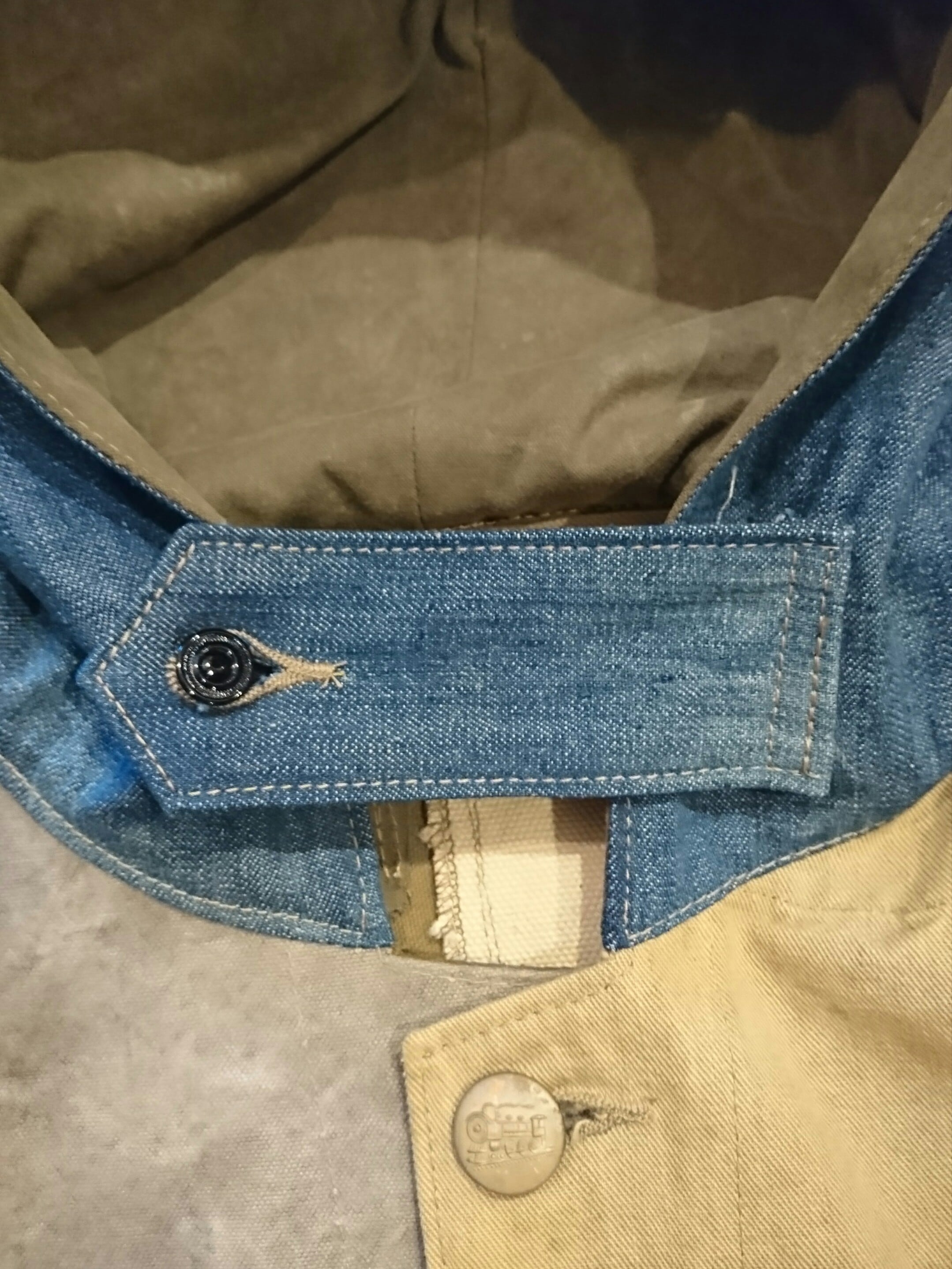 ARMYテントを使用しフード部分は同じく1940年代 US NAVY ランドリーバッグで製作されたスペシャルバージョン。首もとのチンストラップ、フロントと袖口はチェンジボタン使用等拘りぬいた1着となっております。ヴィンテージファブリックを使用してる為、一点一点雰囲気が異なるのも魅力の1つです。
