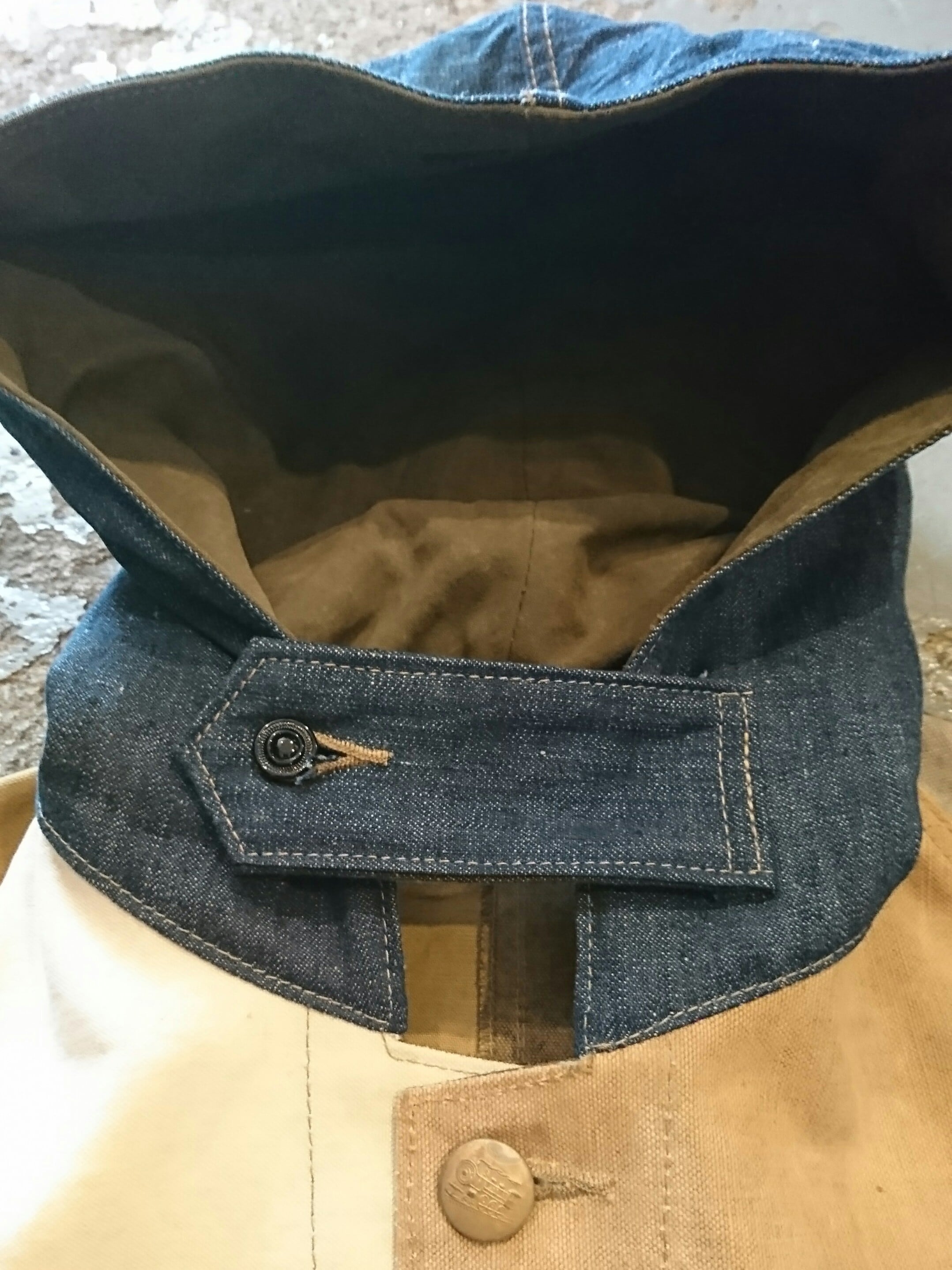 ARMYテントを使用しフード部分は同じく1940年代 US NAVY ランドリーバッグで製作されたスペシャルバージョン。首もとのチンストラップ、フロントと袖口はチェンジボタン使用等拘りぬいた1着となっております。ヴィンテージファブリックを使用してる為、一点一点雰囲気が異なるのも魅力の1つです。