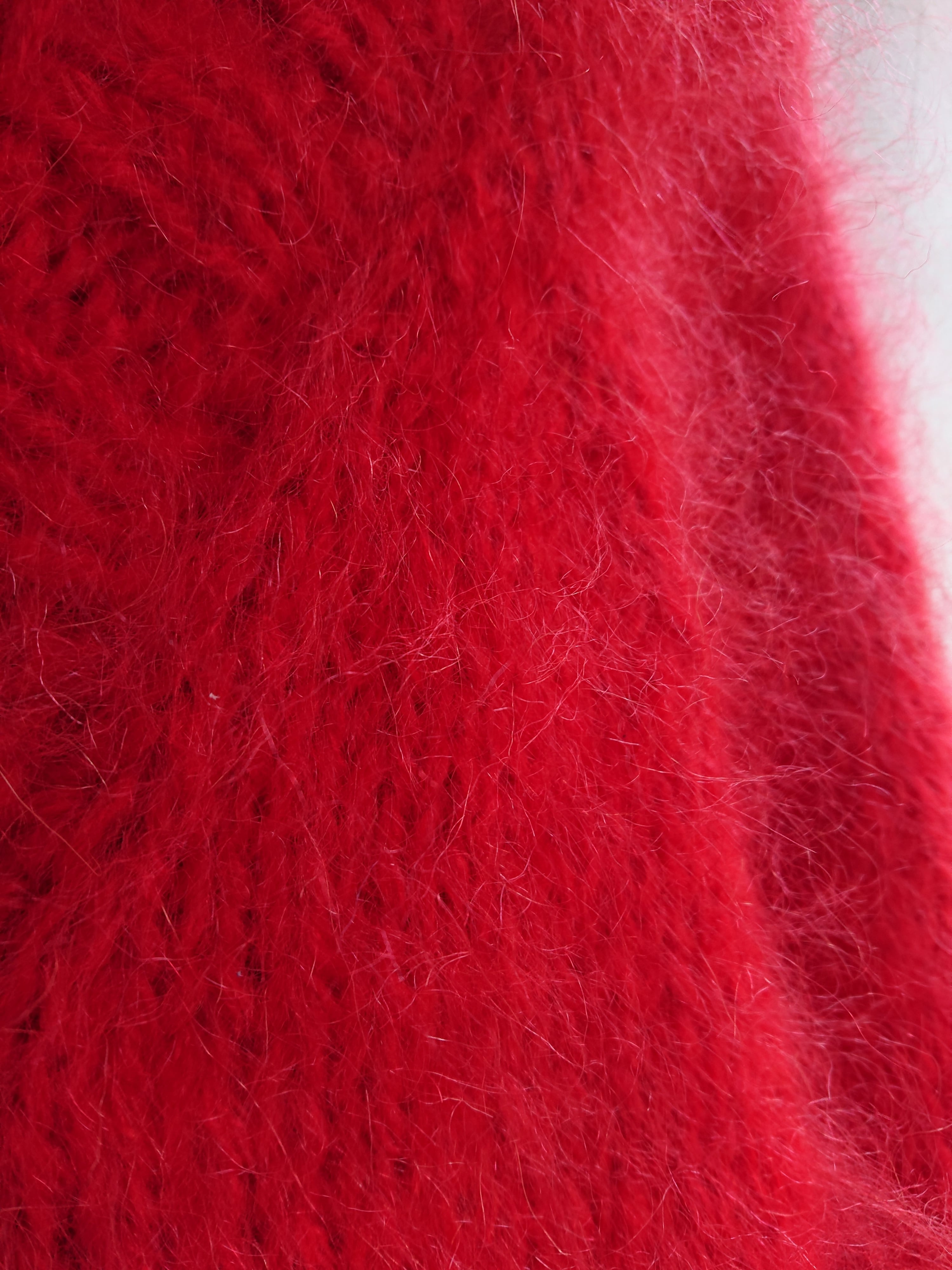 お客様のご要望で製作したBAA KING MOHAIR CARDIGANのレッドカラー。ブラックとはまた違う印象に。一着のみとなります。