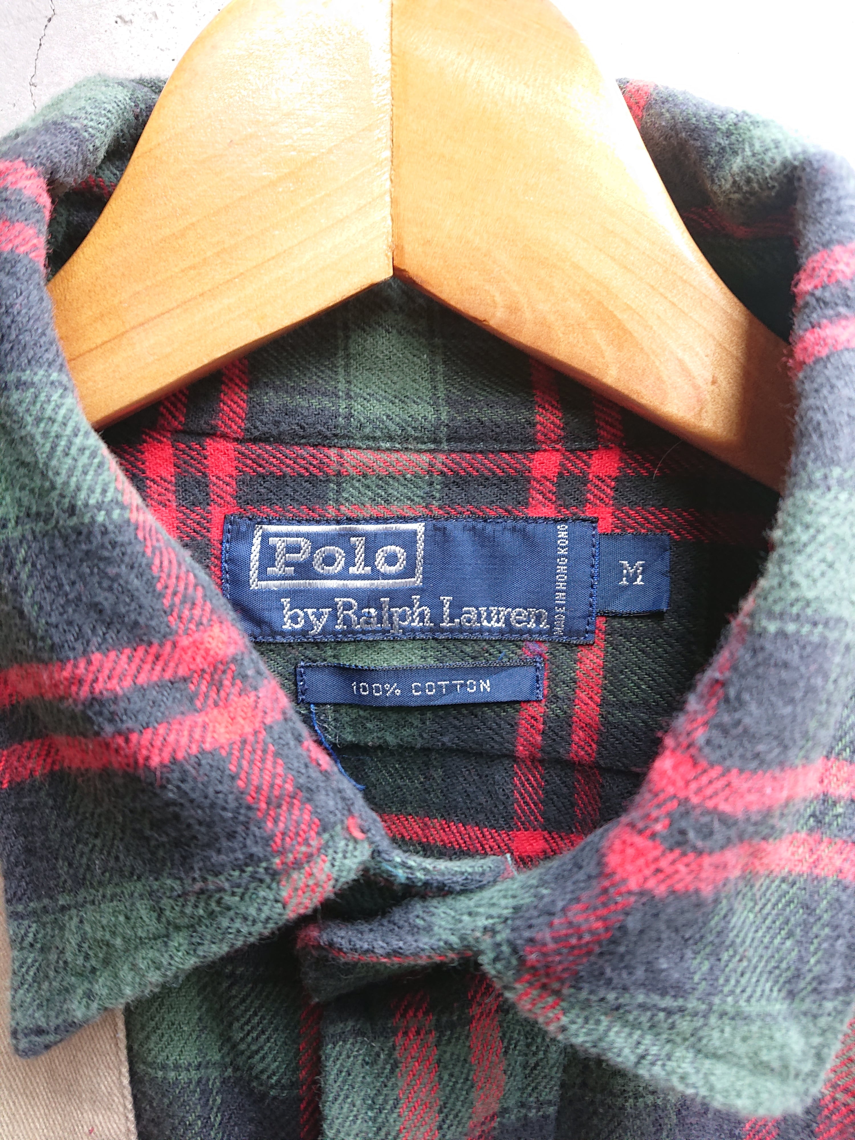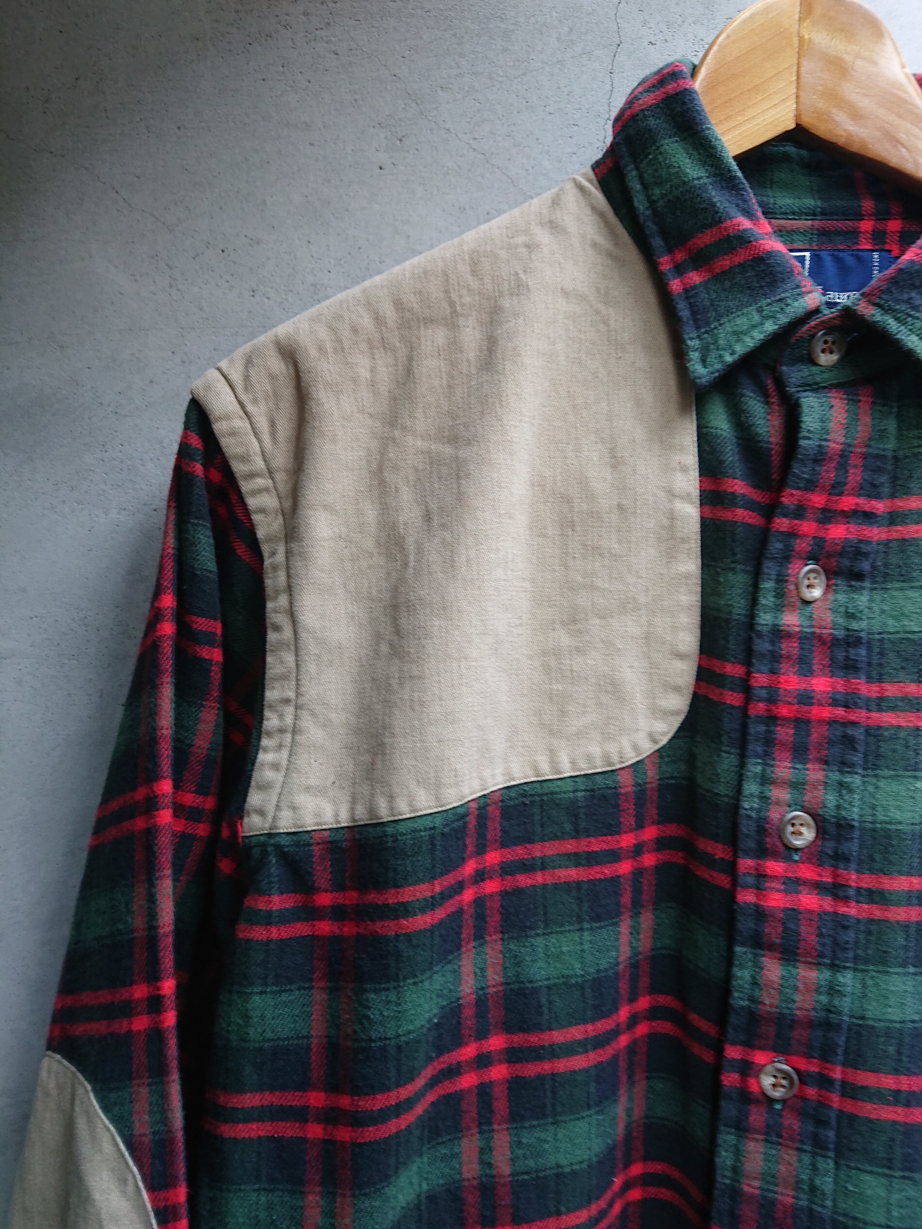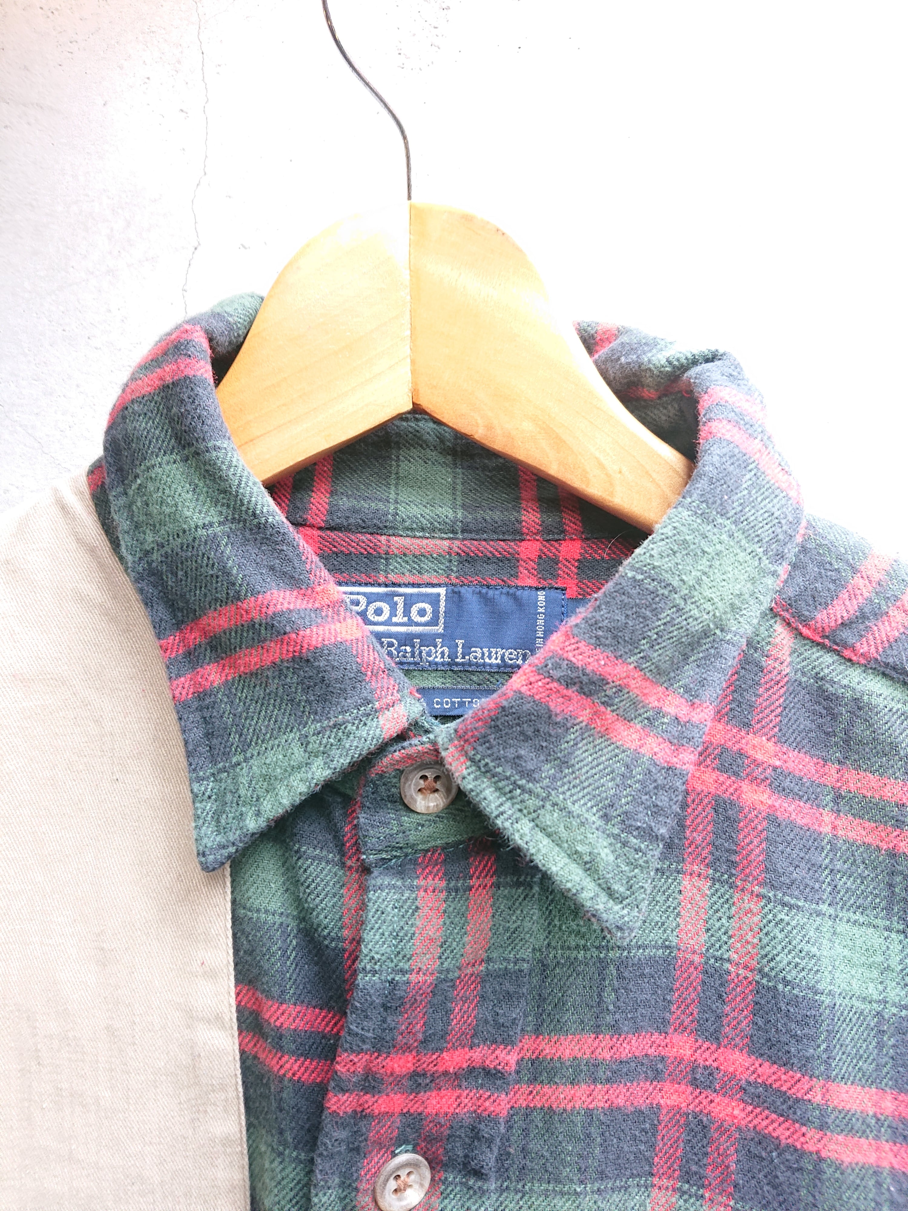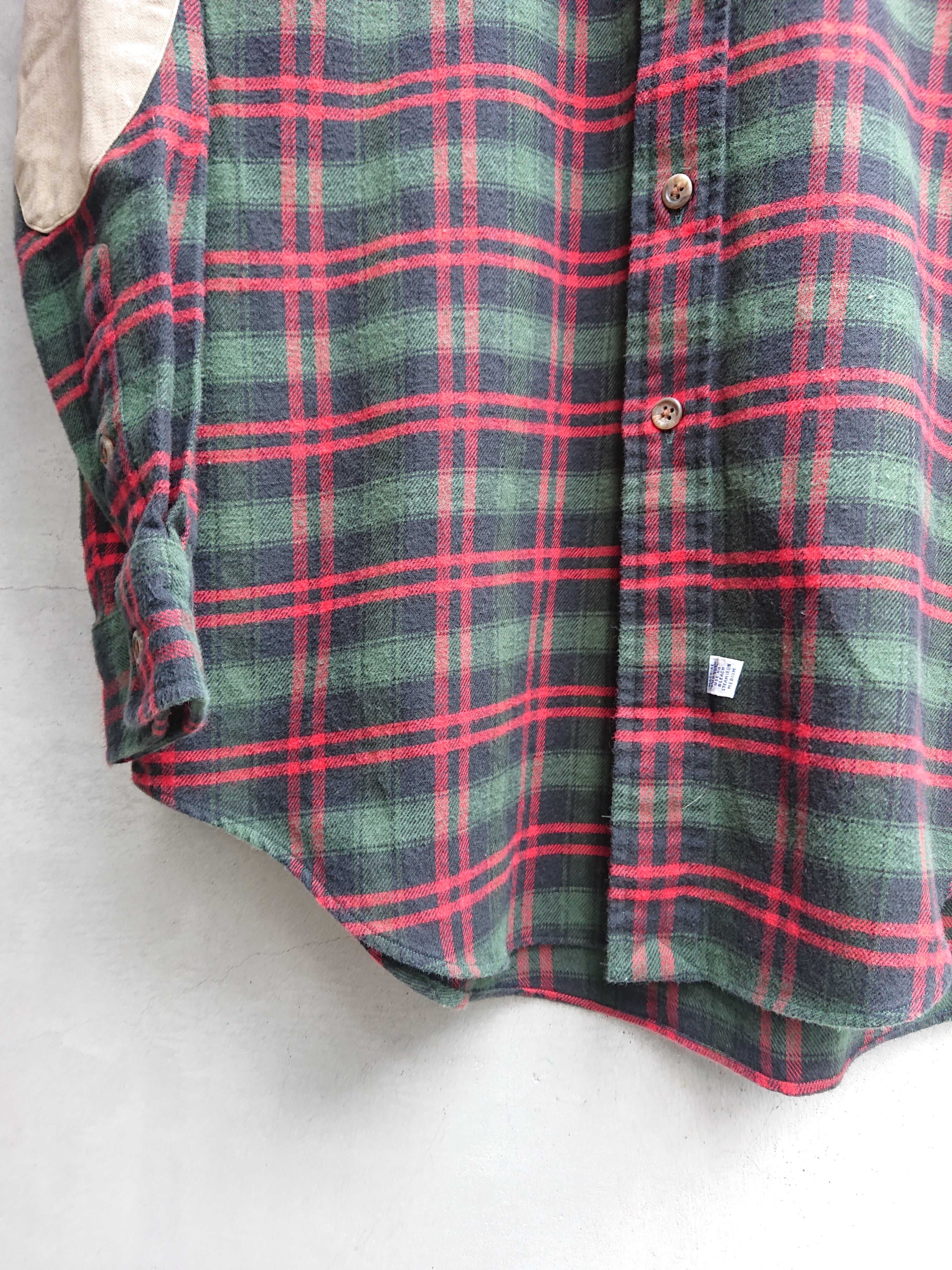 Ralph Lauren FLANNEL SHIRTS PRICE : 10800+tax (11880 tax included) SIZE : M(肩幅47cm身幅59cm着丈85cm袖丈61cm) Ralph Laurenのフランネルシャツになります。左肩に両肘にパッチとハンティングシャツのデザインはラルフローレンらしさを感じます。着用感ありますが致命的な傷等はありません。一見違うネルシャツをお探しの方にもオススメです。