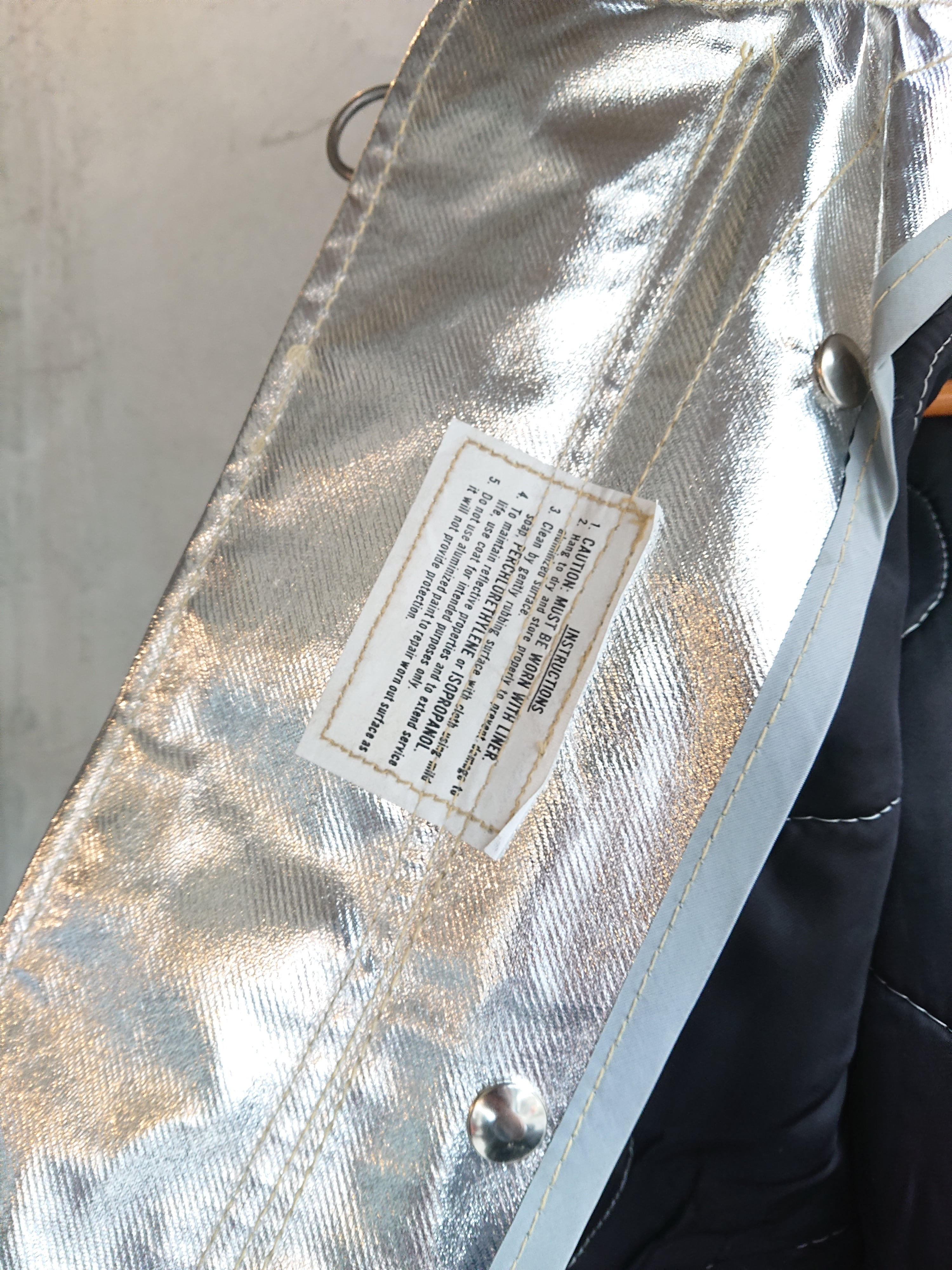 1984年製のデッドストックUS ARMY ARAMID FIREMEN'S COATになります。アラミド+アルミニュウムのアメリカ軍で使用されたファイヤーマンコート。アルミニュウムの質感と、ルックスがモード感たっぷりな逸品。