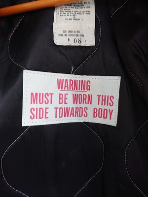 未使用のライナーもついており、取り外し可能。ライナーは1986年製でサイズはLARGEですが全く問題ありません。