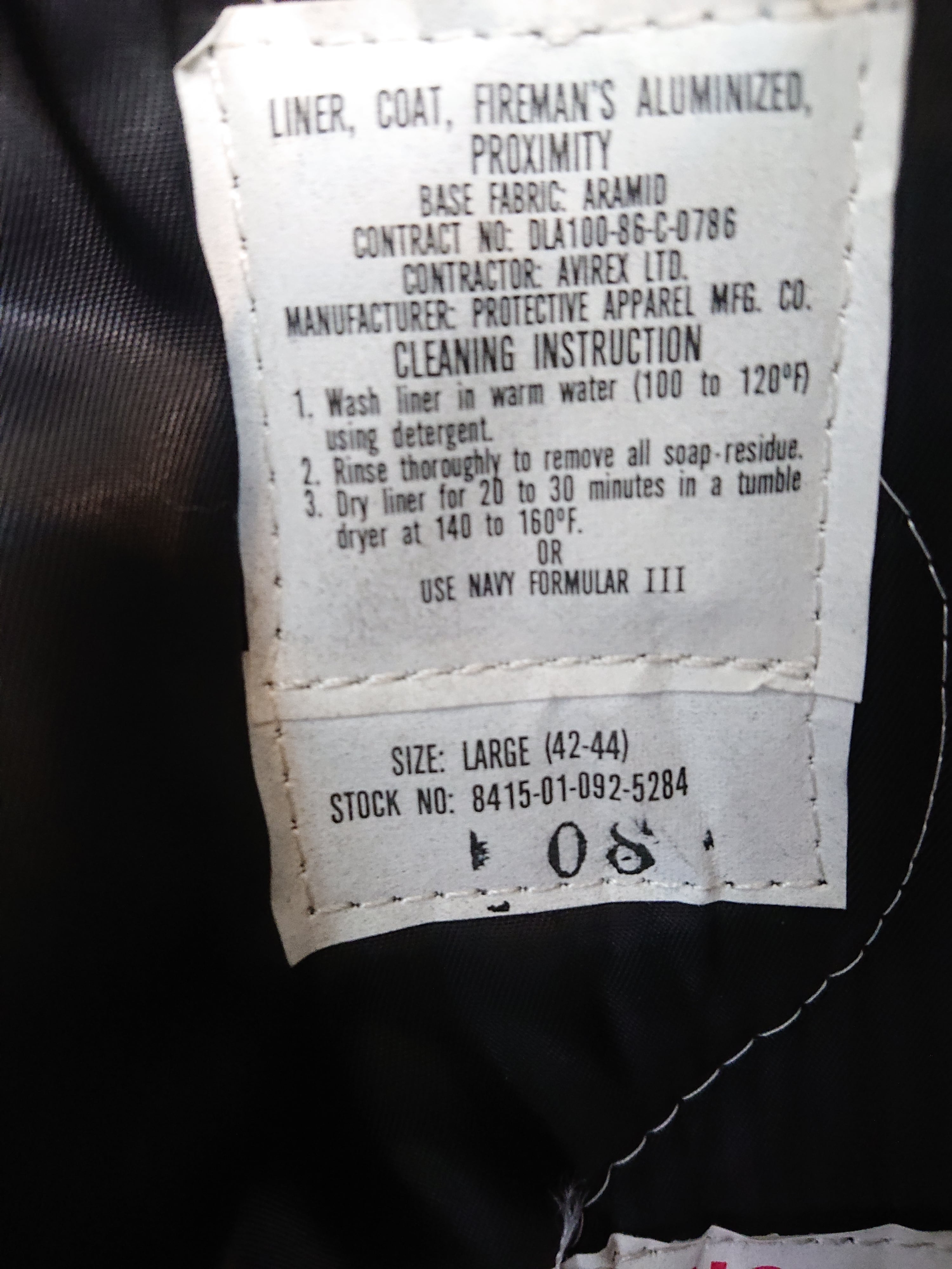 1984s US ARMY ARAMID FIREMEN'S COAT DEADSTOCK