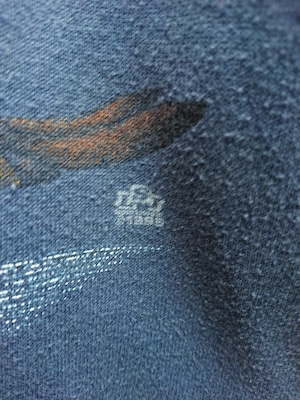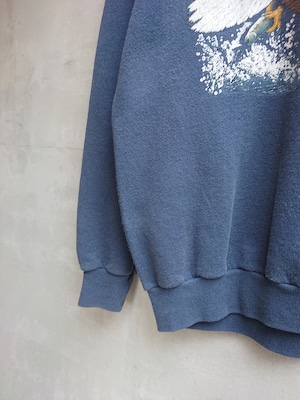 1990s EAGLE PRINT SWEAT SHIRTS PRICE : 9800+tax (10780 tax included) SIZE : L(肩幅63cm身幅59cm着丈69cm袖丈60cm) 1990年代 アニマルプリントのスウェットになります。ネイビーボディにイーグルのプリント。色褪せたネイビーカラーも良い感じの雰囲気です。ヴィンテージスウェットのハズシで着てもらうのも格好良いです。