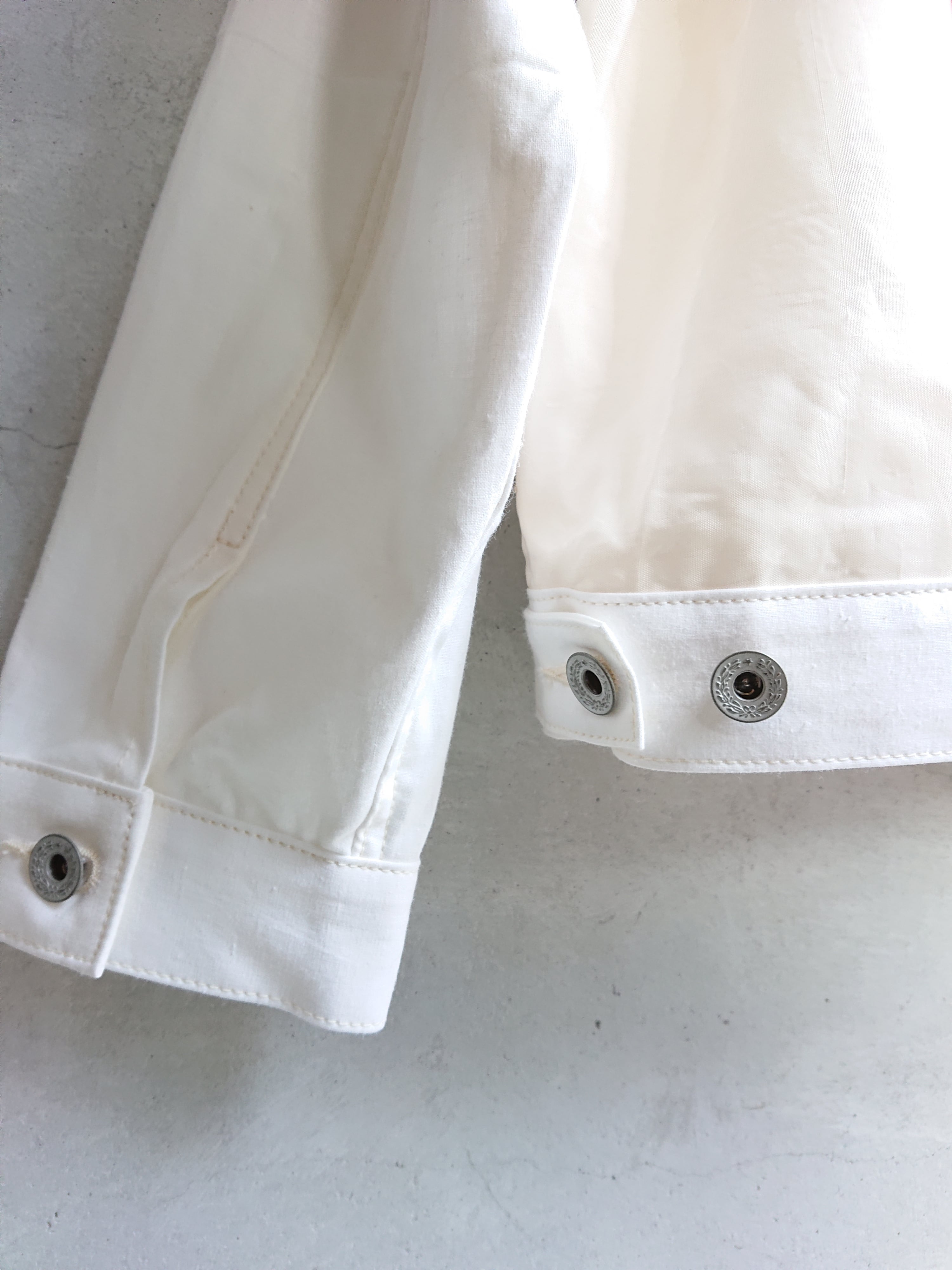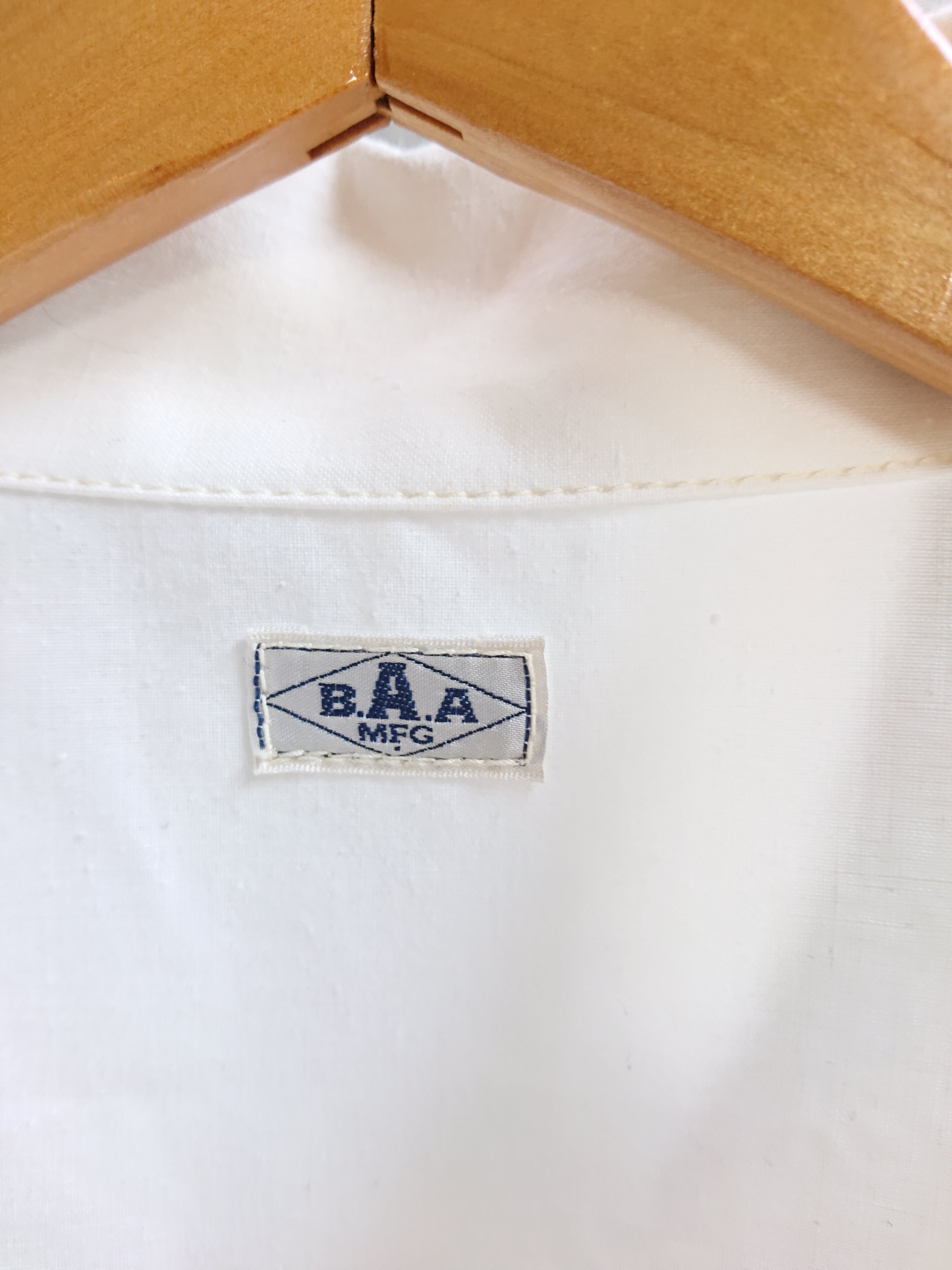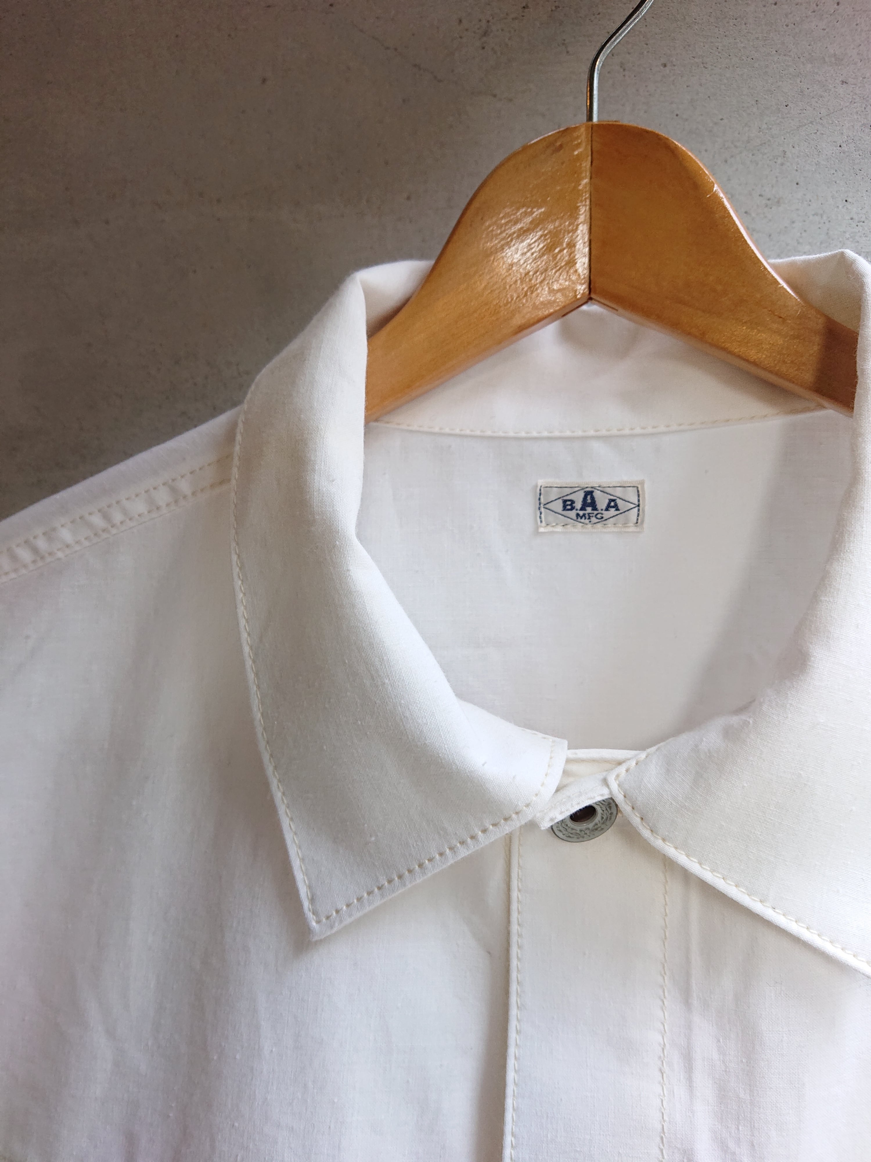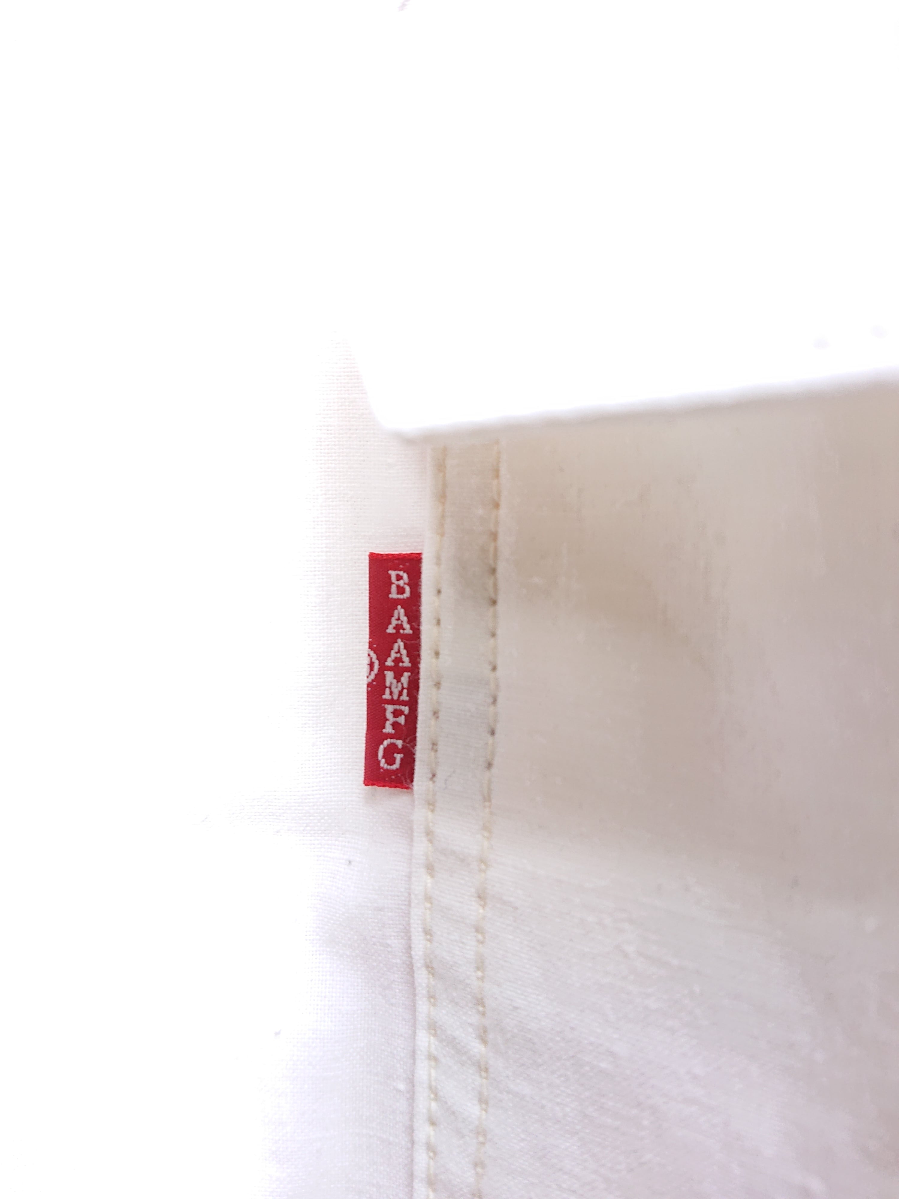 1960年代の米軍パネルマーカーシートをデッドストックを入手。今回は以前製作した2ndタイプに。ワイドシルエットの背中にアンティークナショナルフラッグをバックパーツに組み込んだ渾身の一作。 ステンシル部分の一部もフラップ裏や、カフスパーツ裏に使用は変わらず。昨今、この様な素材が纏まって入手出来る事は稀で、素晴らしい素材に巡り会える事も少なくなりました。ブランドタグはオールレーヨン糸で制作しものを使用し、ボタンは月桂樹ボタンに変更。