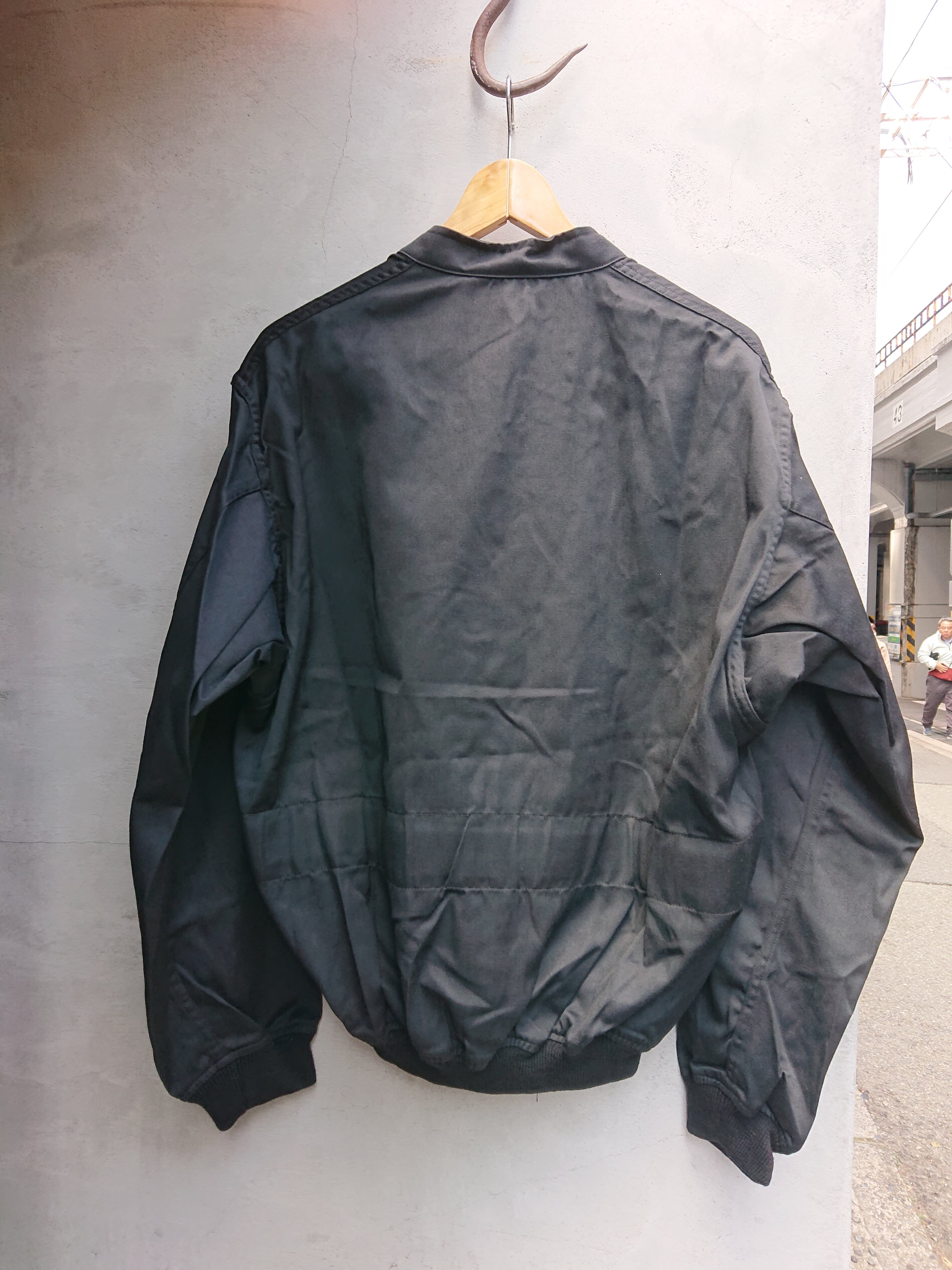 特殊な任務のウェアになる為、殆ど市場に出回る事がないジャケット。襟はスタンドカラーで袖と裾はリブ仕様。表にポケットは無く、内側の両胸部分にポケットがあります。腰には大きめの丸カン、ウエスト内側には金具付きのゴムベルトがついており絞る事が可能。ディテールも面白くファッション性の高いアイテムです。1988年製。