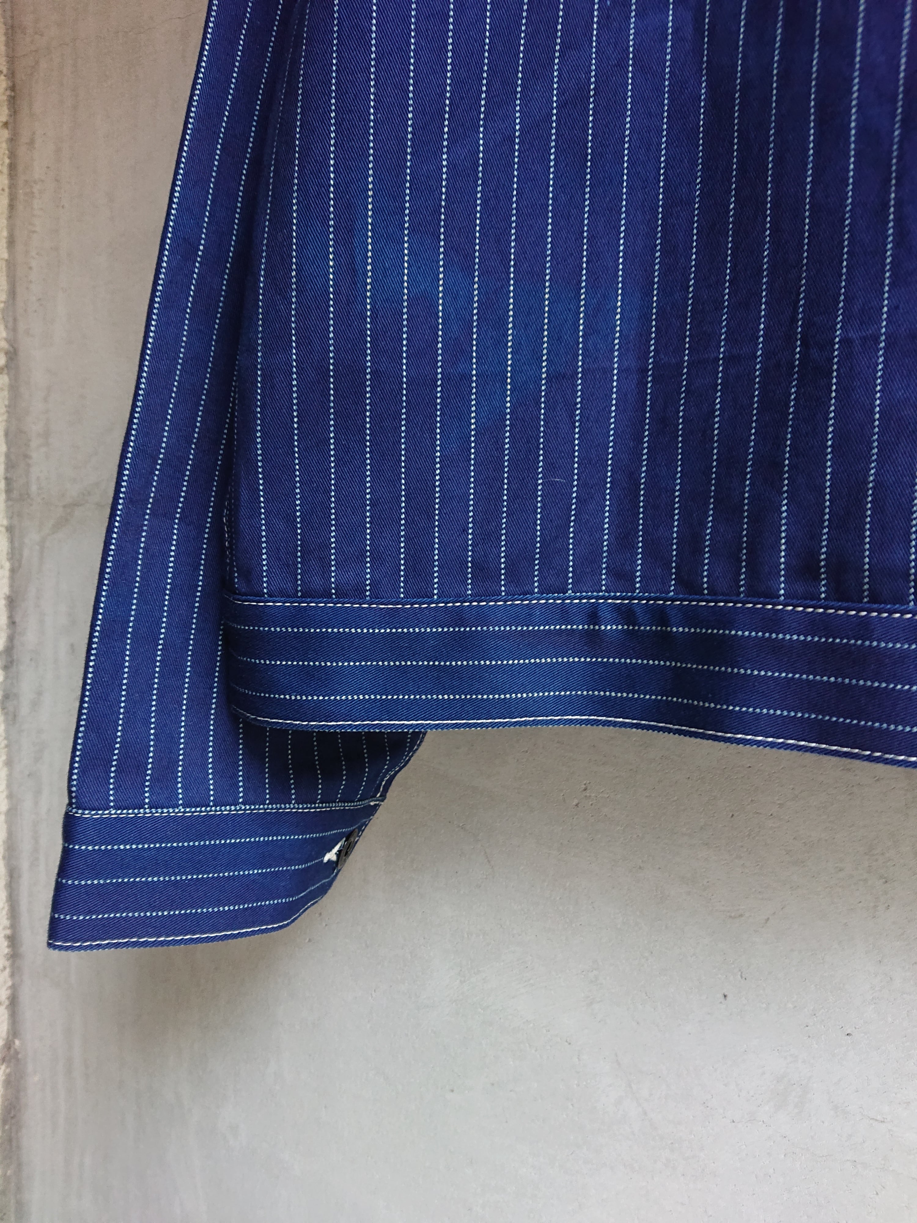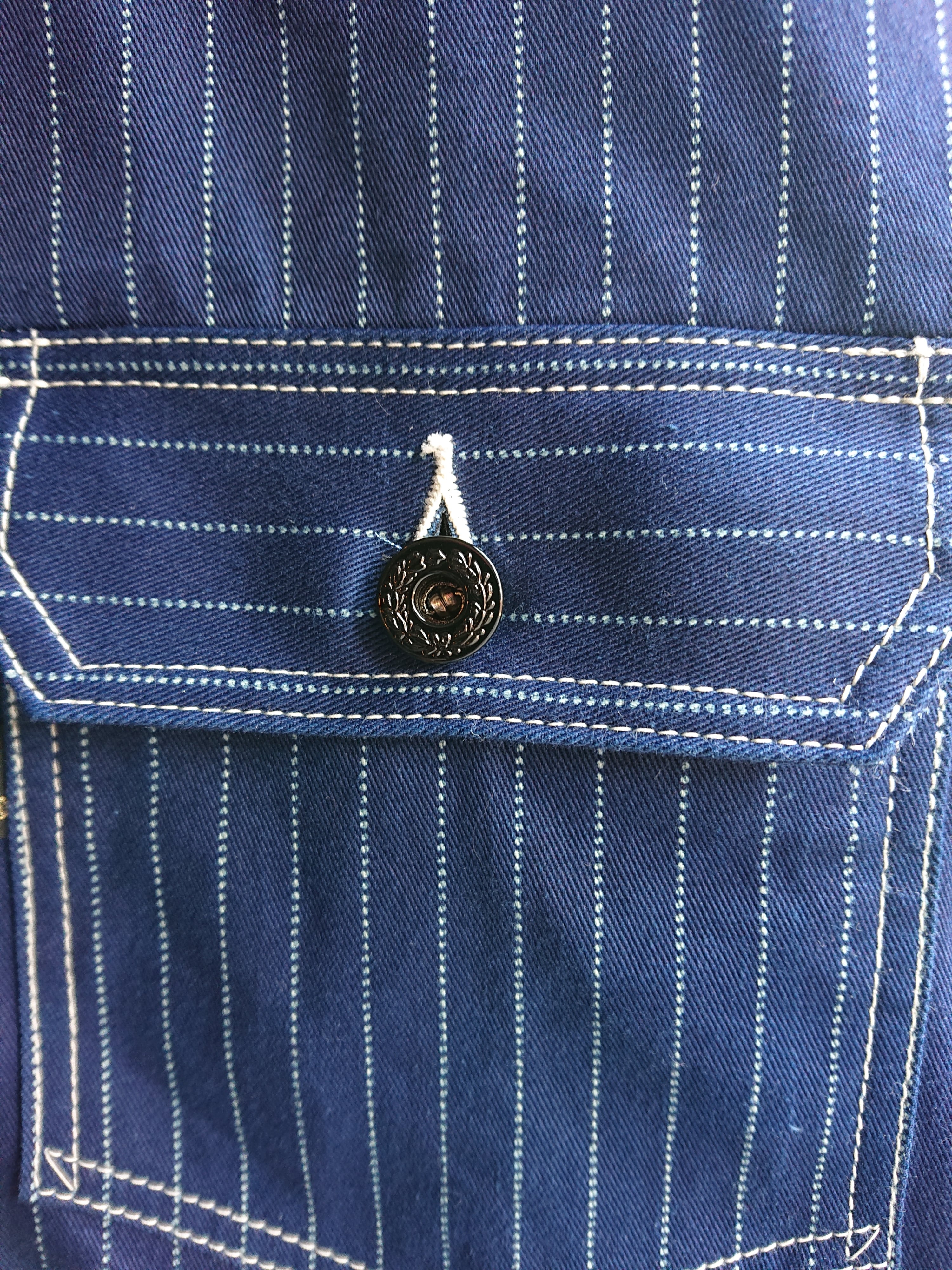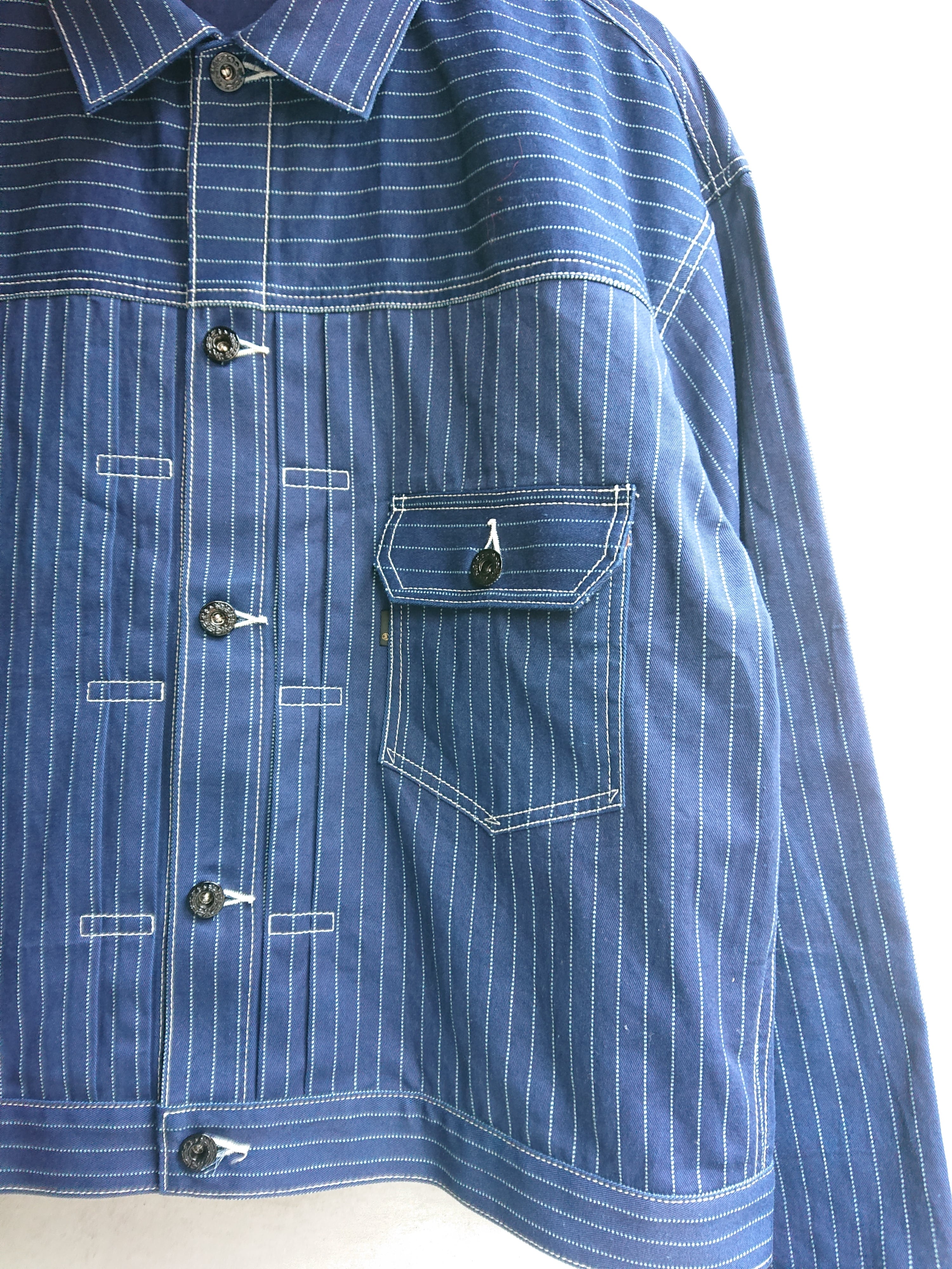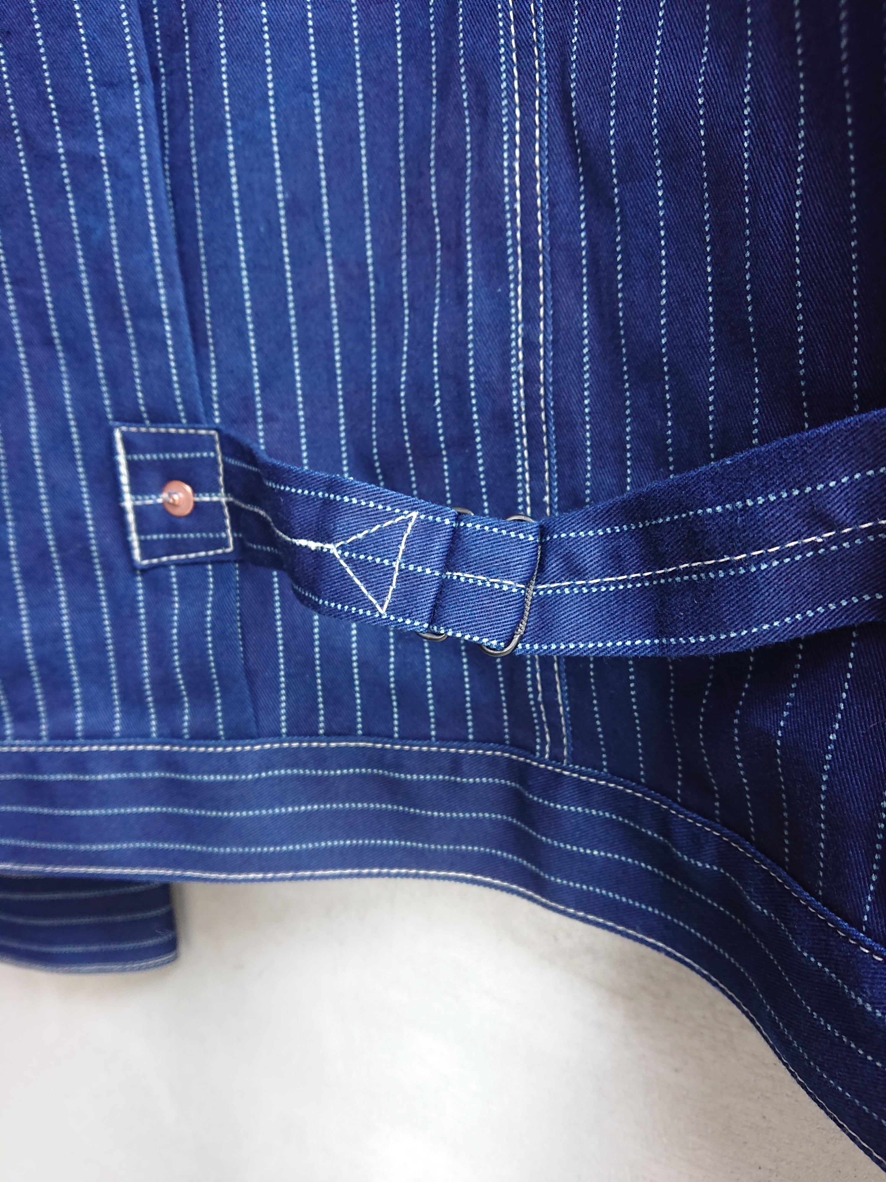 NEWのWABASHストライプの生地を使い一着のみ製作したBAA 1st MODEL。今まで色々な生地で製作しましたがWABASH生地で1stタイプのスプリットバック(ワイドシルエット)は初となります。ヴィンテージ生地ではないので気を使わずにガンガン着て色落ちも楽しんでもらいたいジャケットです。
