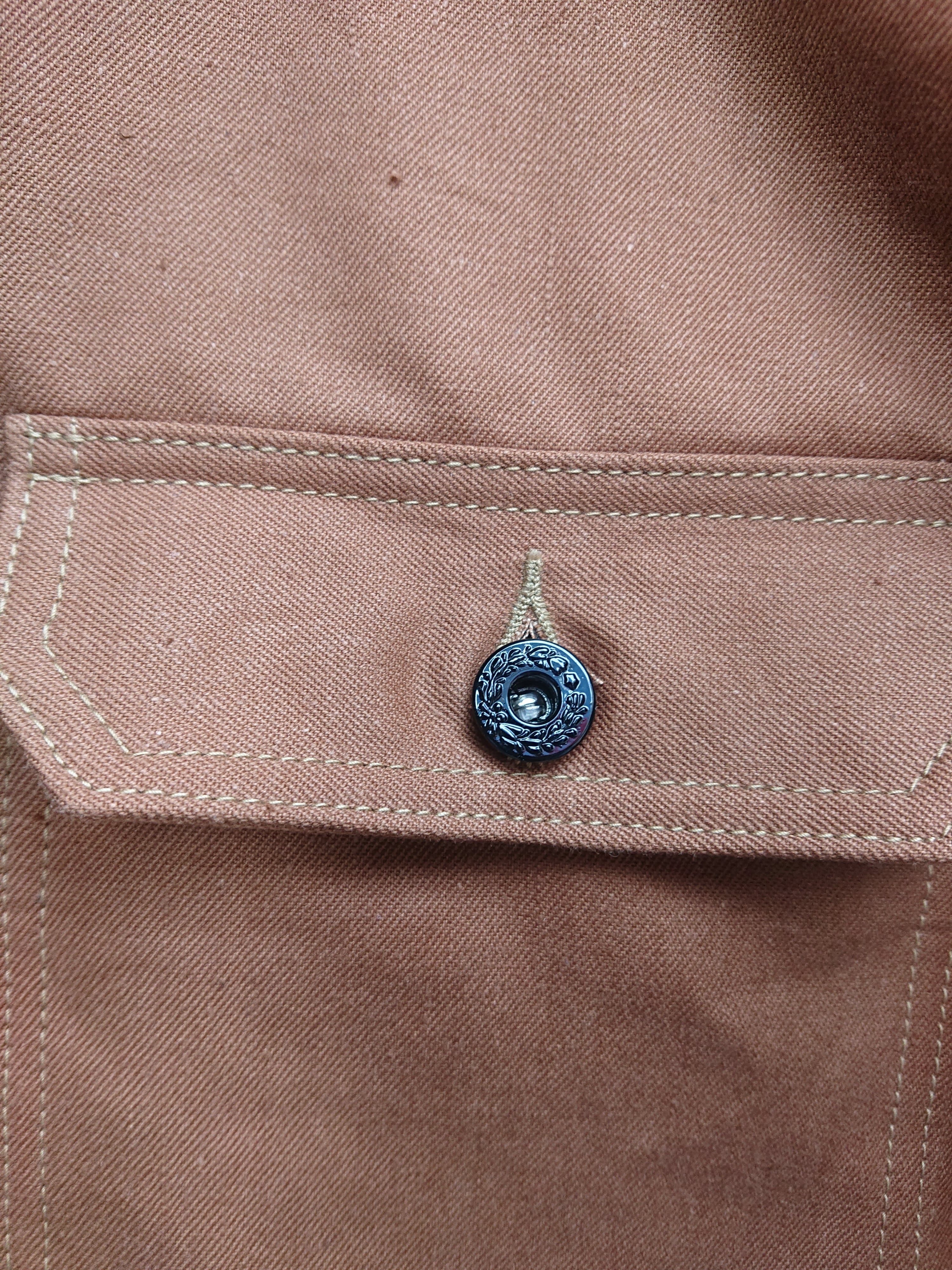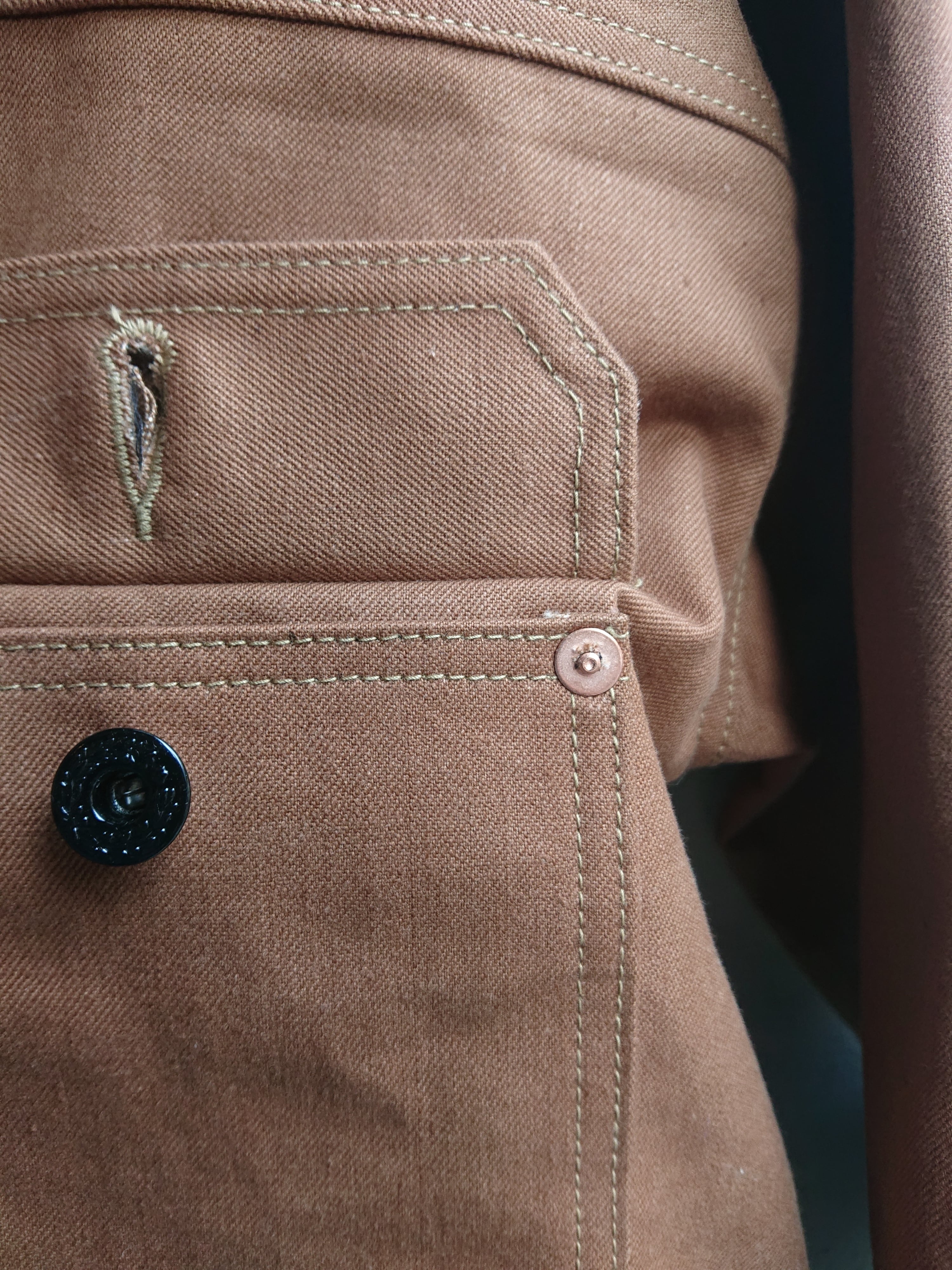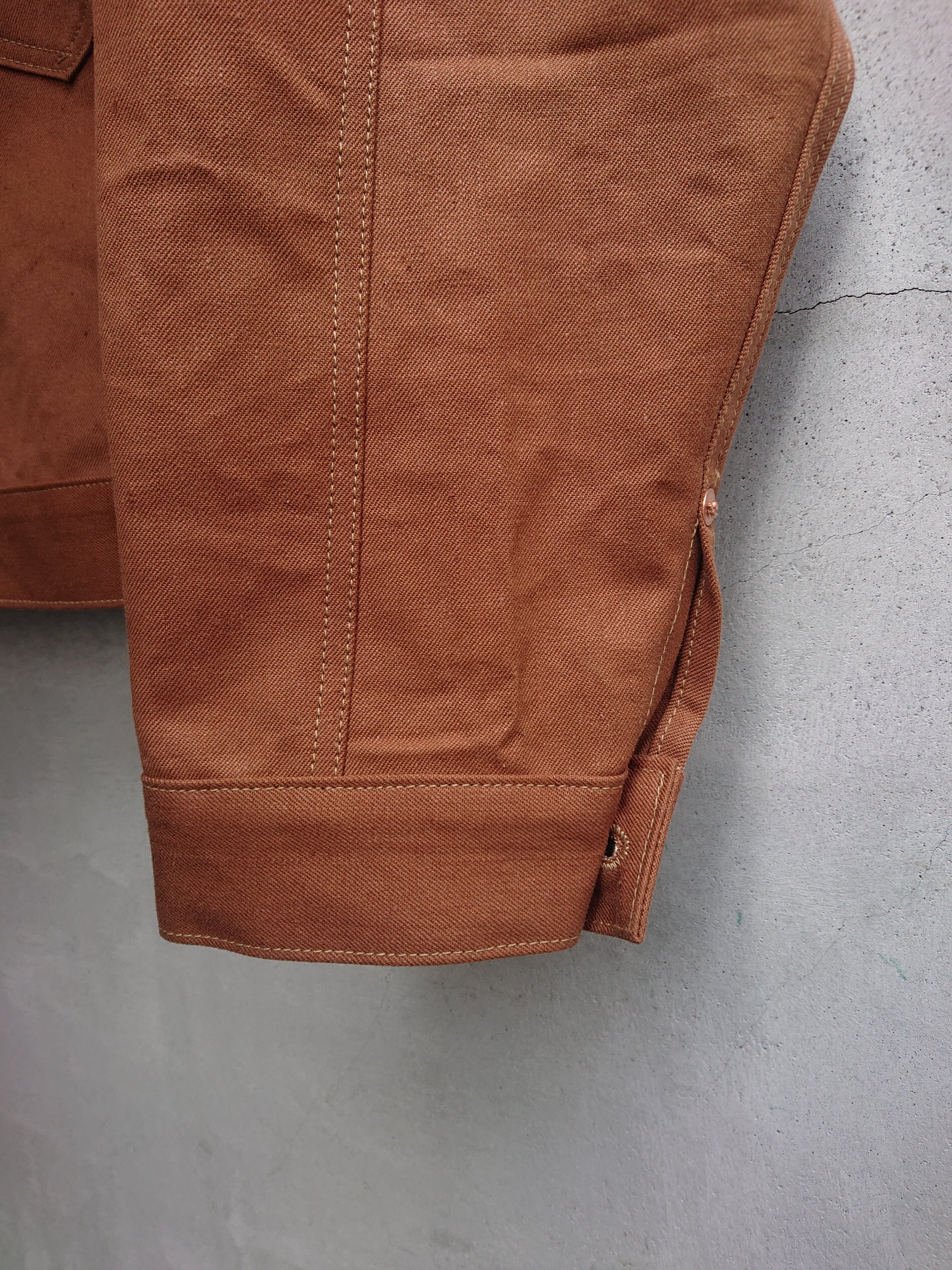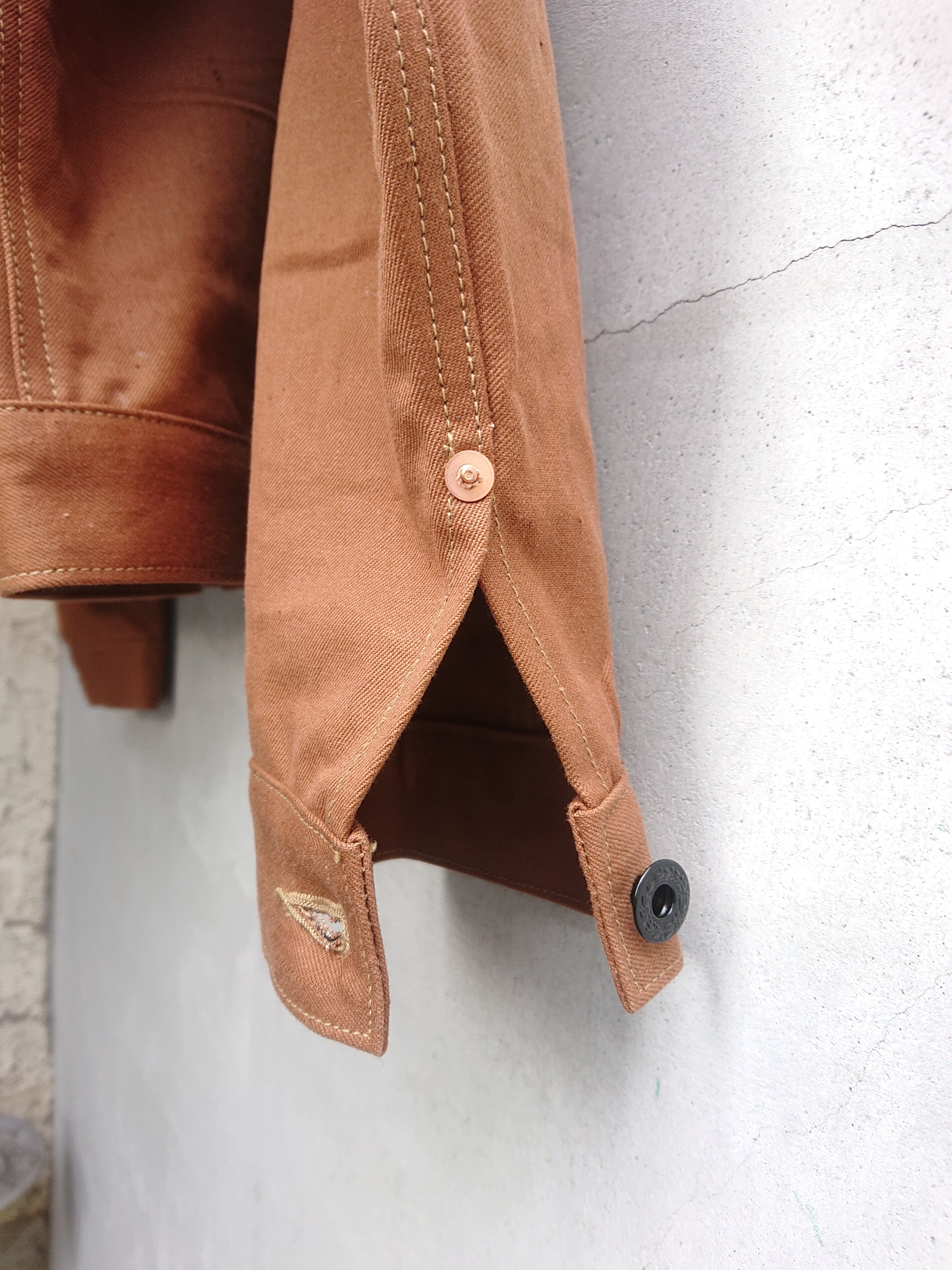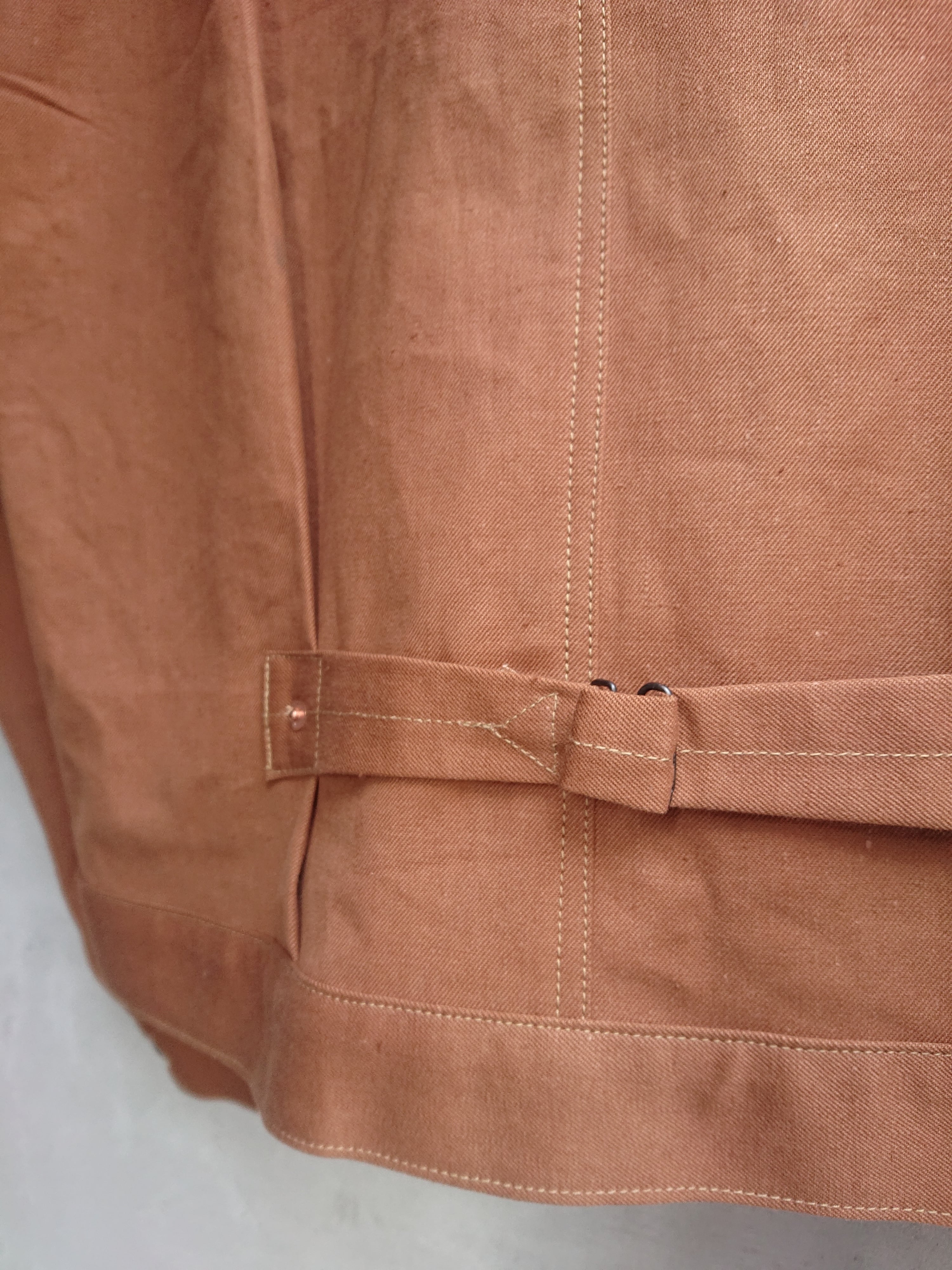 VINTAGEのテント生地を使い一着のみ製作したBAA 1st MODEL。ブラウン、ダックのような色目でテント生地ですがデニムのような生地感。どんな風な雰囲気になっていくのか楽しみでもあります。デザインは1stタイプのスプリットバック(ワイドシルエット)。今まで製作してない生地だけに魅力な一着です。
